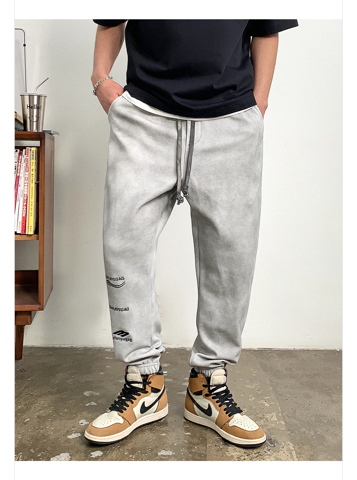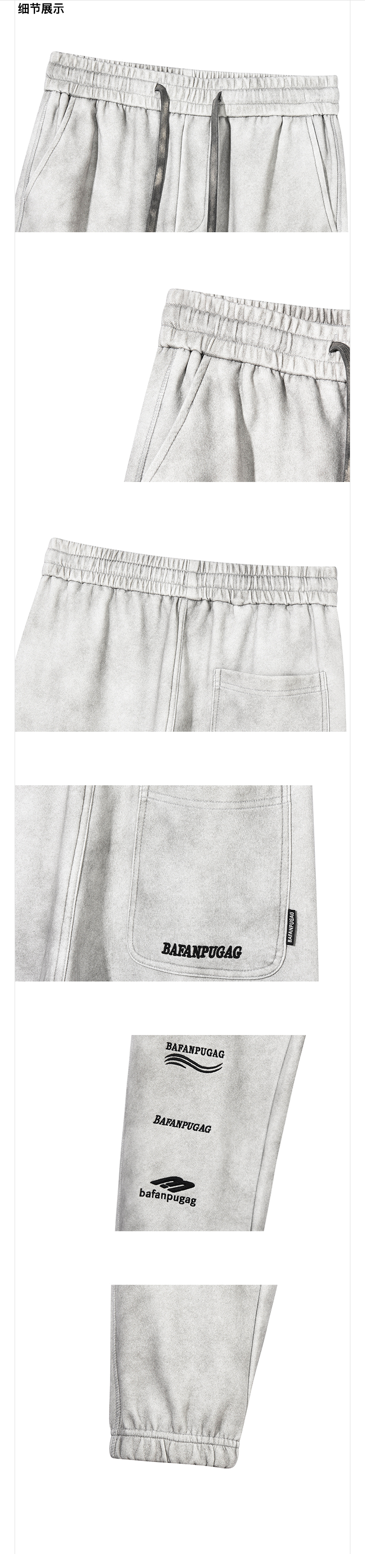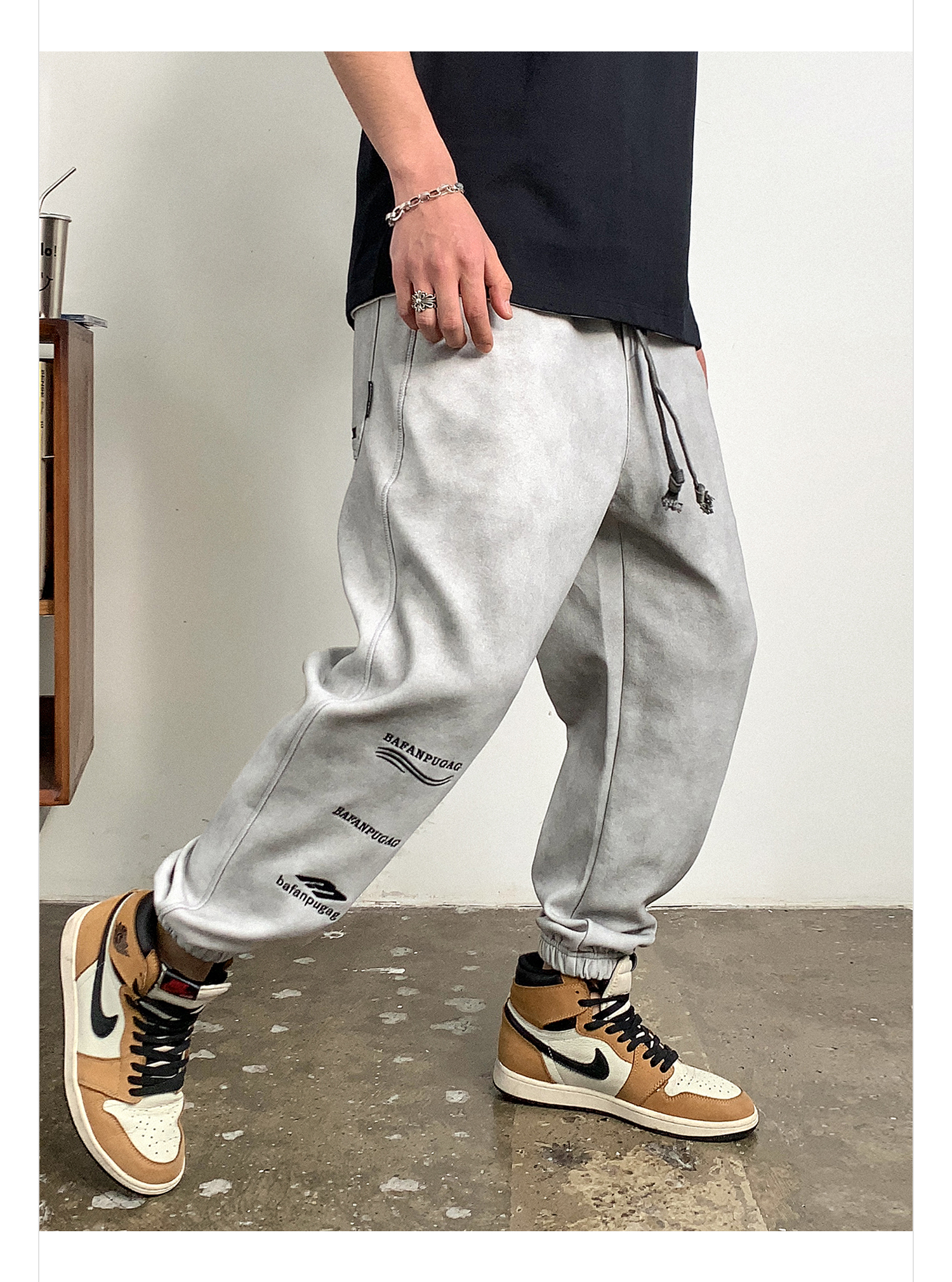 徐太浪潮牌废土风做旧休闲裤男春秋美式字母刺绣宽松束脚运动长裤