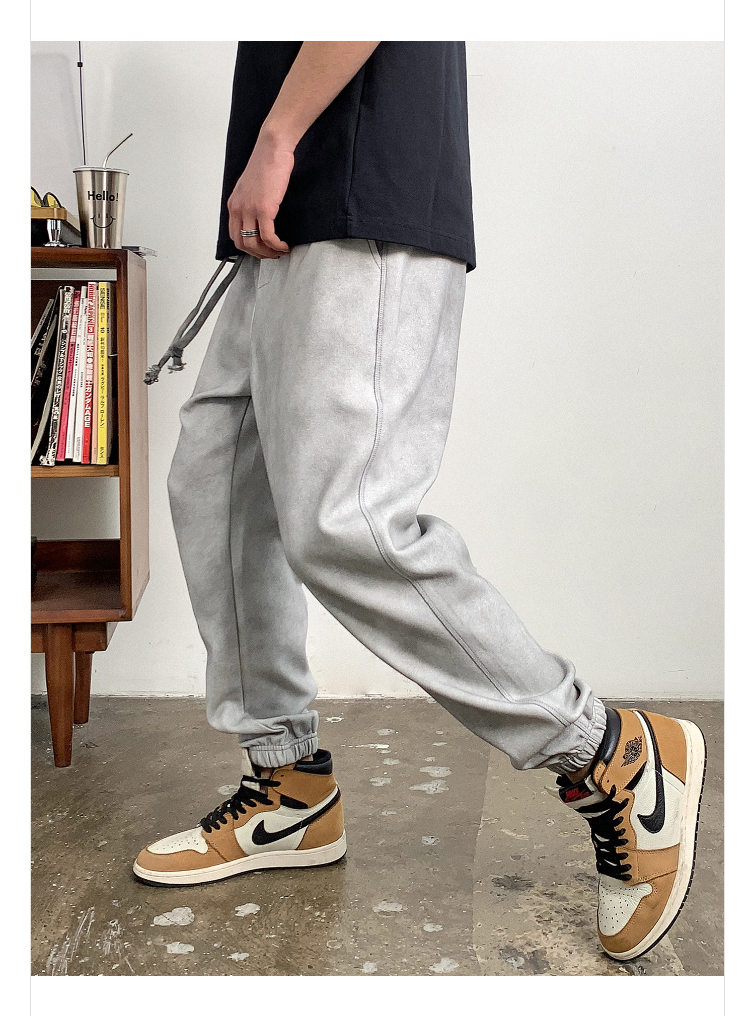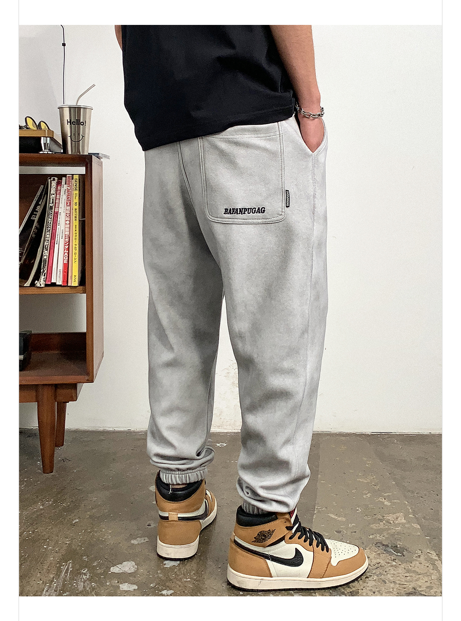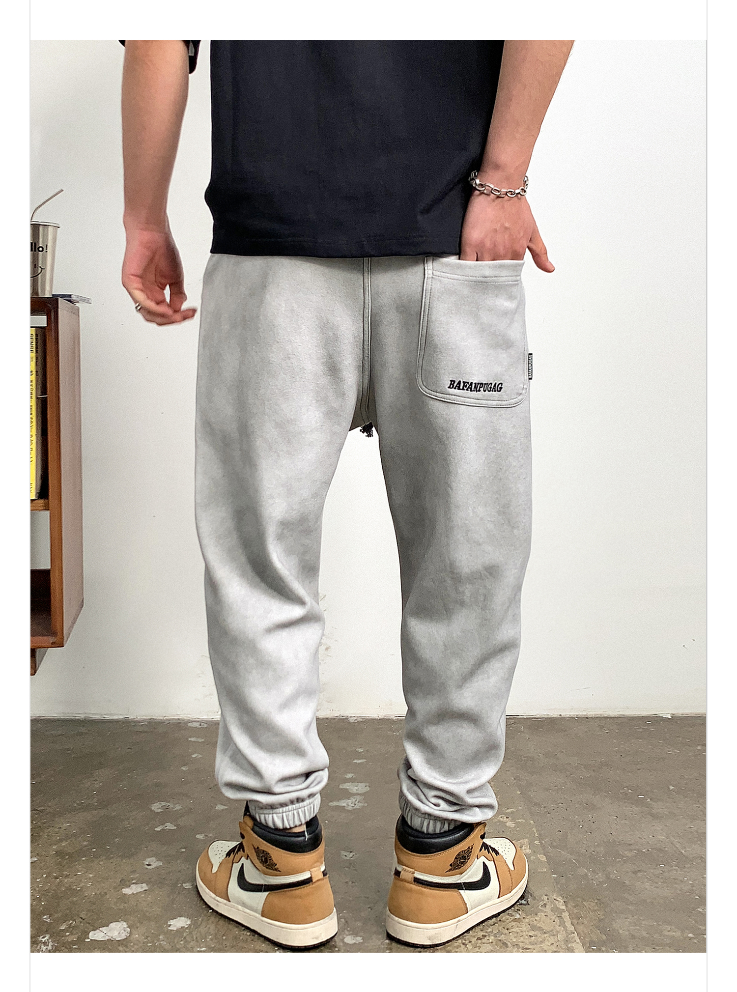 徐太浪潮牌废土风做旧休闲裤男春秋美式字母刺绣宽松束脚运动长裤