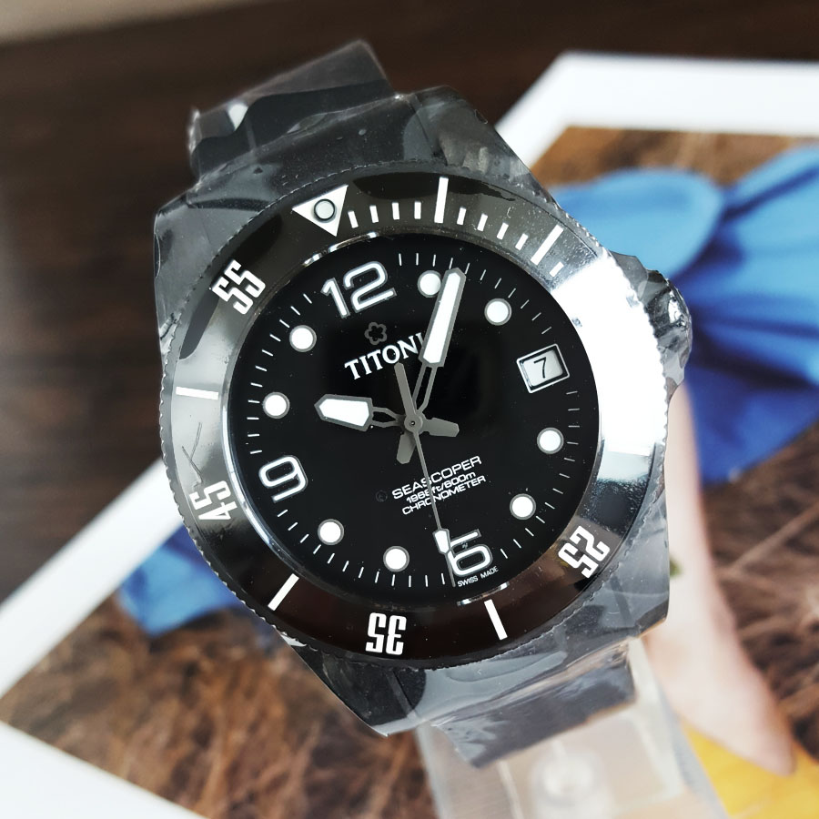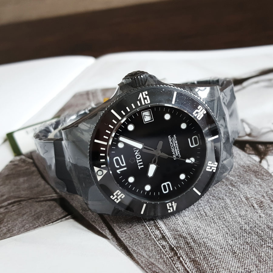 【99新】TITONI 梅花83600C-BK-256天文台认证自动机械机芯日期显示42MM(男款)Seascoper 海洋探索系列碳/陶瓷180426NJ26
