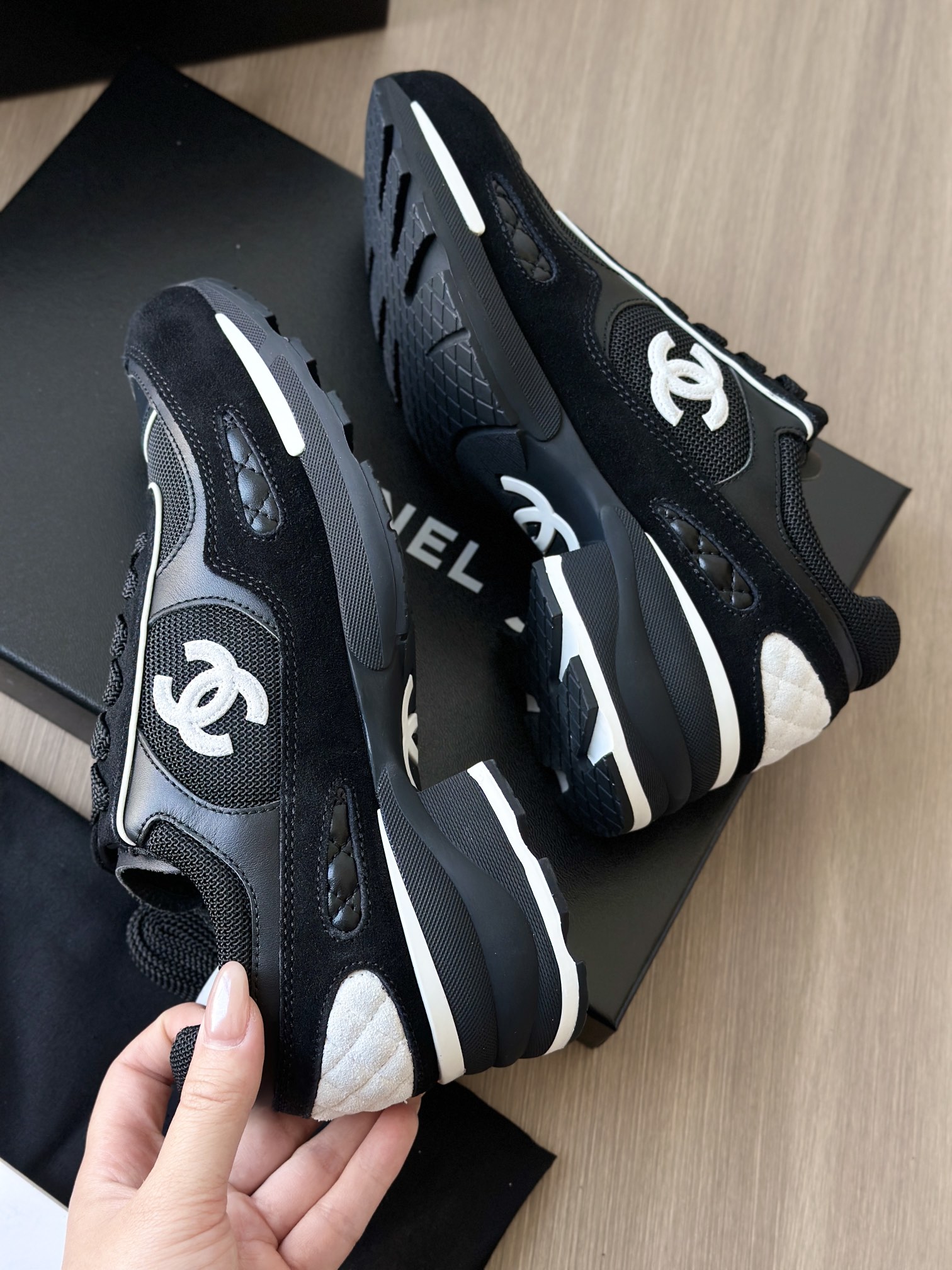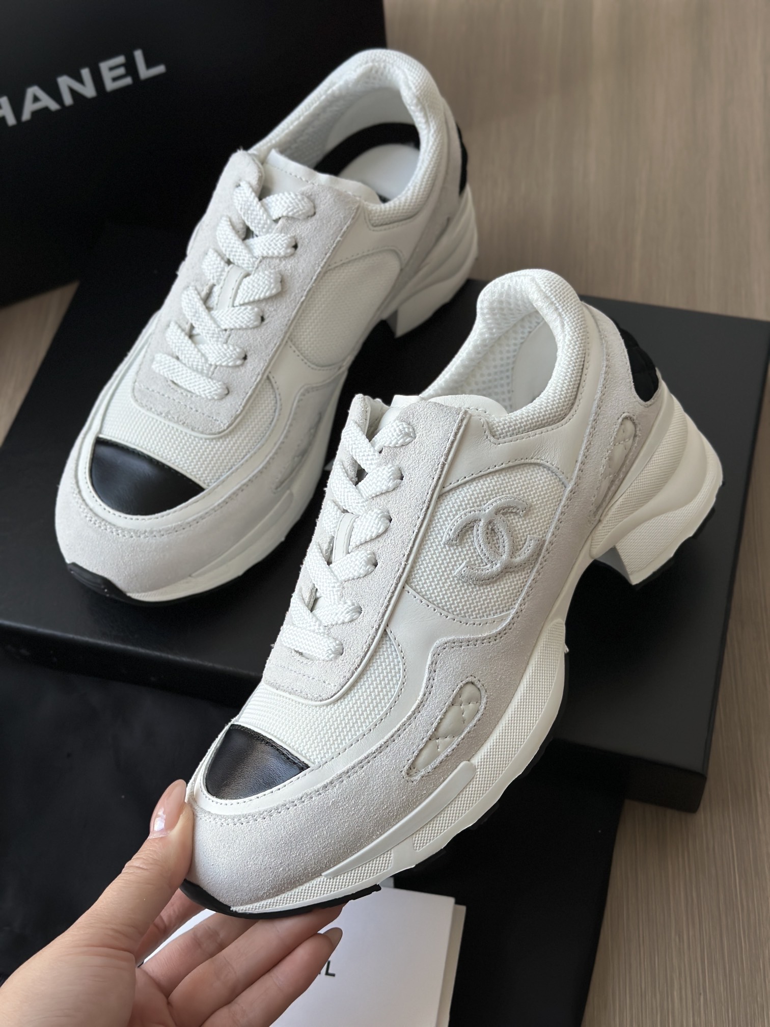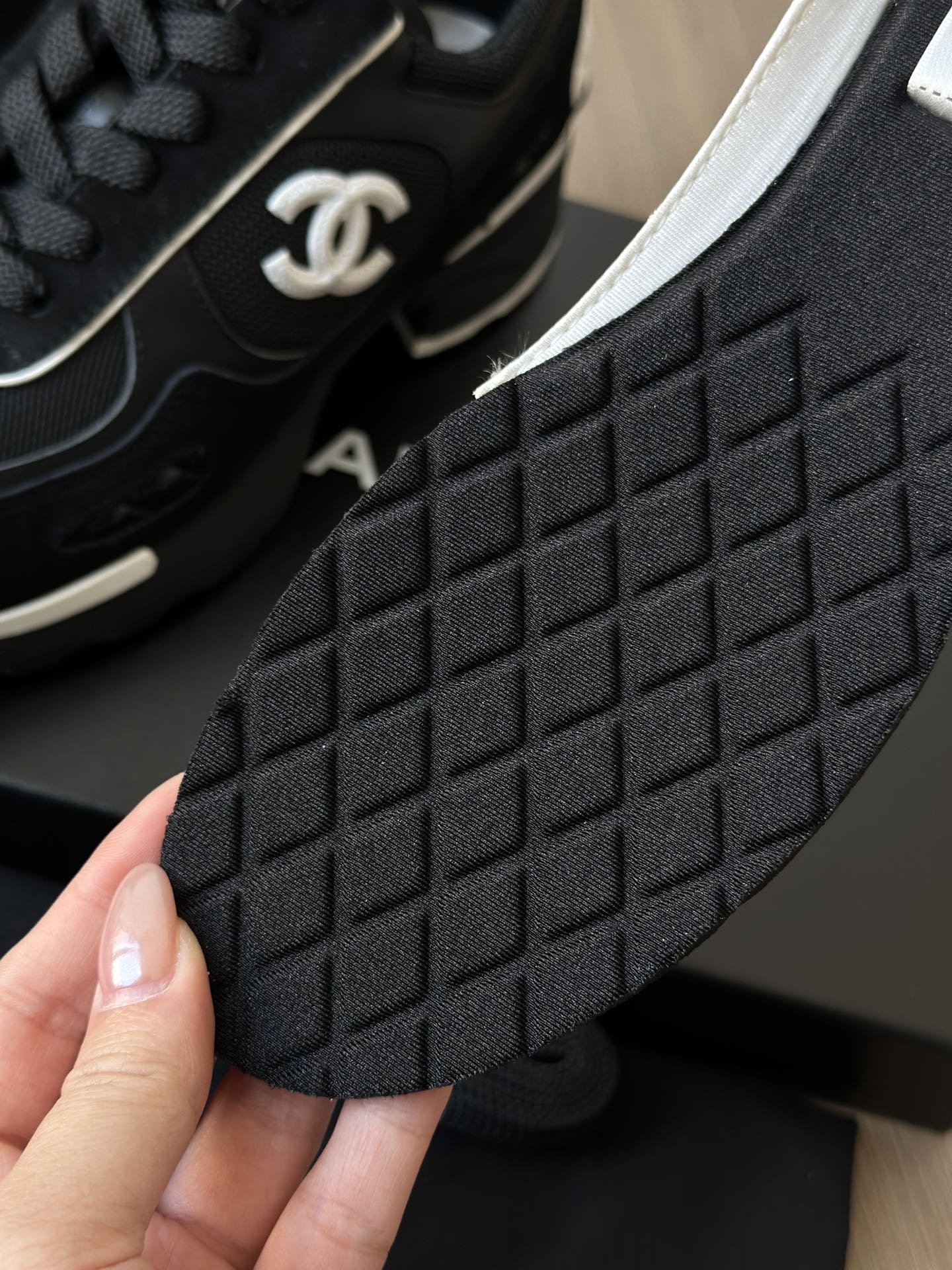 所有配置给到你们的是非常专业运动鞋! 内里是混种羊皮+三明治工艺网布,以及小香专用菱格垫脚!! 吸汗莱卡布+注塑EVA脚床 垫脚有品牌字母刺绣,这些细节的组成就是香奈儿与其他品牌与众不同的区别,好口碑不是突然出现的,是各种一点一滴的好感呈现的!