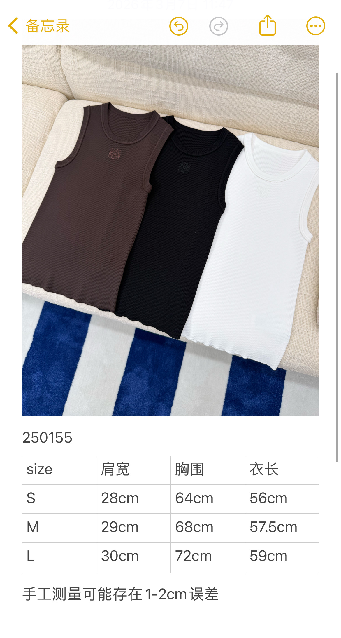 【新款现货发售】最最最新款🆕螺纹刺绣背心🌸整件背心质感出众,高级感瞬间拉满🔥胸前点缀精致刺绣,细节之处尽显匠心✔️采用定织定染纱线🔜选料讲究,肌理细腻,轻松穿出高级氛围感~版型真的绝👍🏻完美修饰副乳💫单穿时柔美与性感并存,勾勒迷人曲线💖 作为内搭同样吸睛,瞬间点亮整体造型,轻松拿捏法式慵懒风情😜 无论是日常出街还是约会聚会,都是不容错过的搭配利器!衣橱必备单品✅ 黑/白/咖三色可选,码数SML