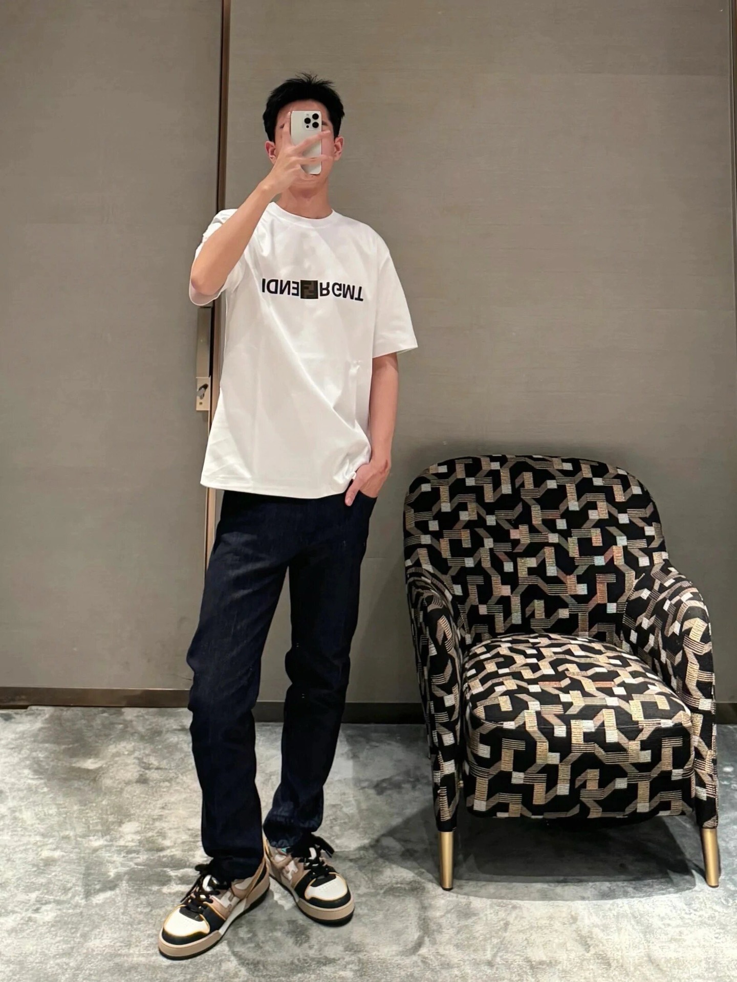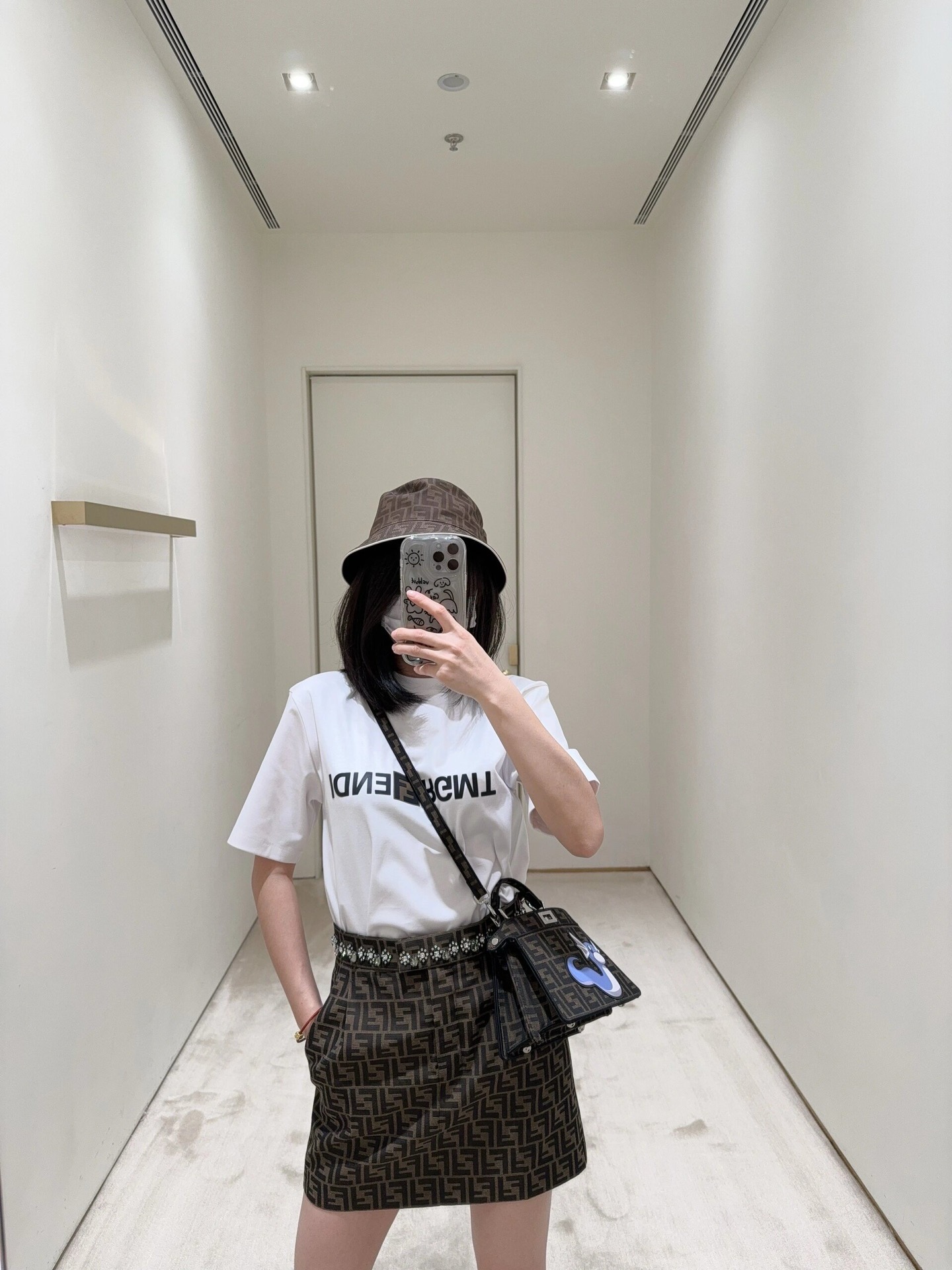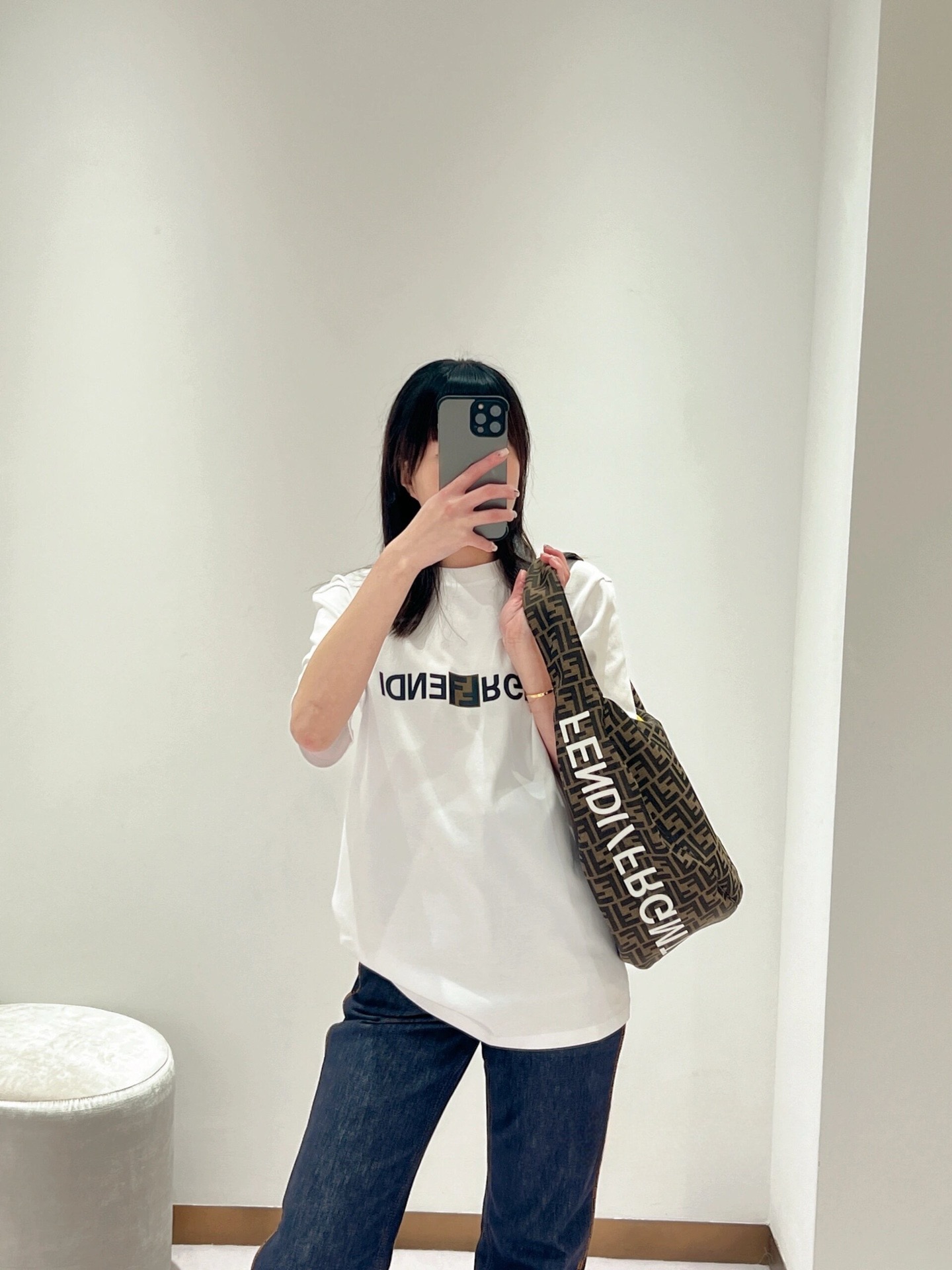 F家 小黑格印花圆领短袖