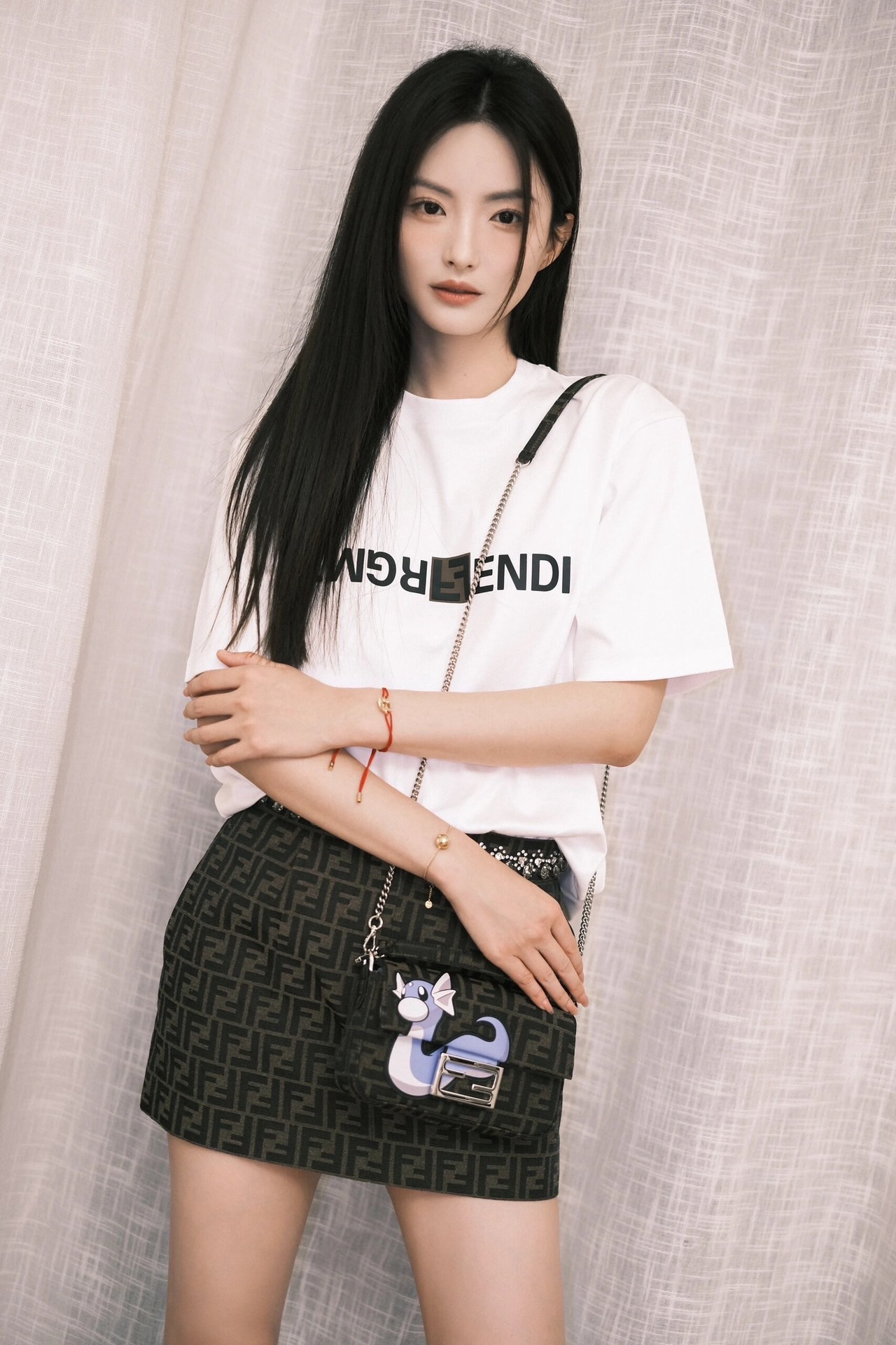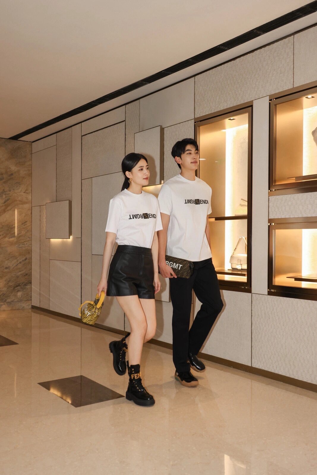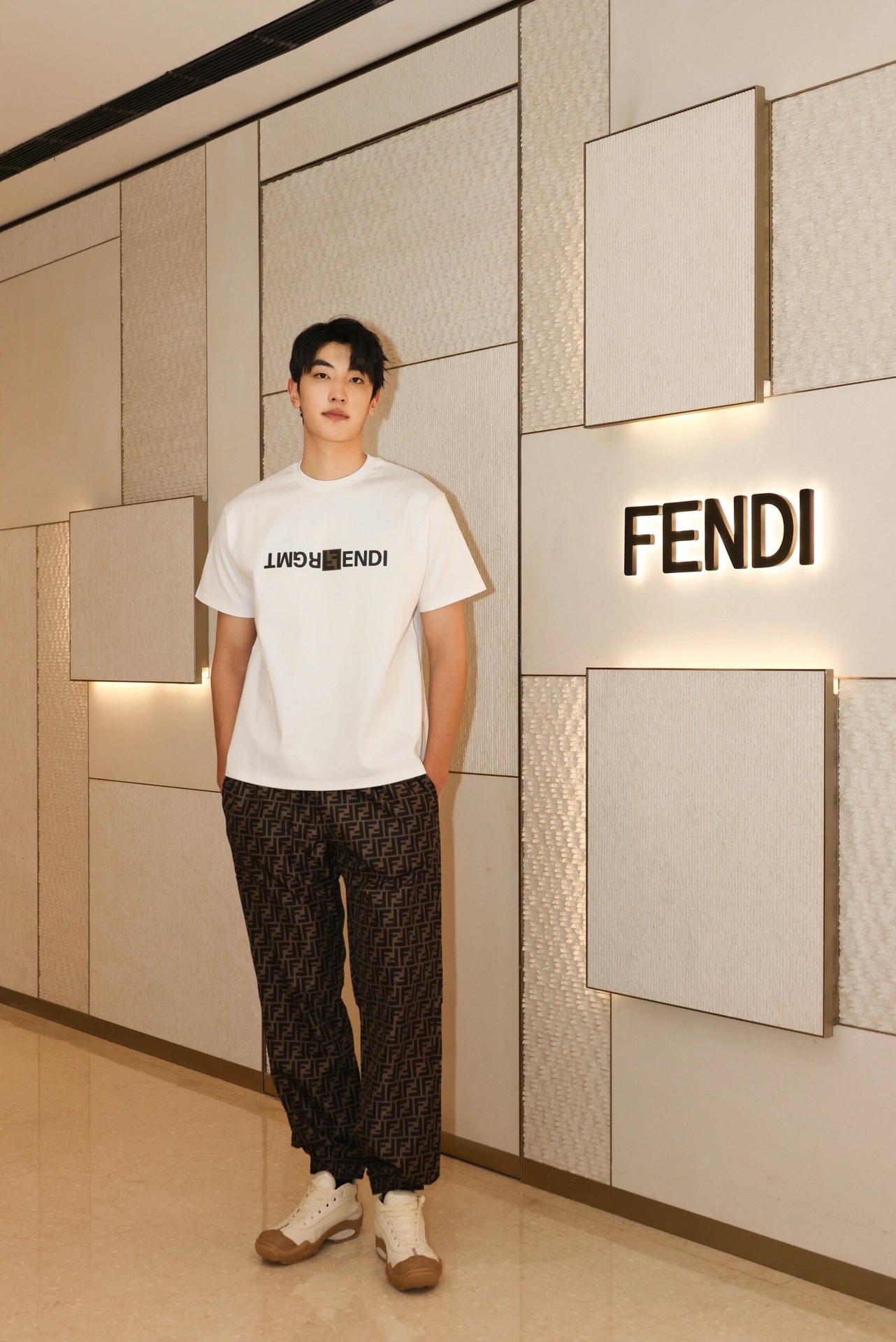 F家 小黑格印花圆领短袖