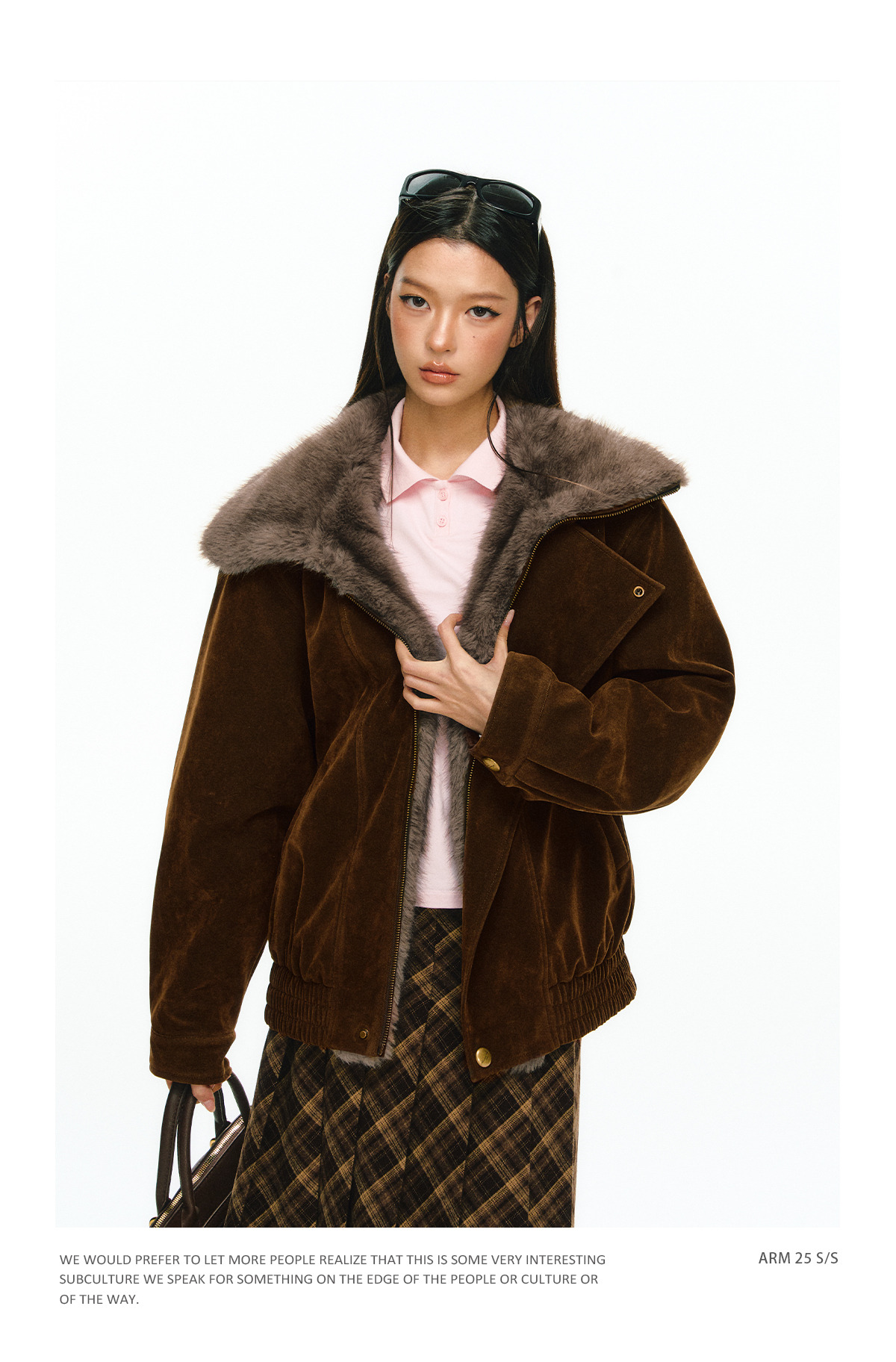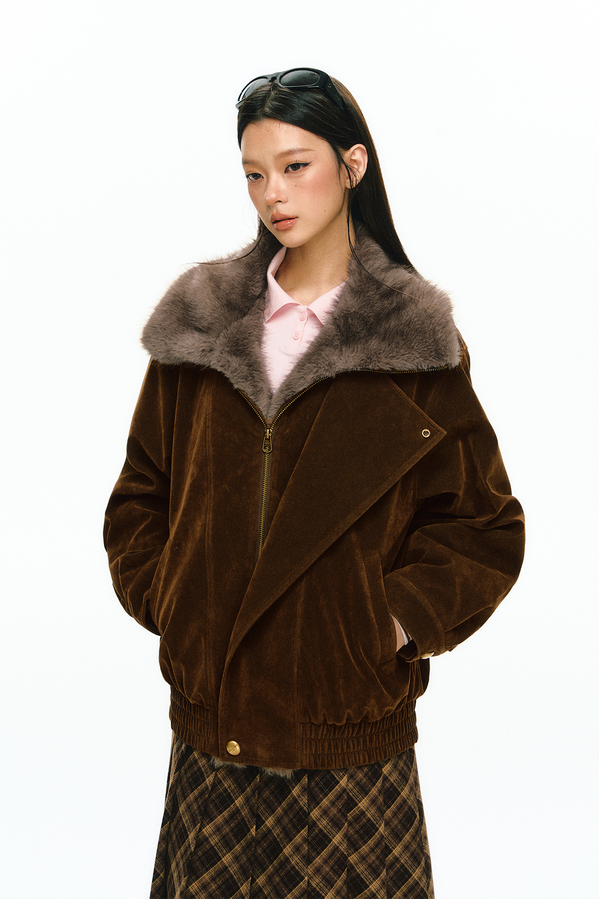 Ariseism 美式复古设计感夹棉毛毛外套女冬季新款修身上衣