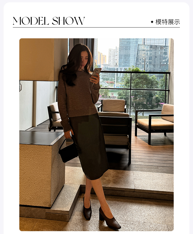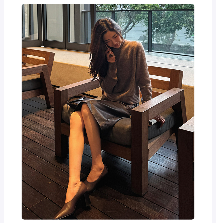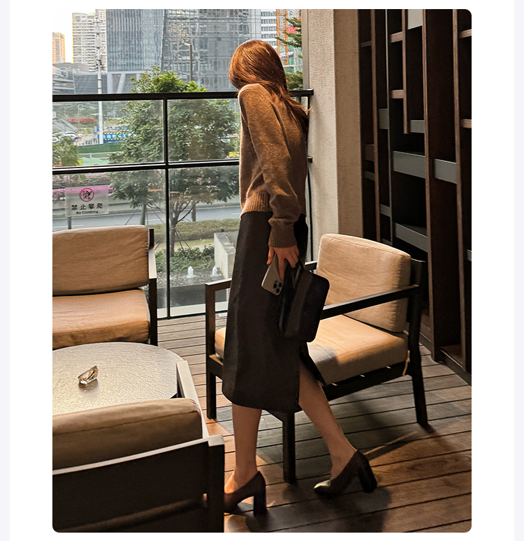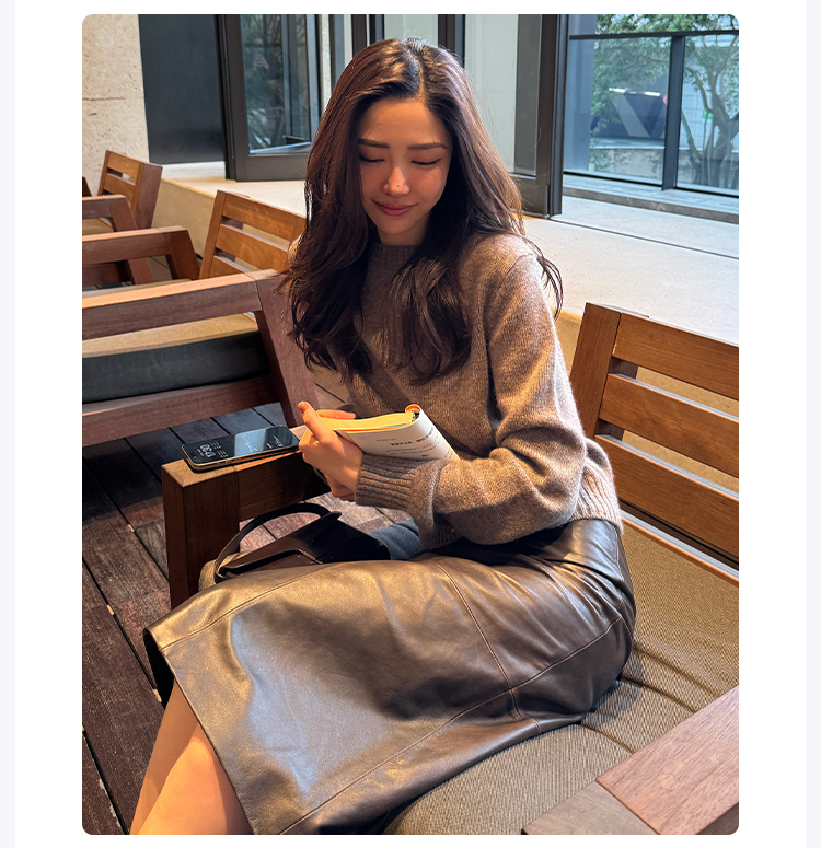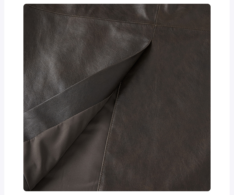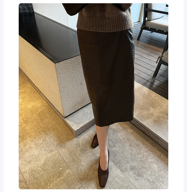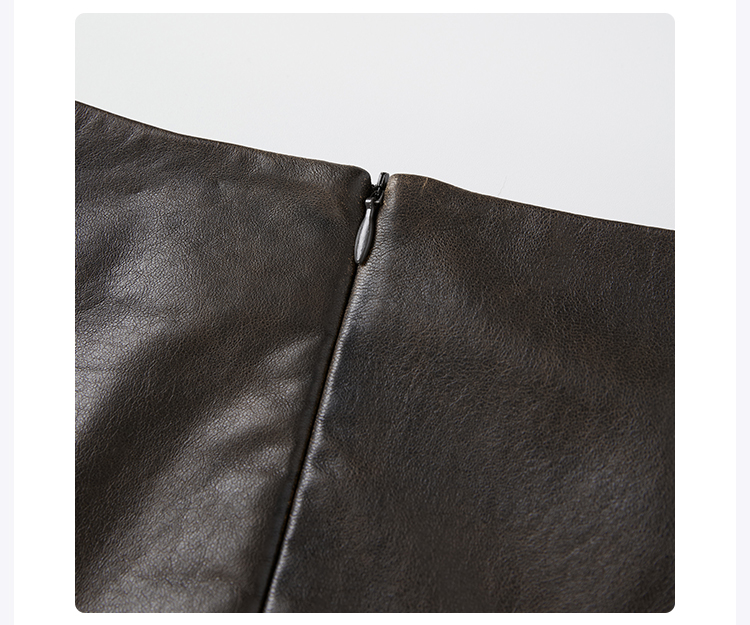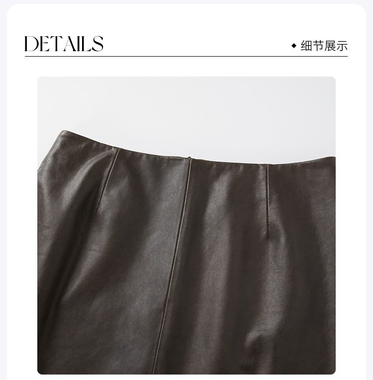 ROMI STUDIO“棕标甄选”100%绵羊皮半哑光软糯皮半裙 RW24WXG0061