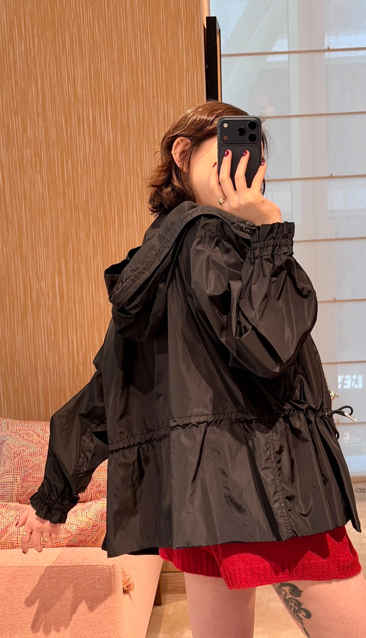 【新款上线】新款🆕Vivian连帽风衣外套💫经典黑色超显质感🫶🏻休闲随性氛围感拉满☑️ 不会过分张扬却记忆点强😉简约又吸睛,日常穿搭超时髦😍收腰抽绳设计,宽松显瘦不挑身材🔝随性飒爽还能优化身材比例👍面料紧实密度均匀,挺括有型、上身超舒服🥳定制顺滑拉链,质感拉满💯细节做工都很到位✨版型和工艺都很考究‼️春夏过渡、日常通勤必备款,人人都好穿😘闭眼入不踩雷🕶️码数SML