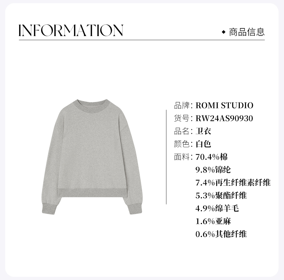 ROMI STUDIO“都市休闲”再生高弹毛巾布内加绒宽松卫衣RW24AS90930