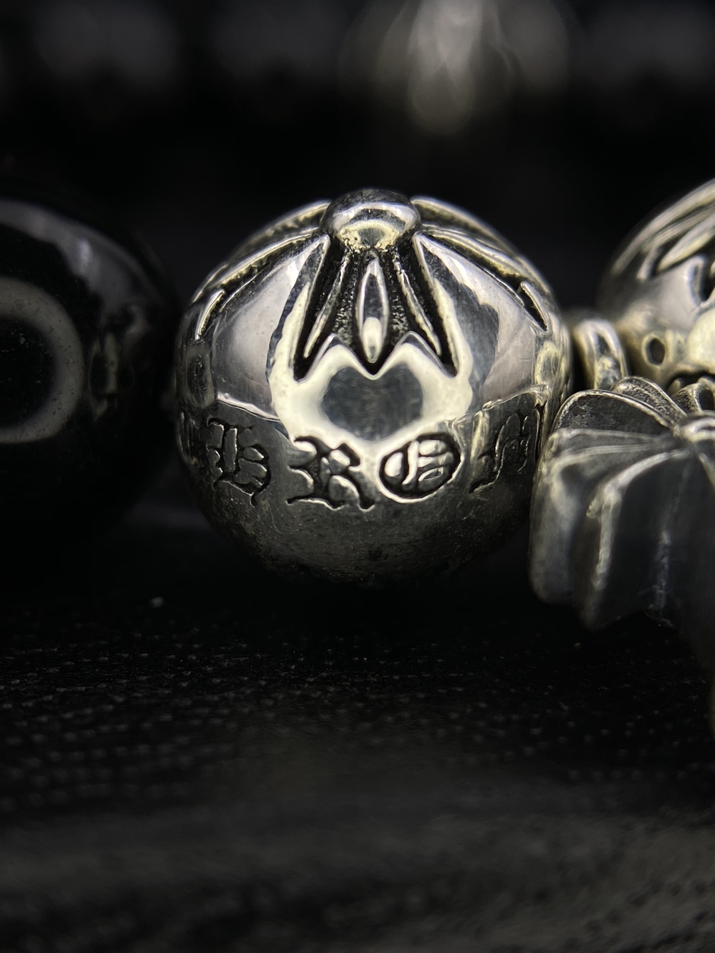 克罗心三银珠十字架吊坠黑曜石手串