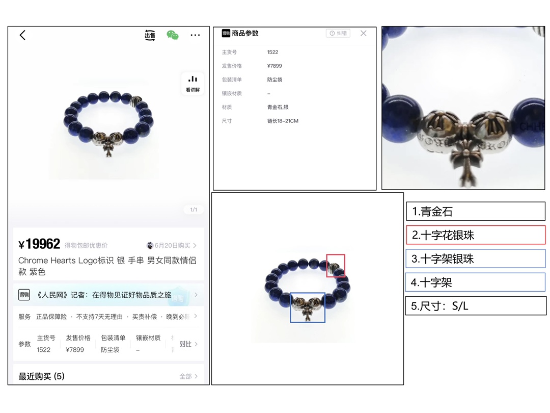 克罗心三银珠十字架吊坠青金石手串