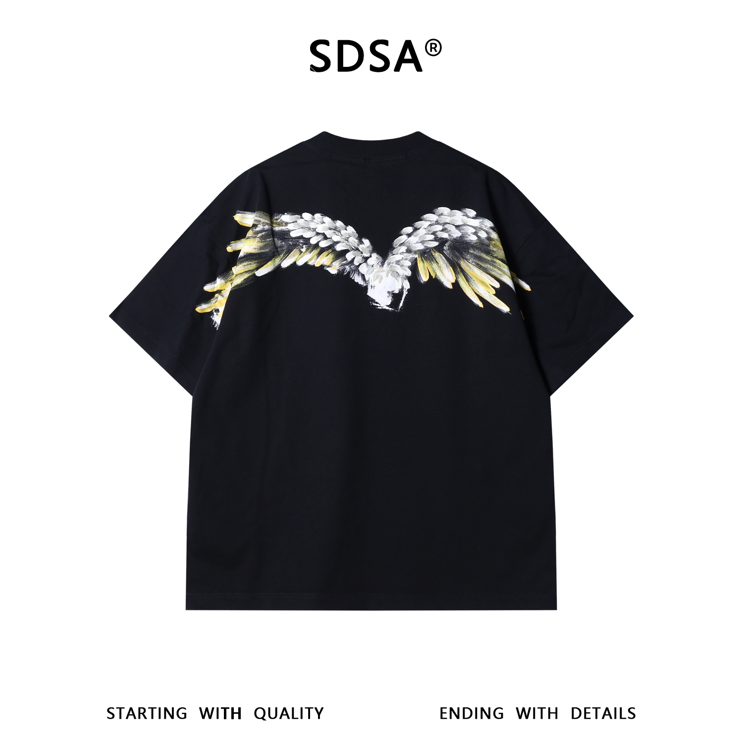SDSA男装2026新款高贵轻奢美式翅膀字母印花圆领短袖T恤百搭高街