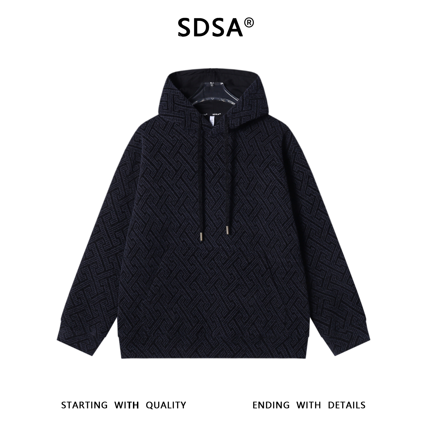 WY1279SDSA男士秋冬新款痞帅男装潮牌撞色提花字母抽绳连帽卫衣百搭宽松