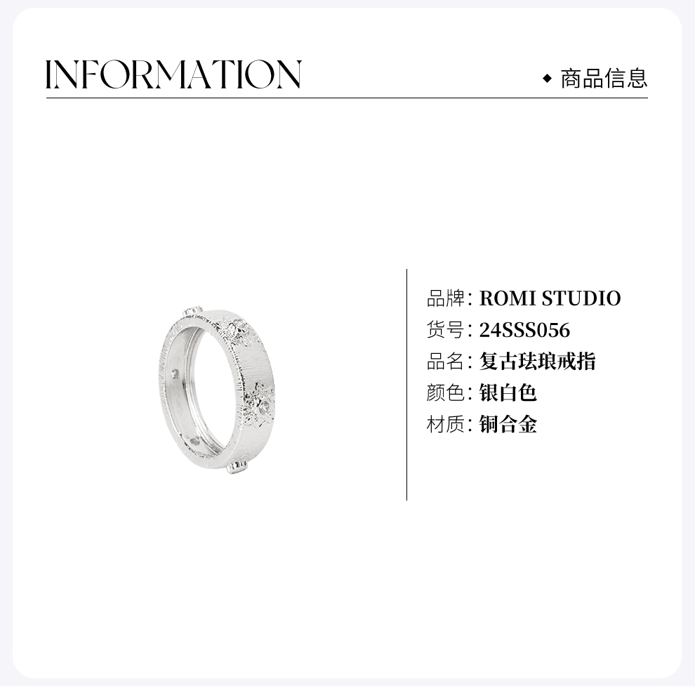 ROMI STUDIO 铜合金戒指 “意式美学”宫廷复古拉丝戒指24SSS056