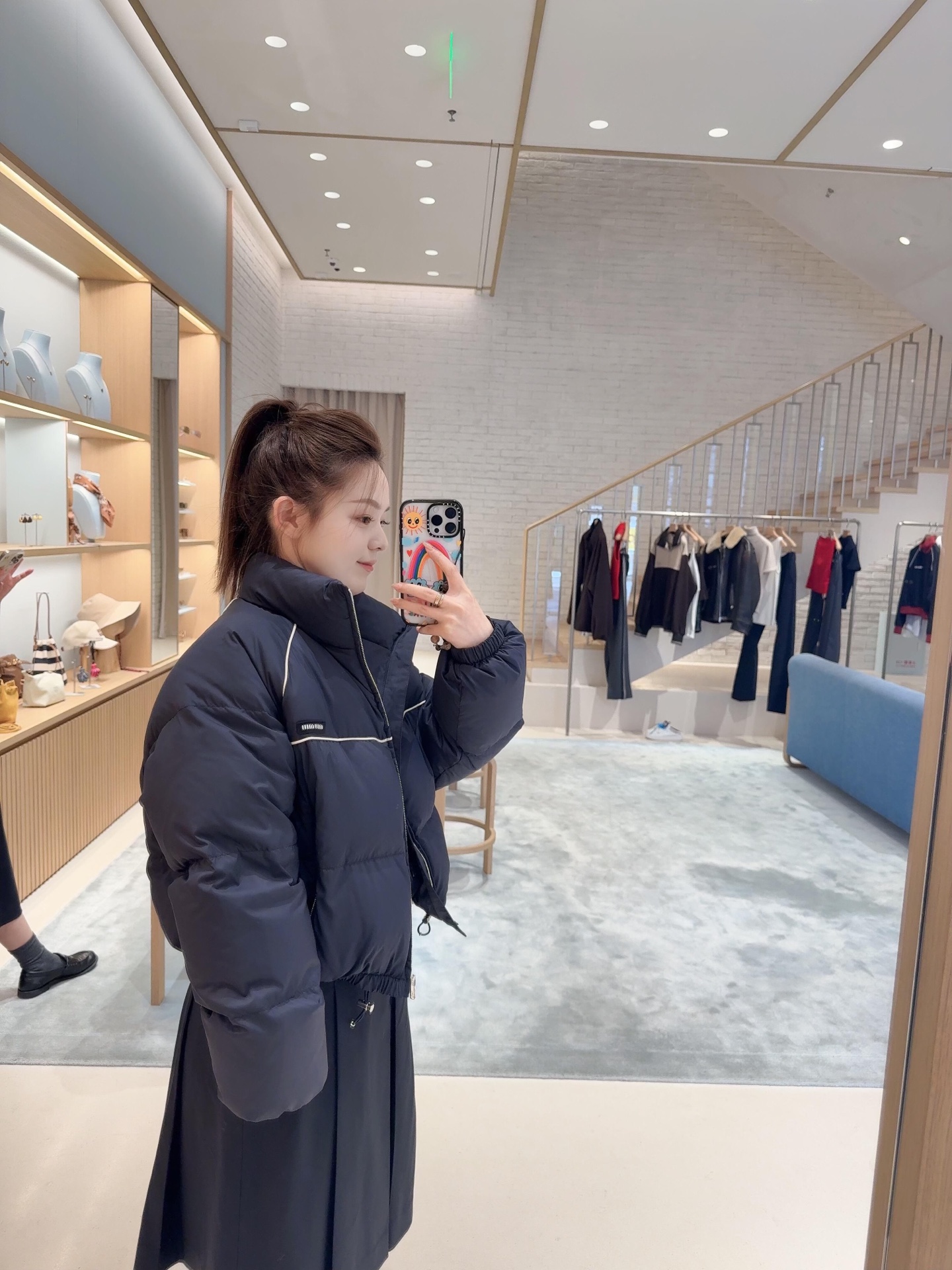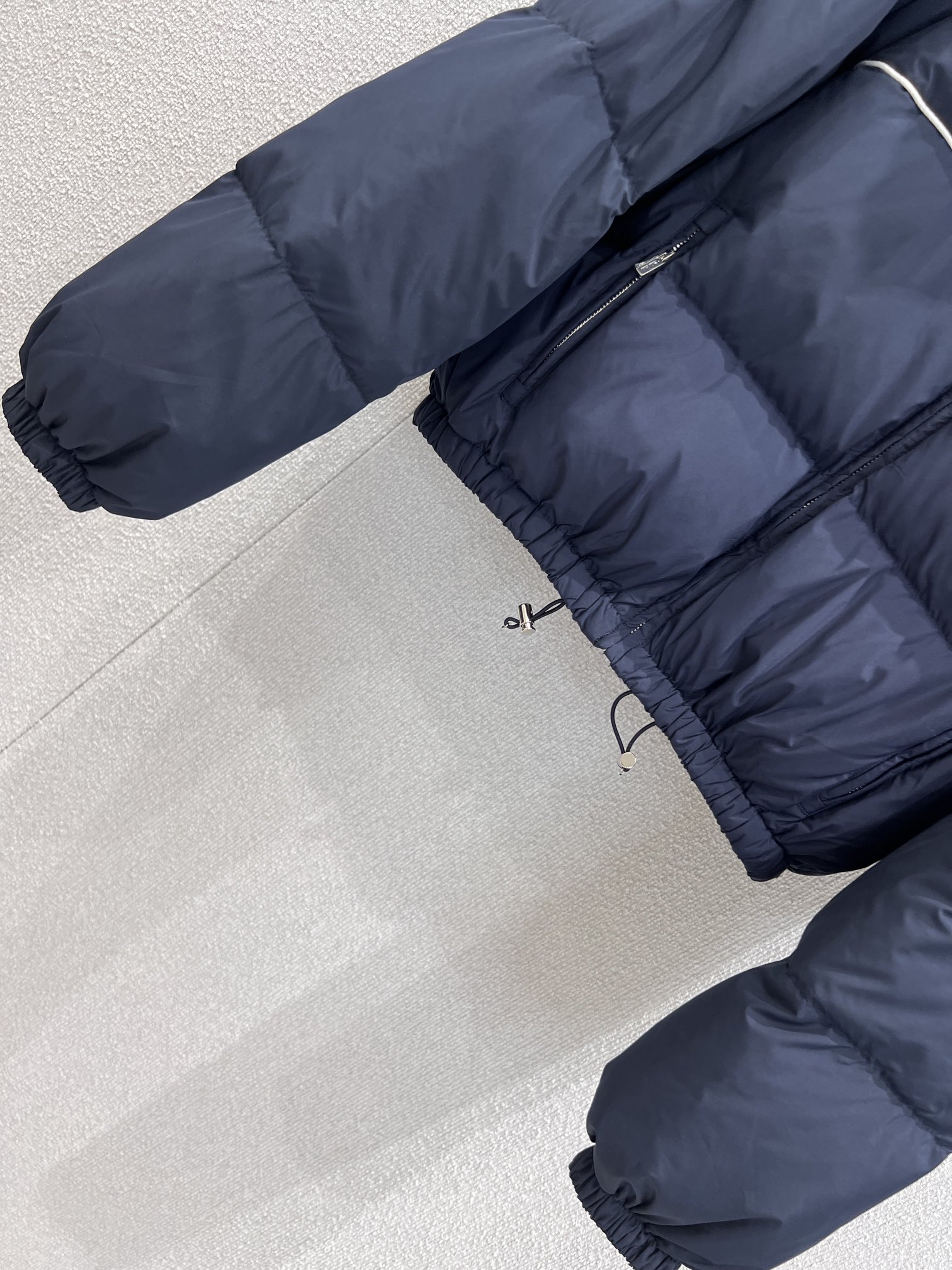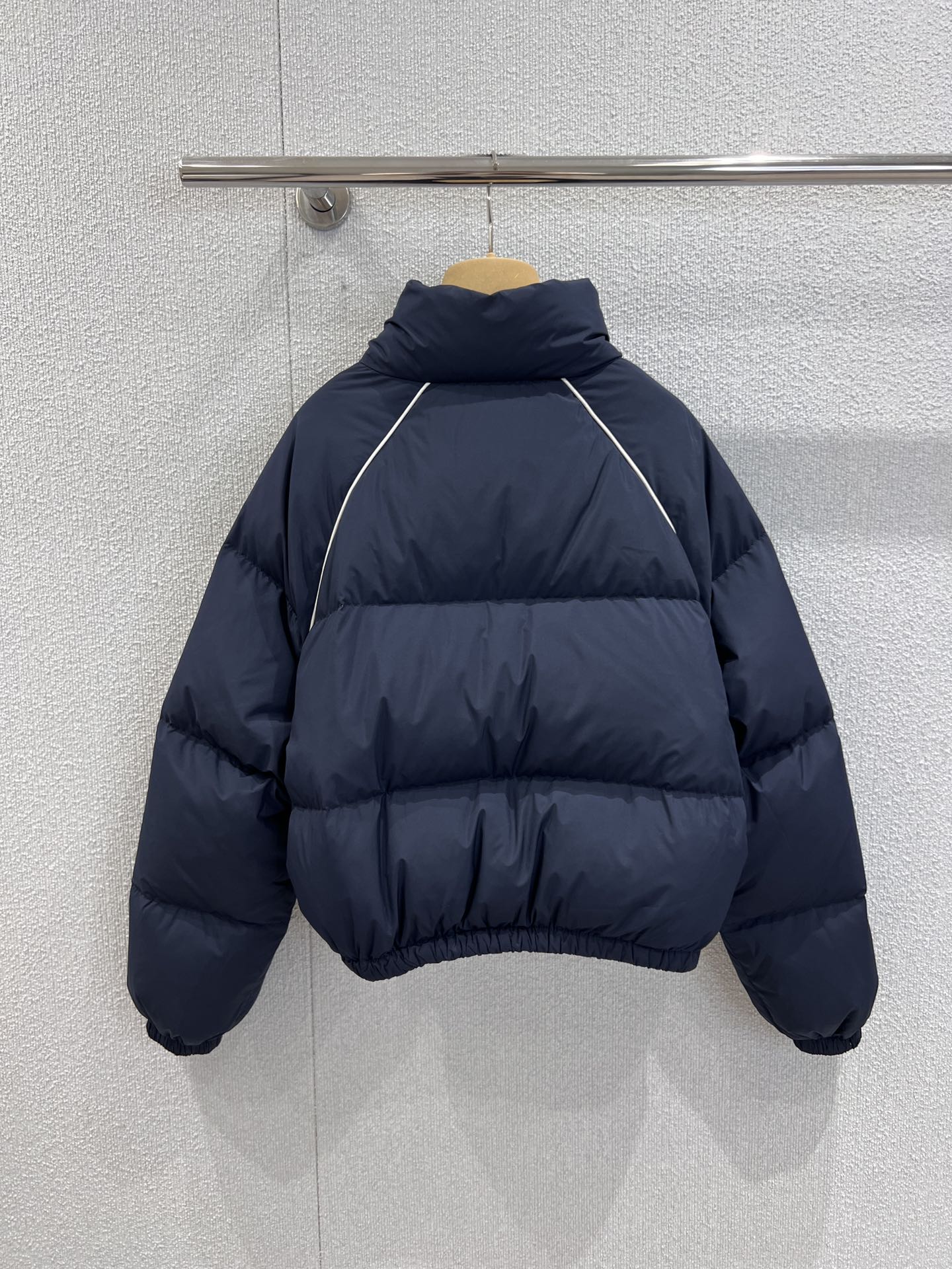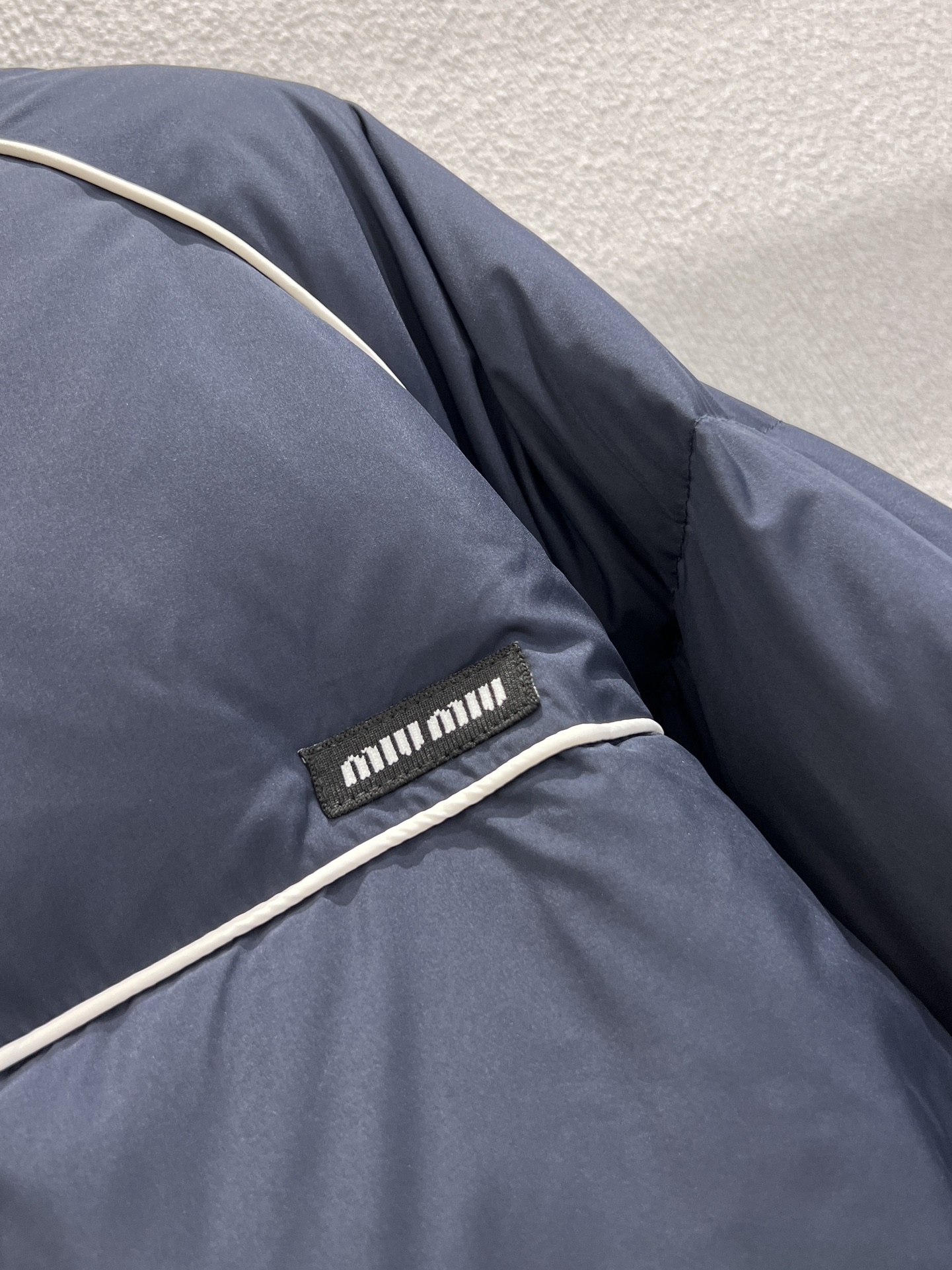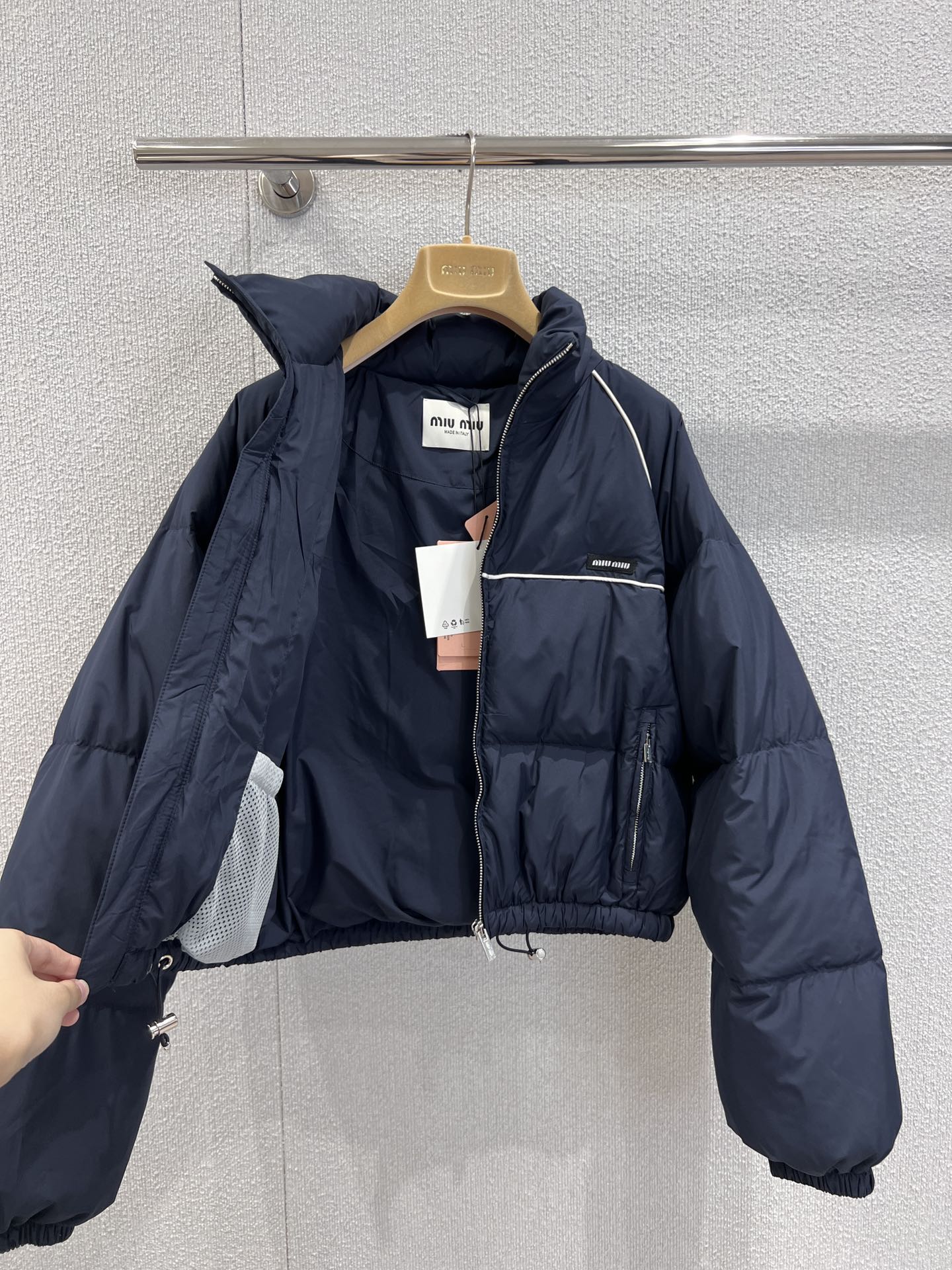 MiuMi* 25Fw早秋新款 短款鹅绒羽绒服丨⚠独家yb开发!高版出品!深蓝色主调+白色线条,简约又有运动感。高品质鹅绒填充,轻薄保暖,秋冬穿超合适!短款剪裁+收腰设计,显高显瘦,小个子友好~立领防风,袖口和下摆松紧收口,实用又时髦。日常通勤、休闲都能轻松搭配,舒适又百搭,是秋冬衣橱必备单品!