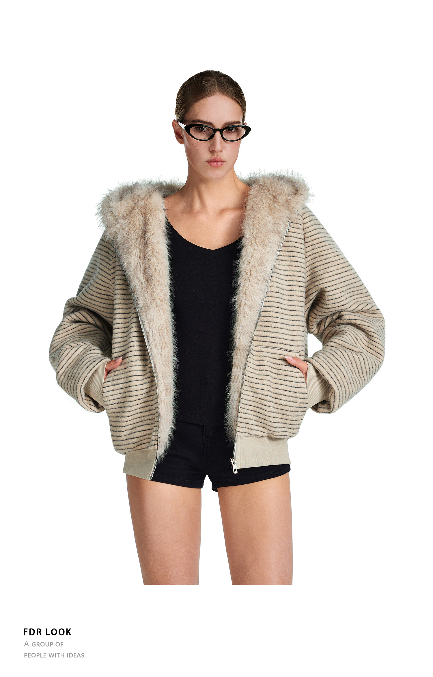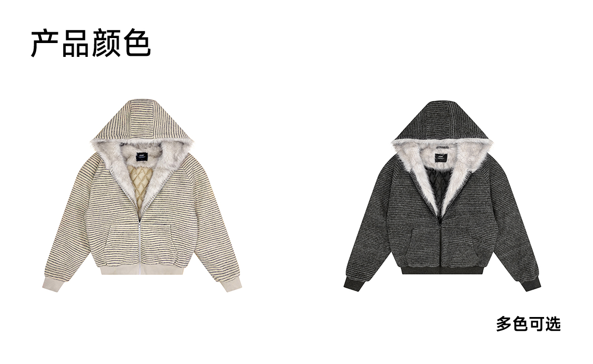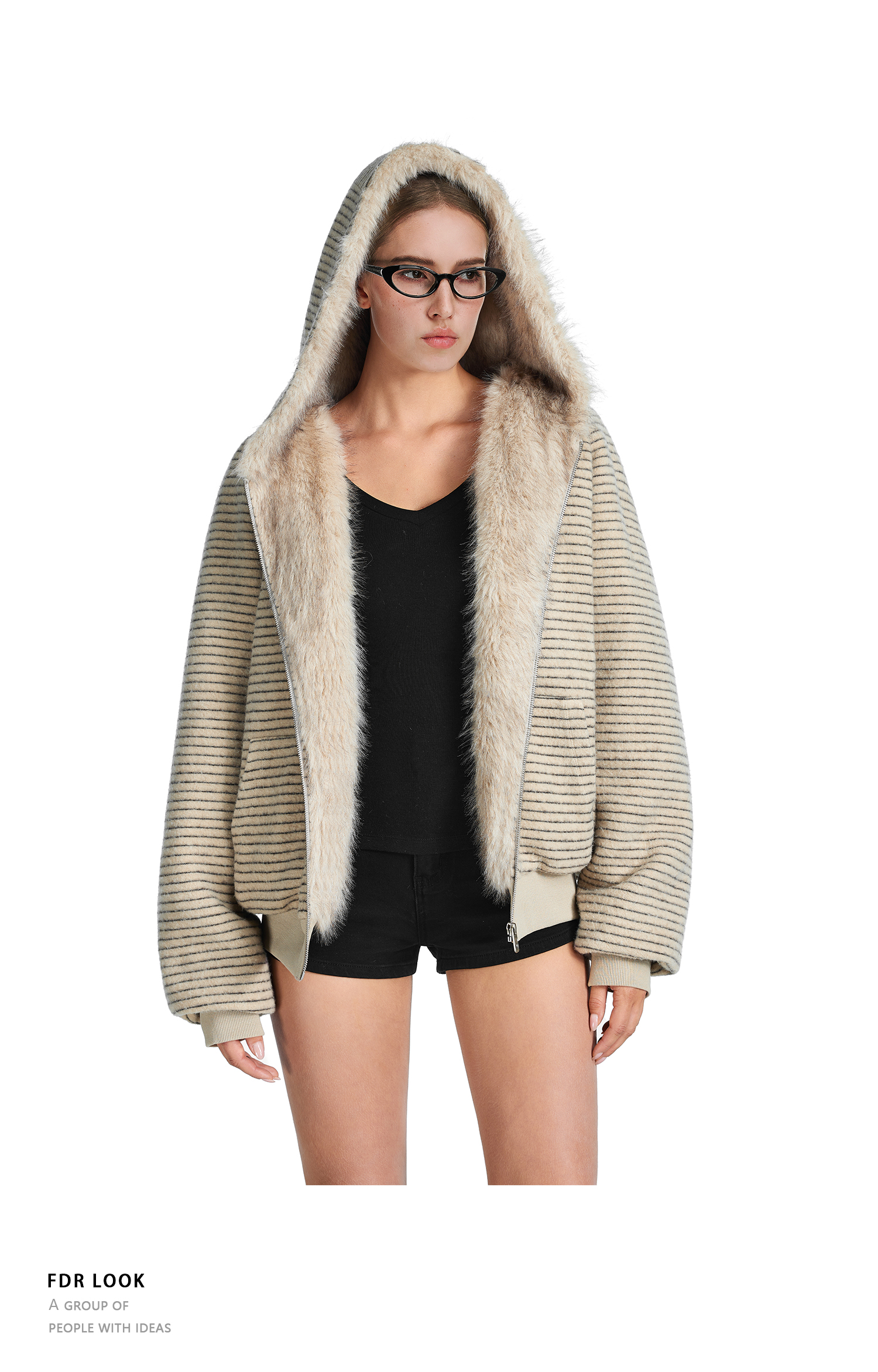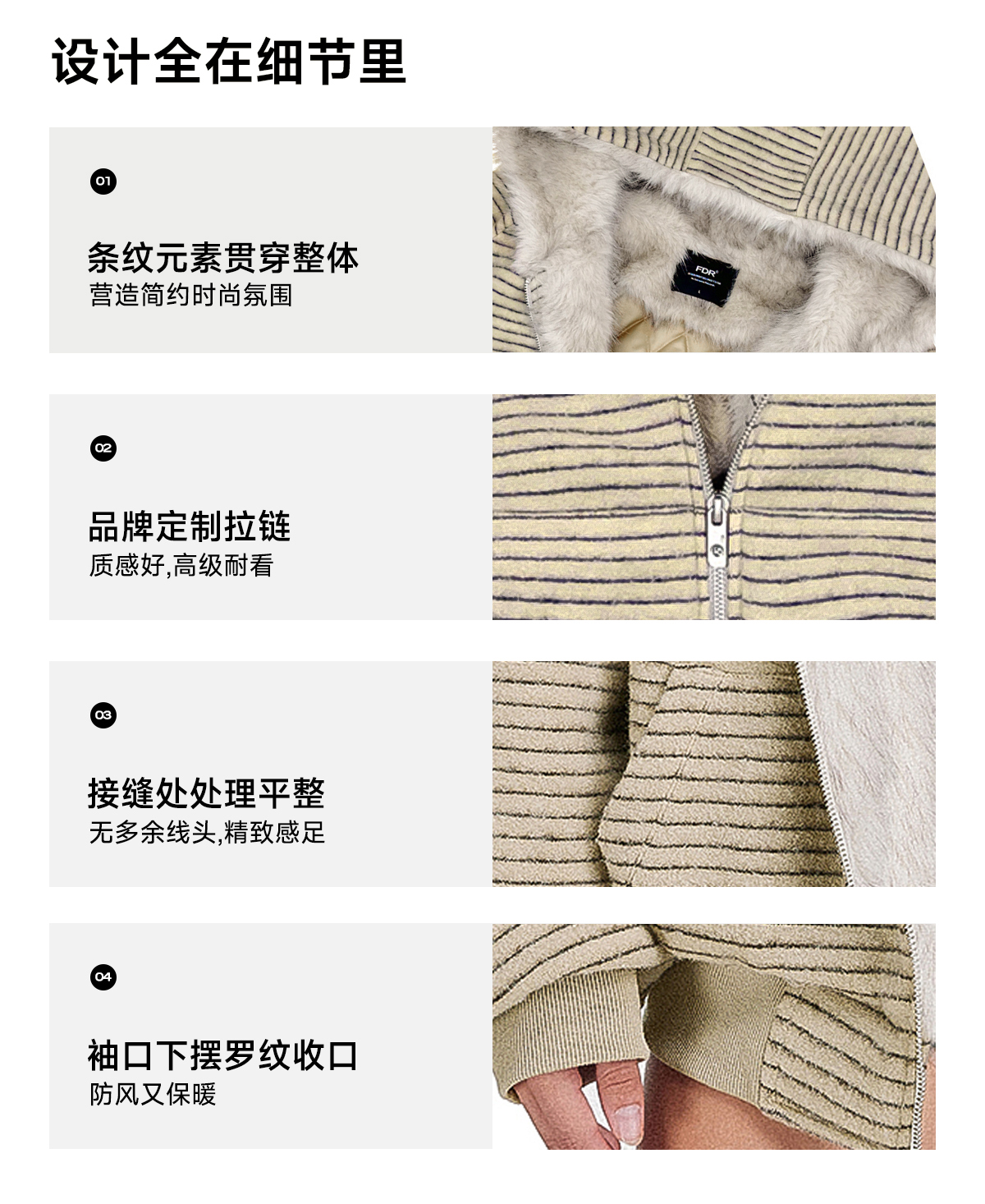 FDR官方店 条纹廓形毛领夹棉棉衣男爆款2025新款座山雕外套女款冬