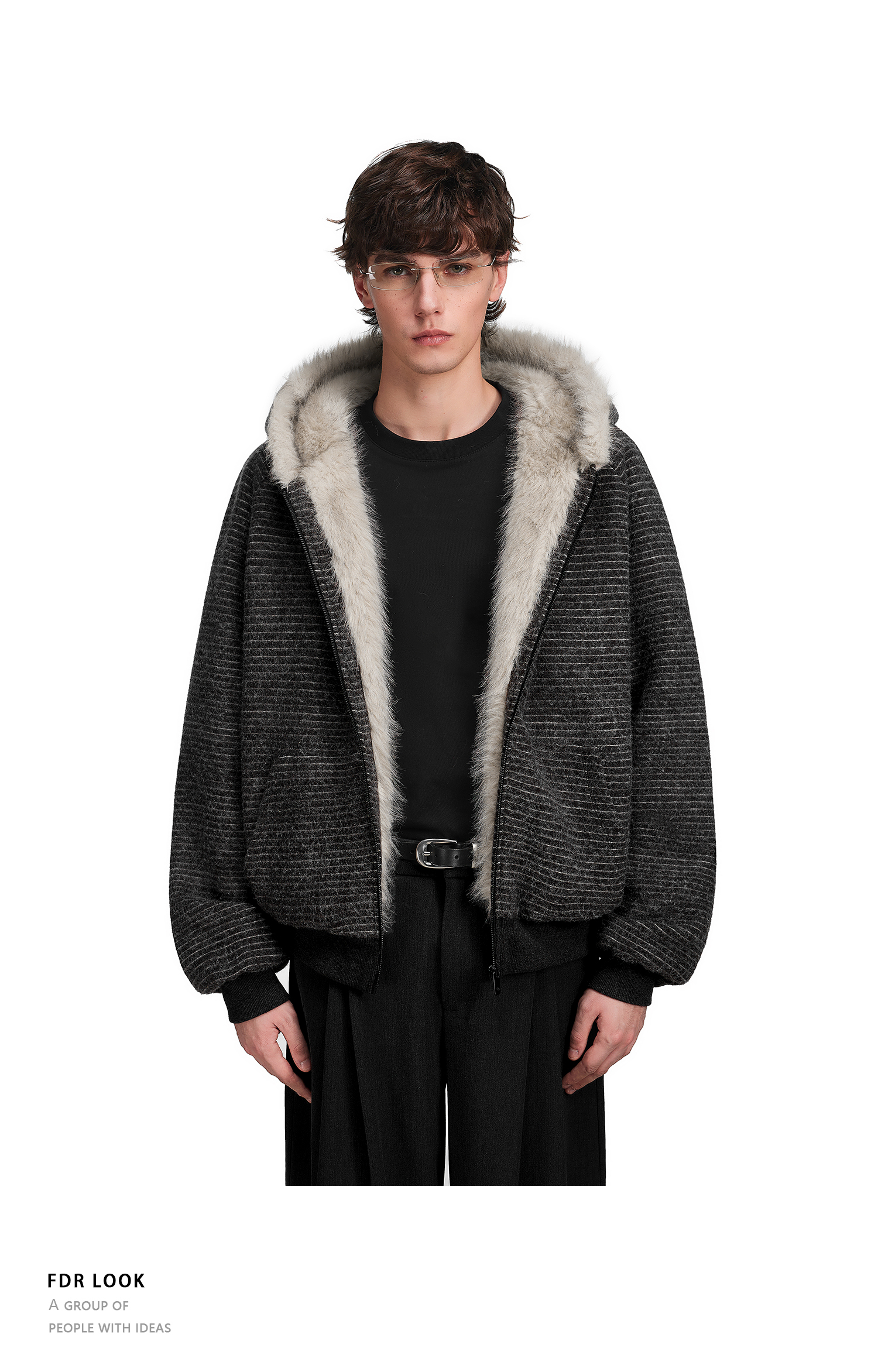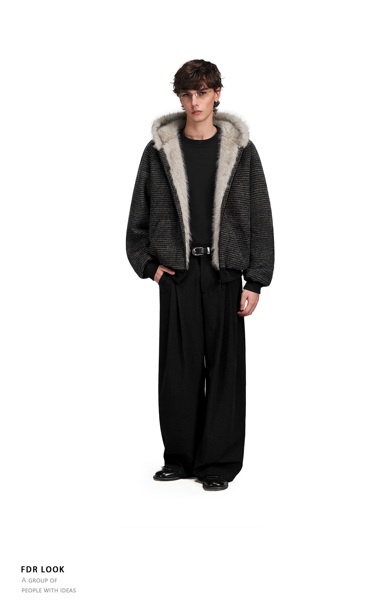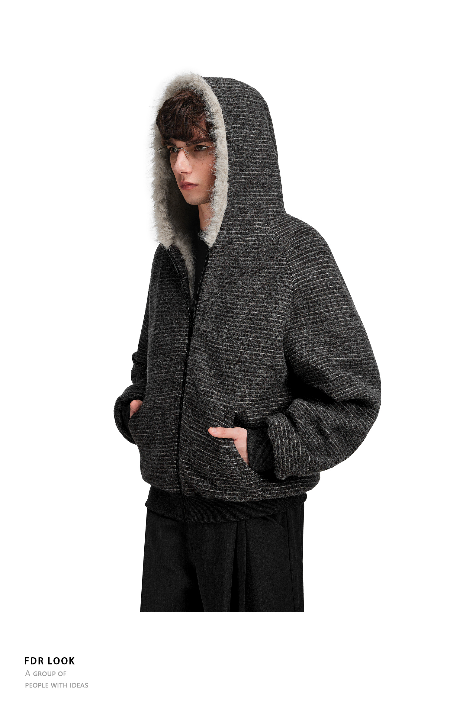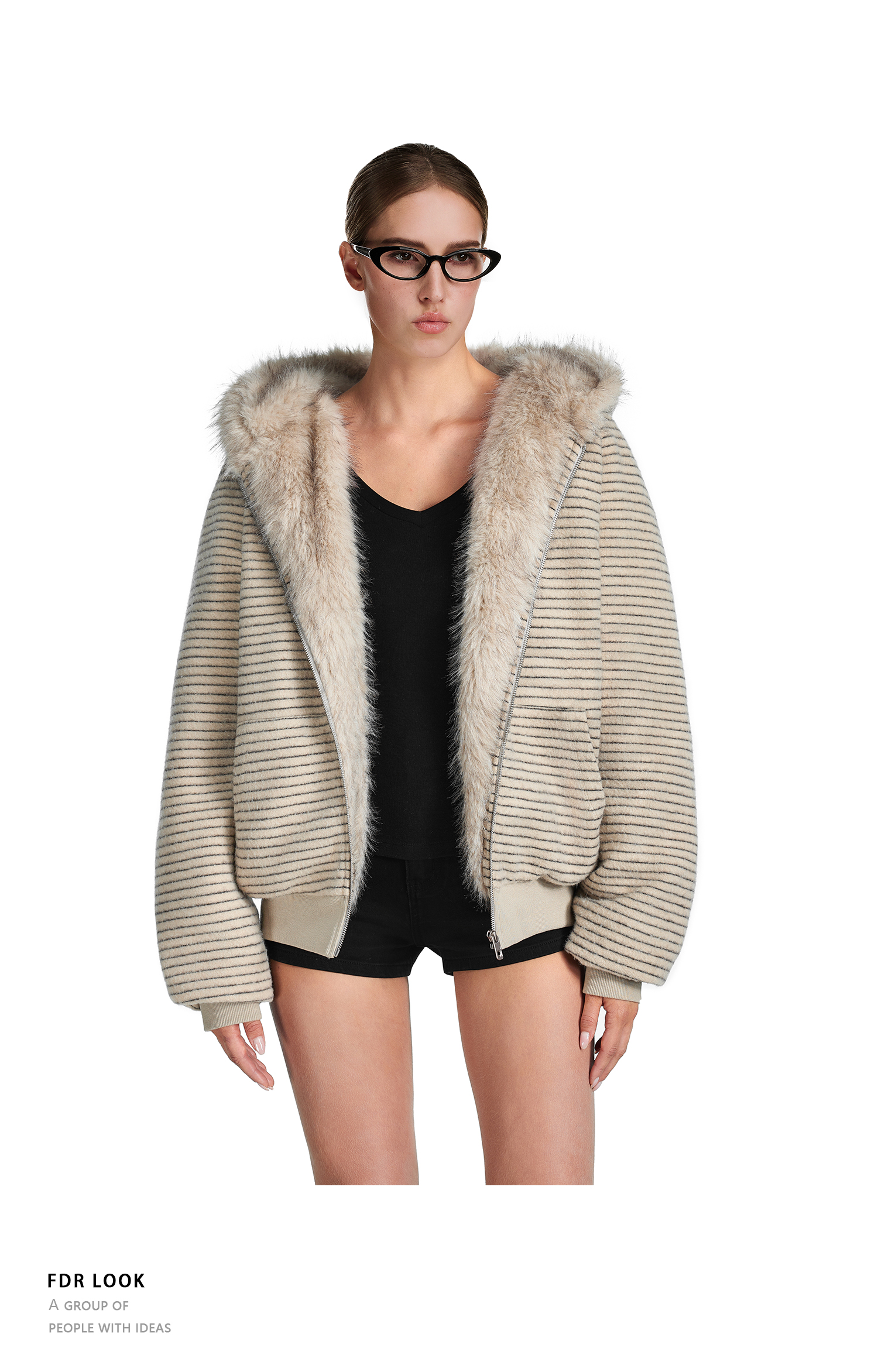 FDR官方店 条纹廓形毛领夹棉棉衣男爆款2025新款座山雕外套女款冬