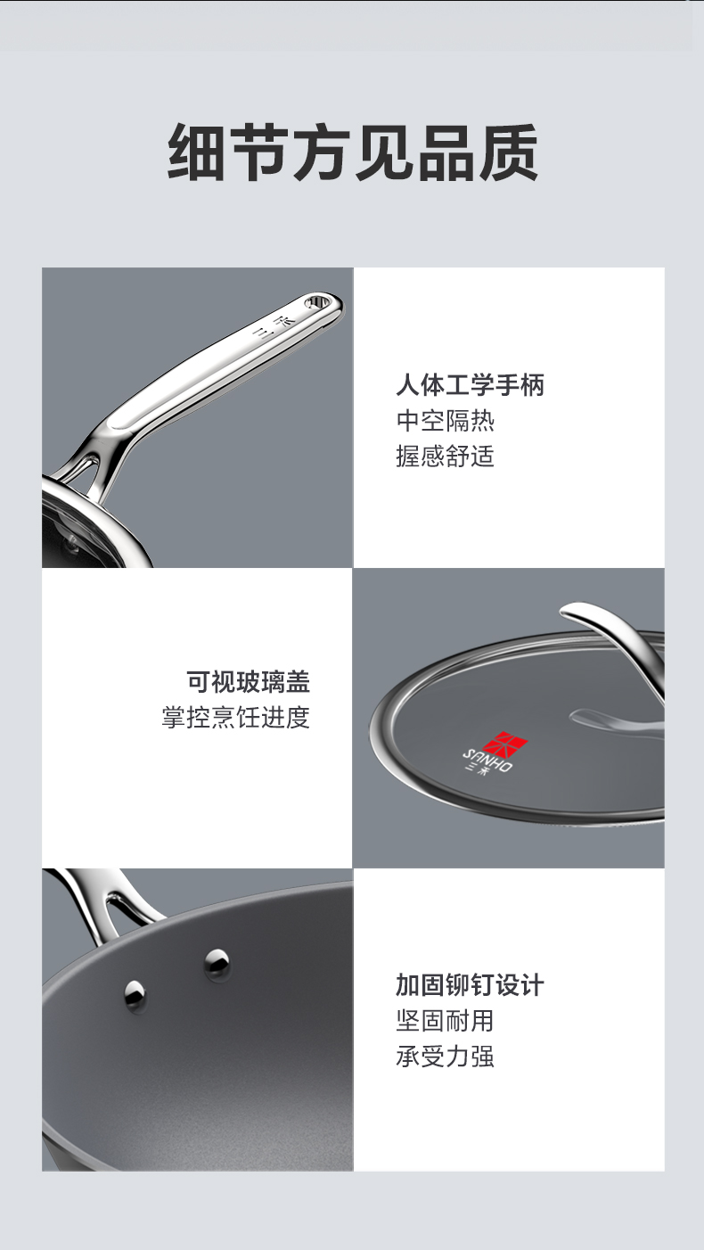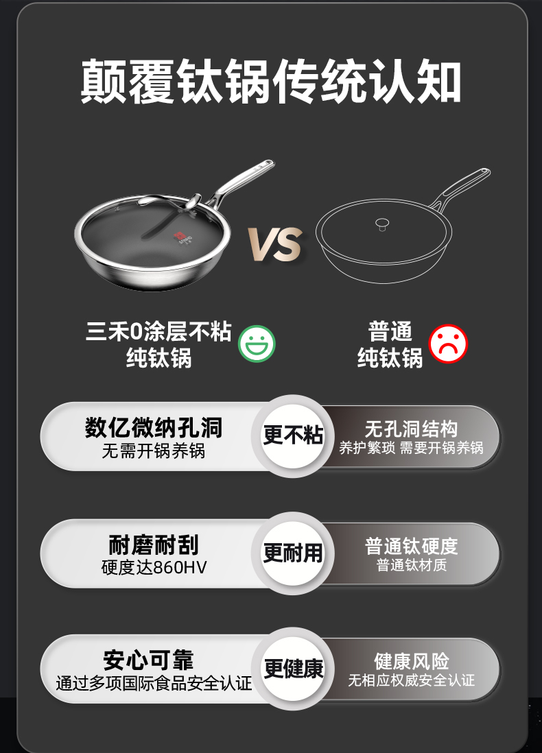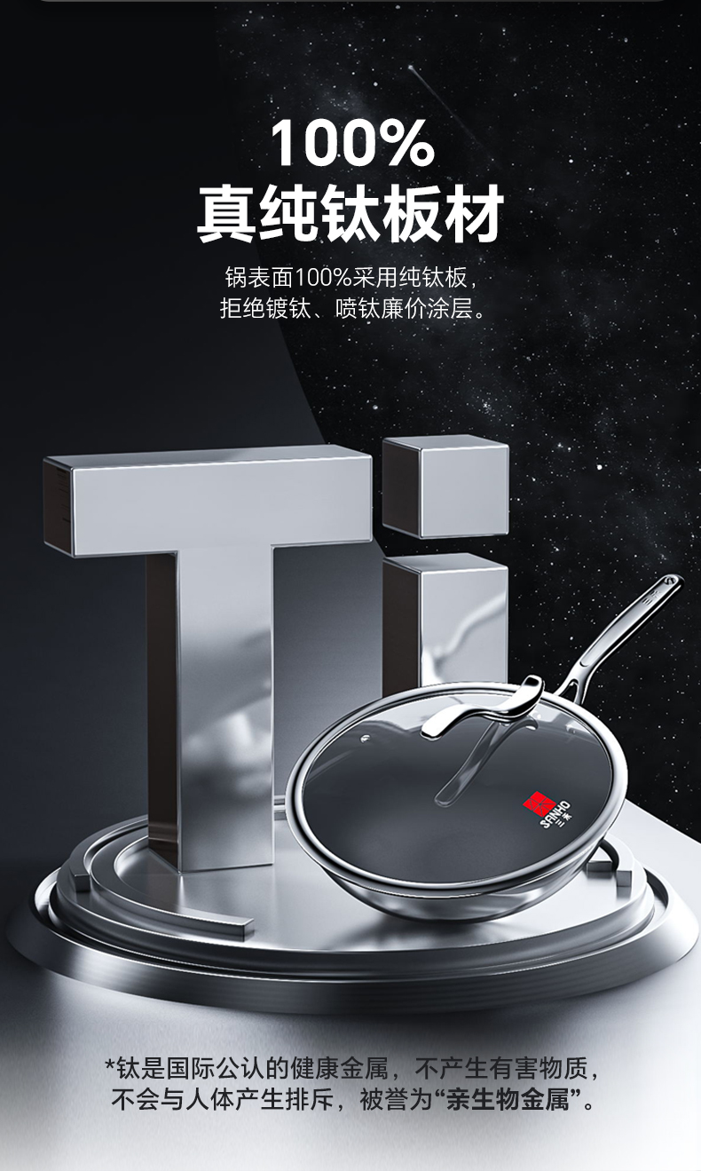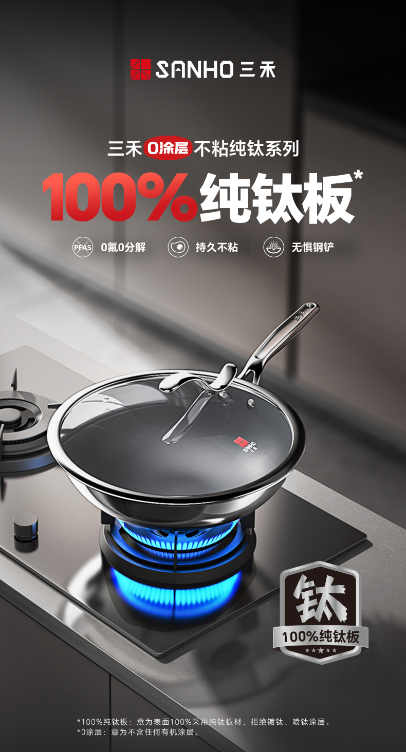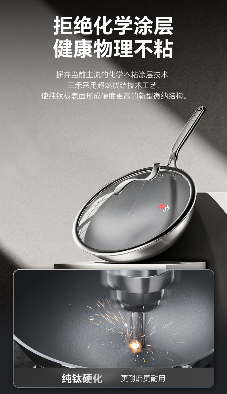【三禾合集】三禾0涂层钛钢不粘炒锅家用无涂层电磁炉燃气灶通用不锈钢炒菜锅 不粘奶锅 纯钛筷子