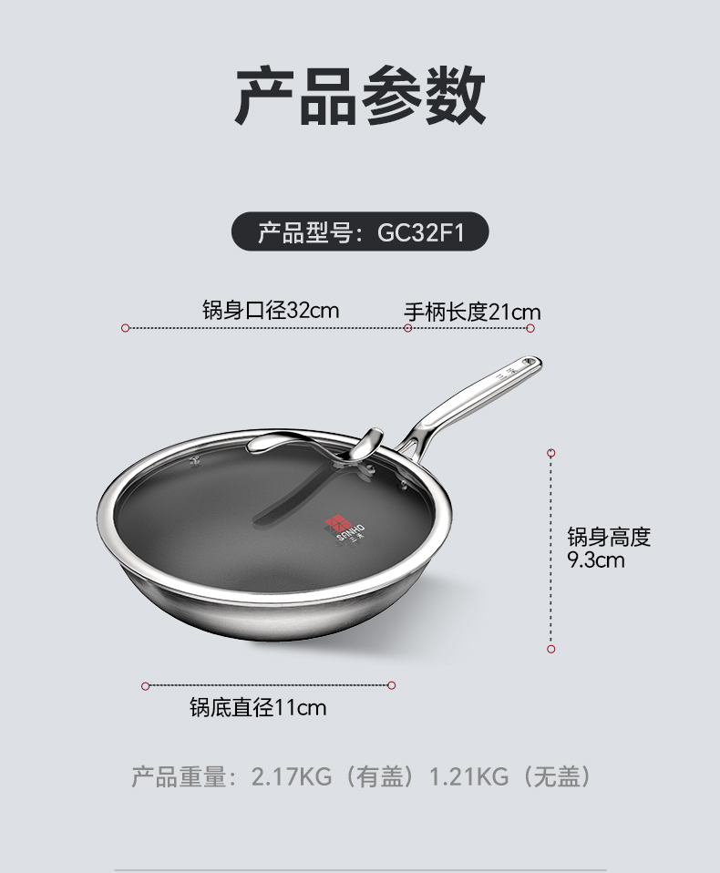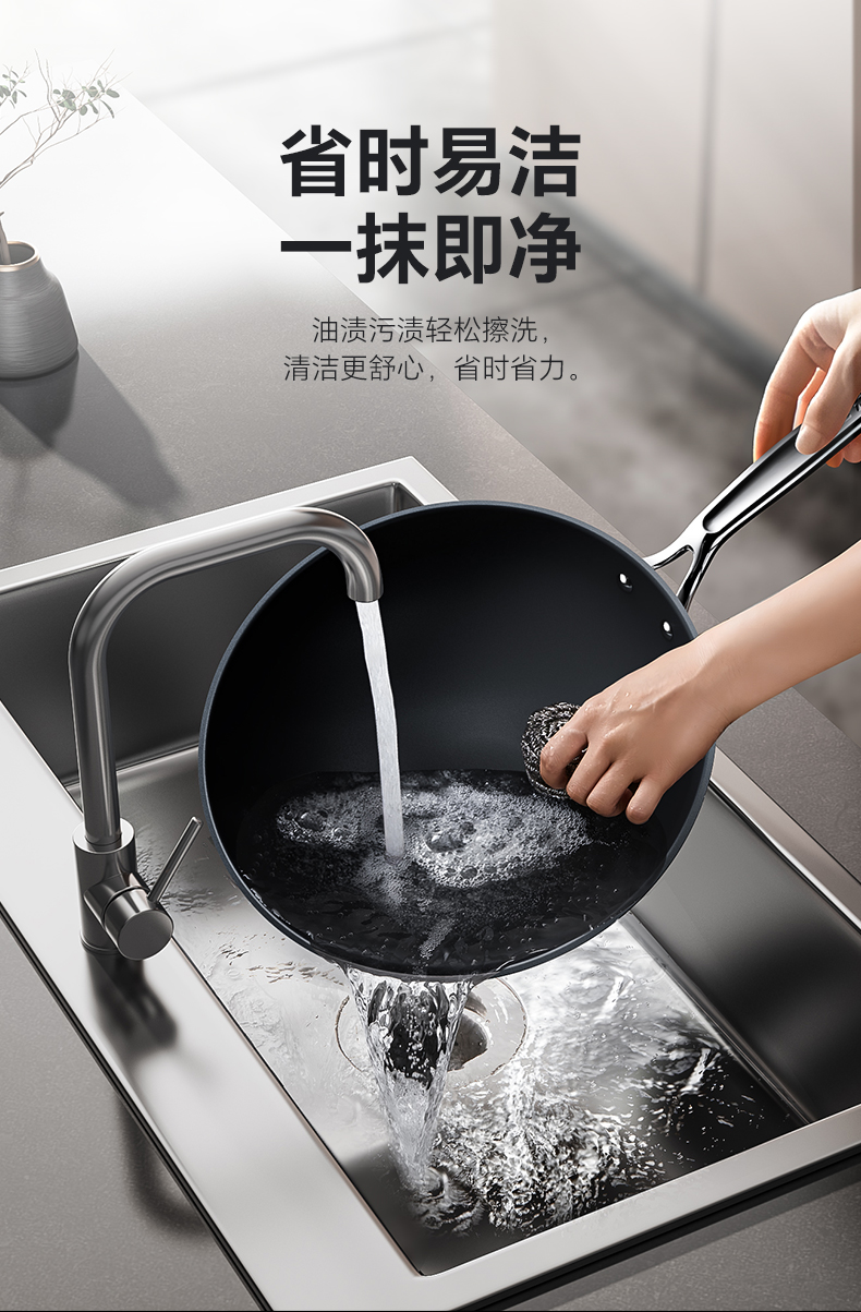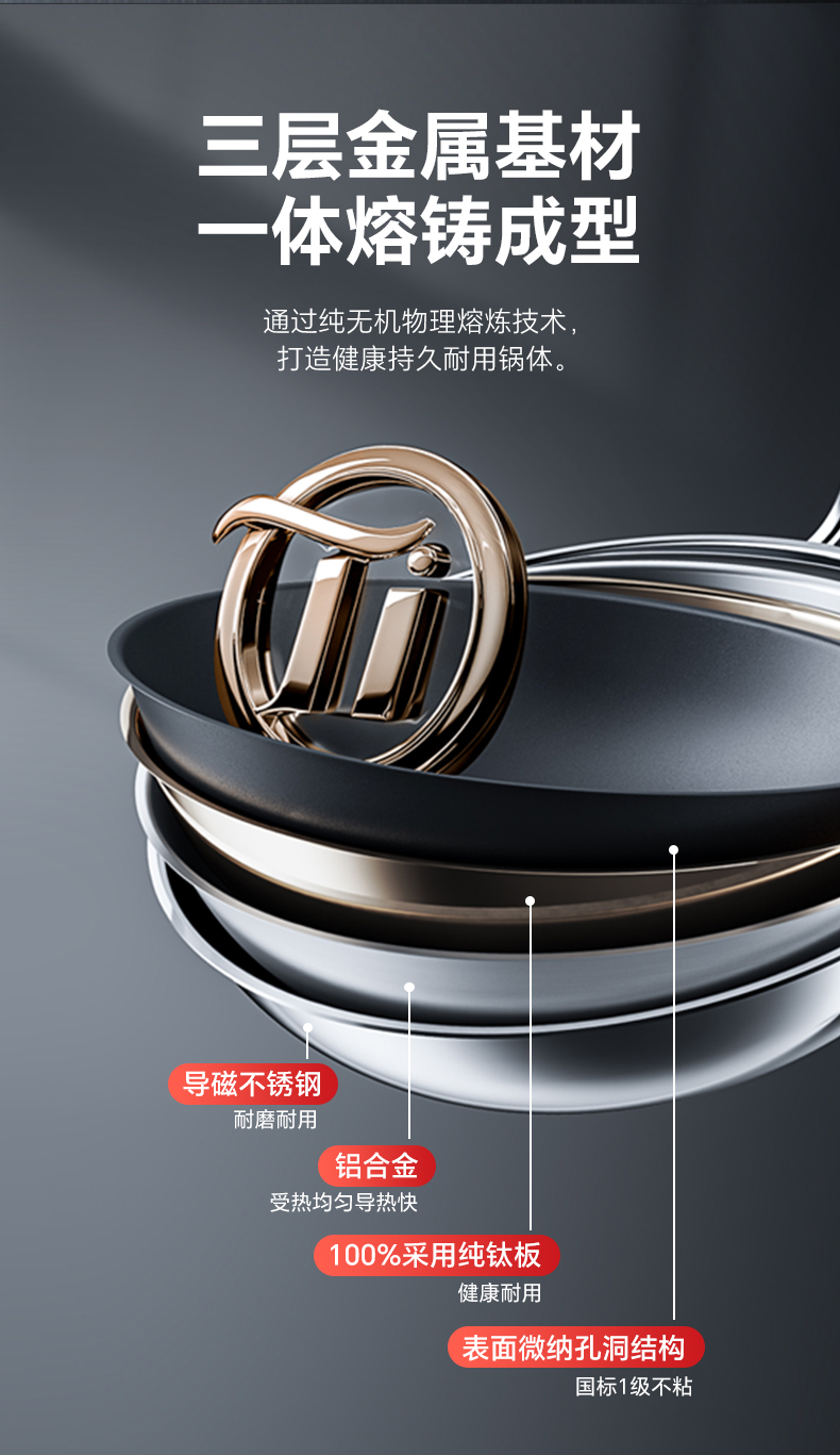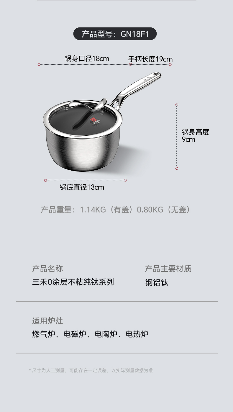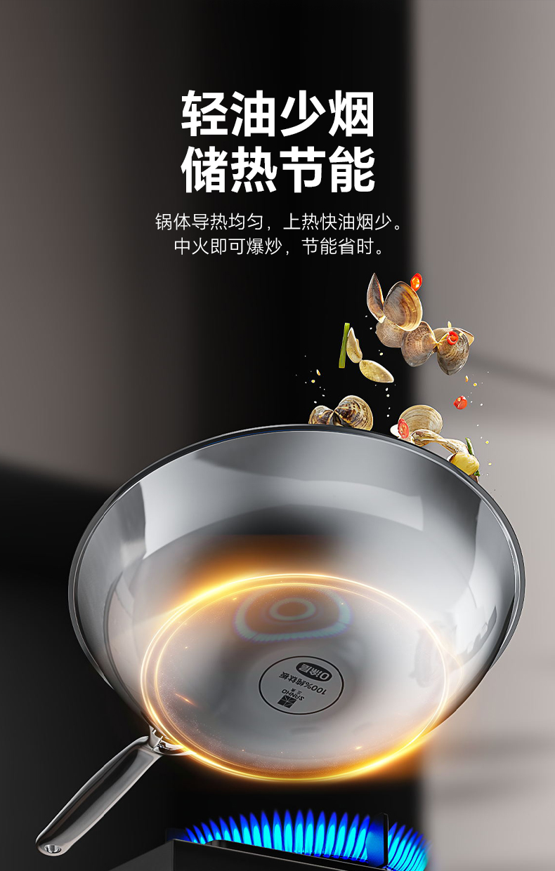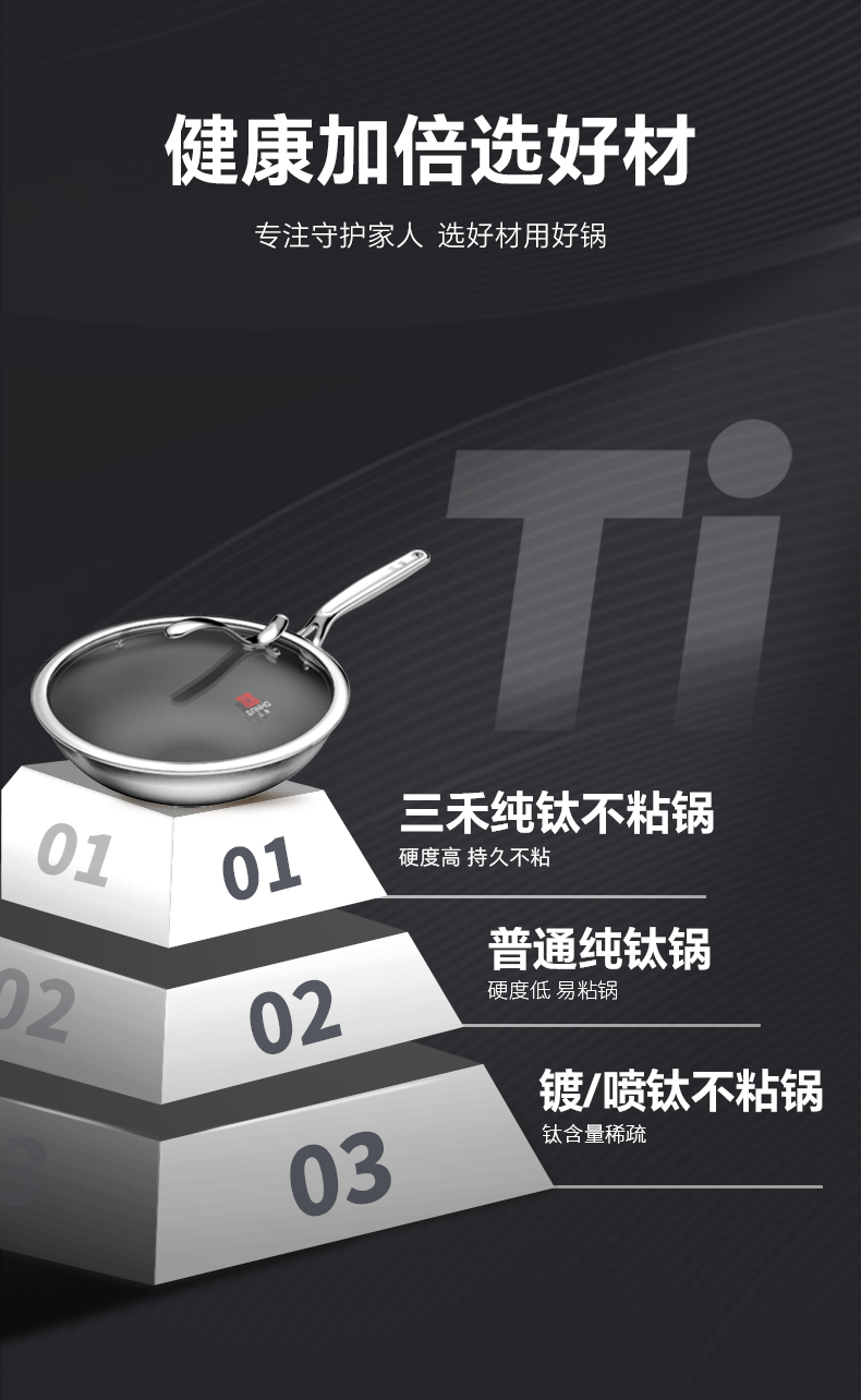 【三禾合集】三禾0涂层钛钢不粘炒锅家用无涂层电磁炉燃气灶通用不锈钢炒菜锅 不粘奶锅 纯钛筷子
