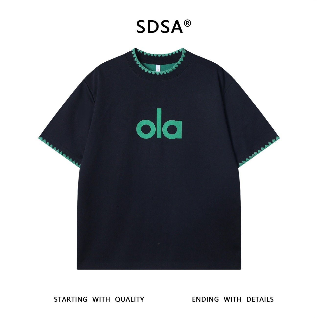 T3271夏季高级感新款潮牌撞色缝线印花字母短袖T恤小众设计百搭上衣
