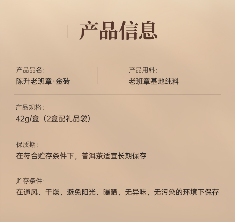 陈升号 2023年陈升老班章金砖42g(生茶)