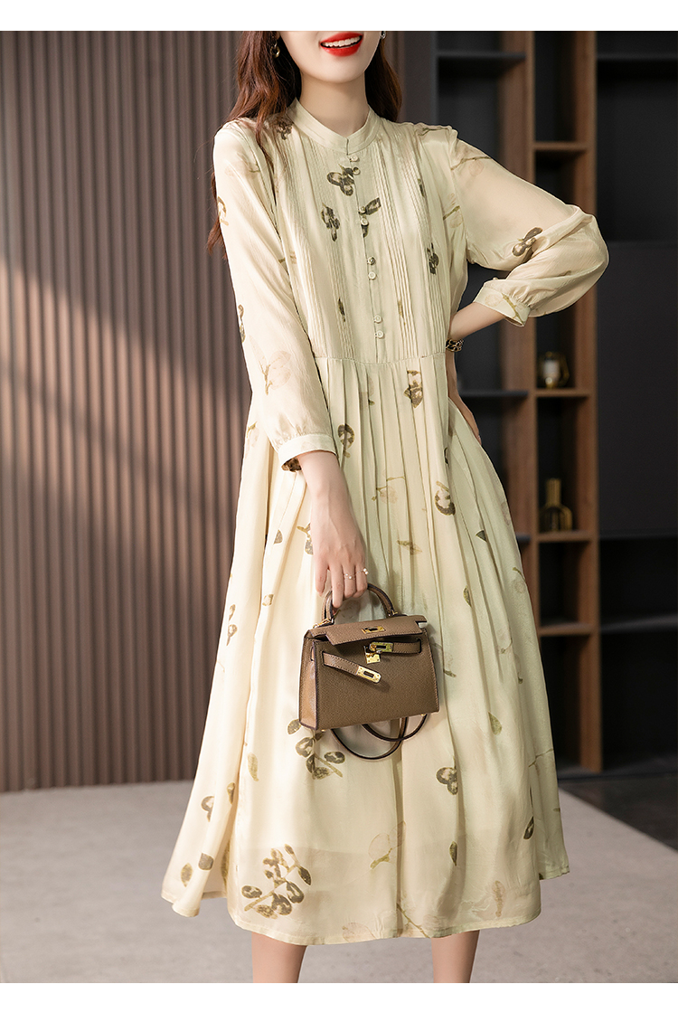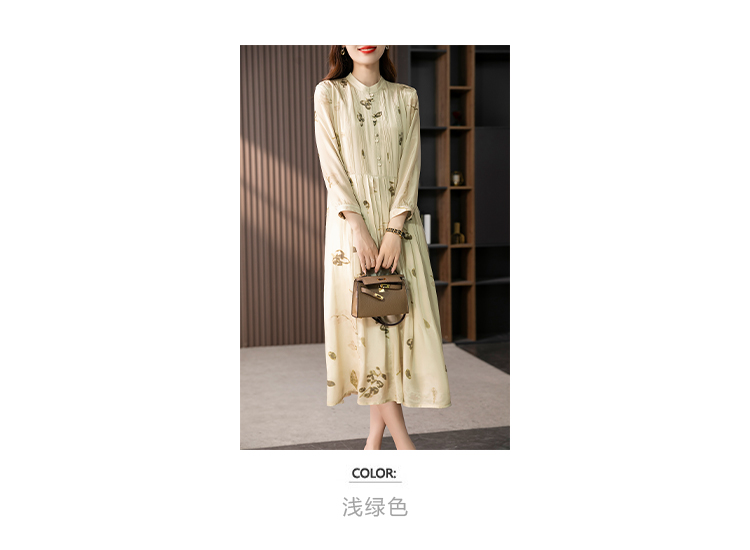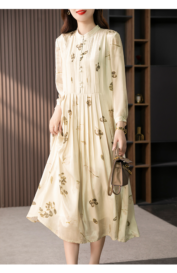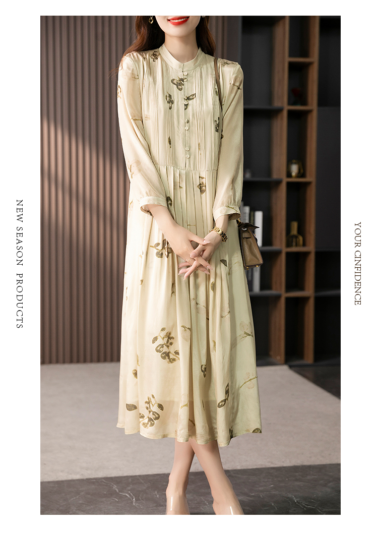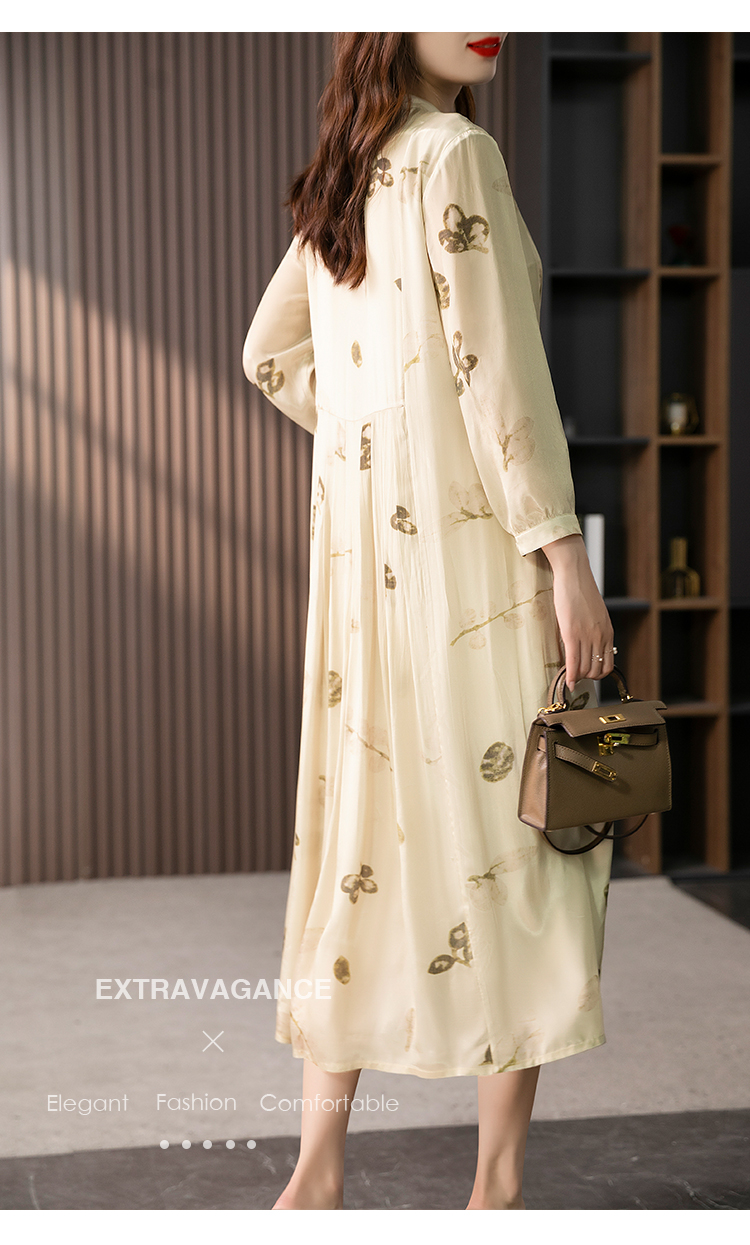 89267原形气质印花长袖连衣裙女显瘦茶歇裙2023夏季新款法式衬衫长裙子