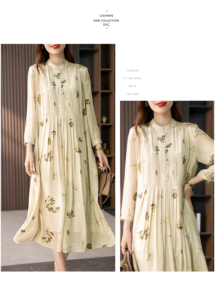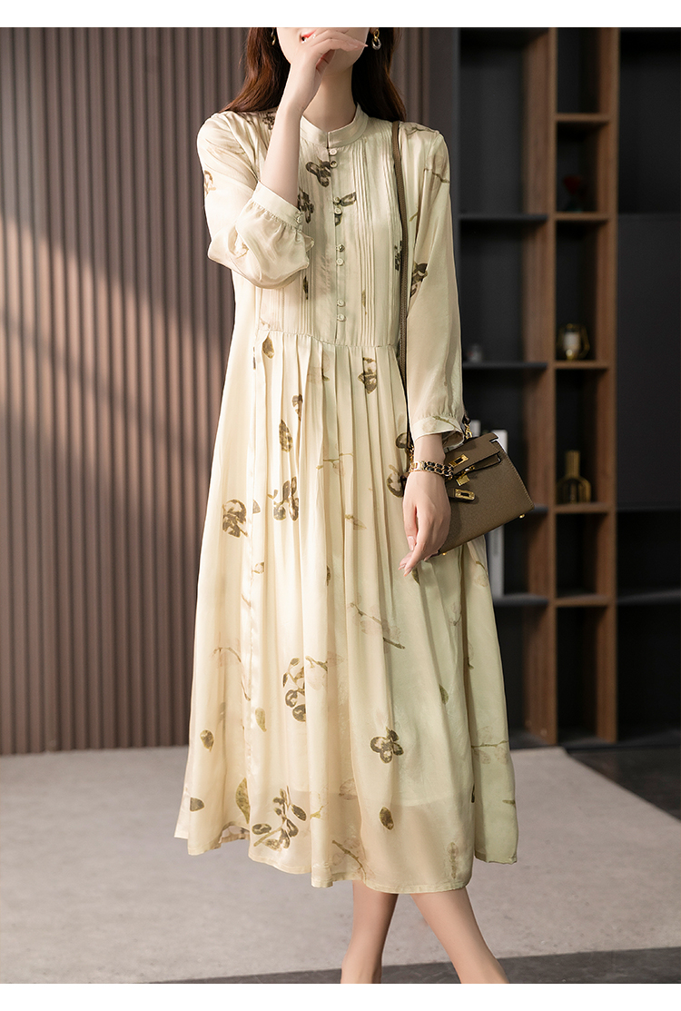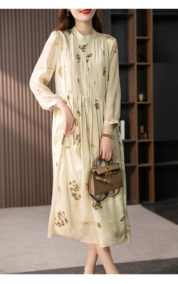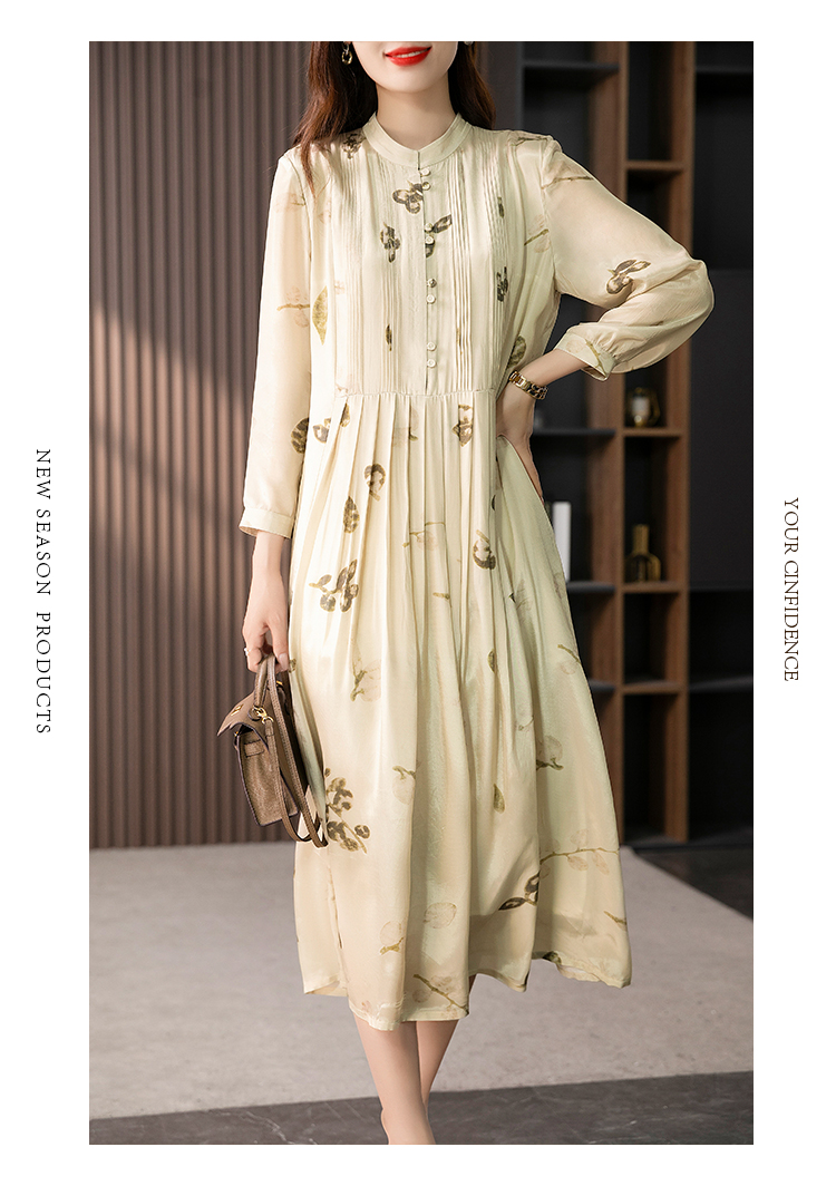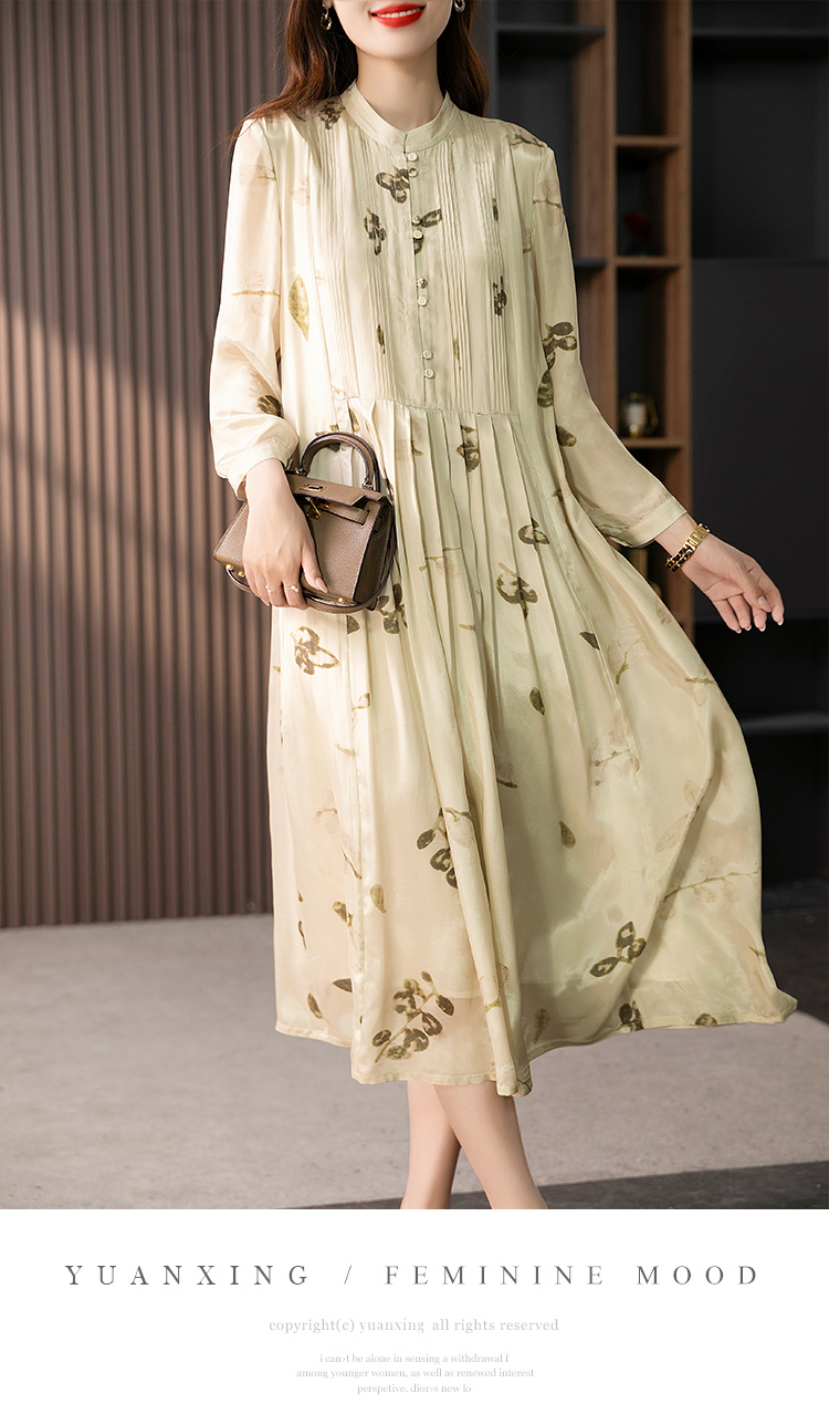 89267原形气质印花长袖连衣裙女显瘦茶歇裙2023夏季新款法式衬衫长裙子