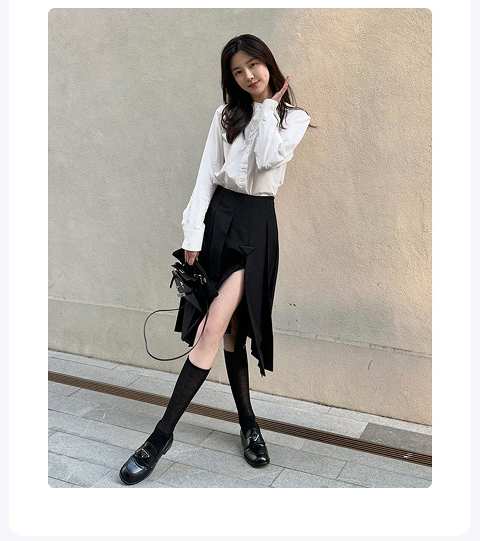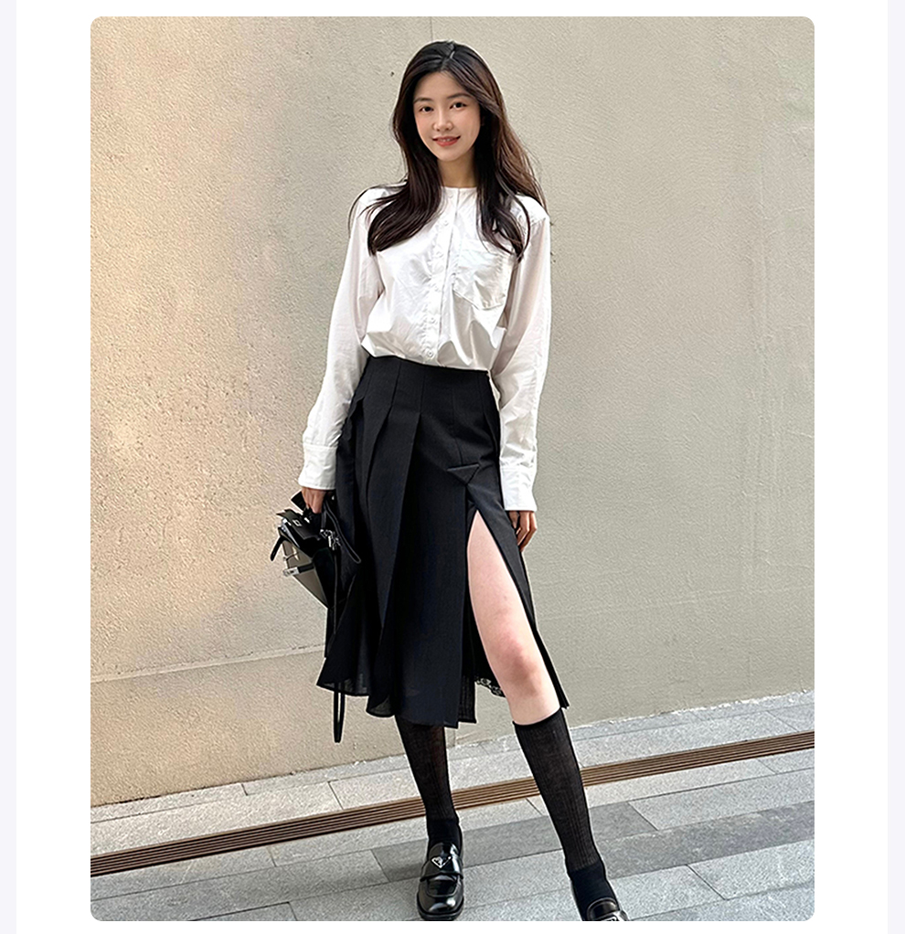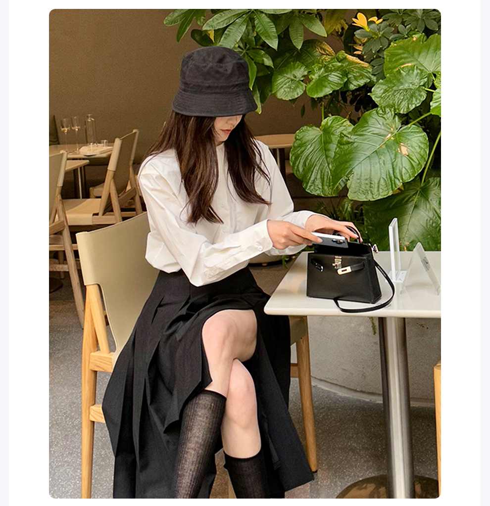 ROMI STUDIO【高定系列】百搭经典休闲气质简约圆领纯色衬衫 T3219