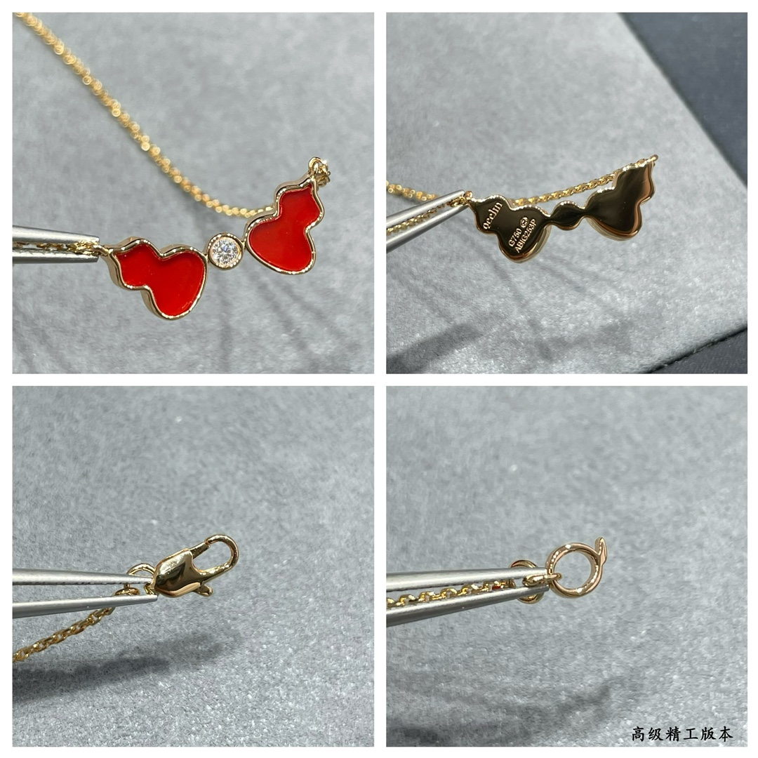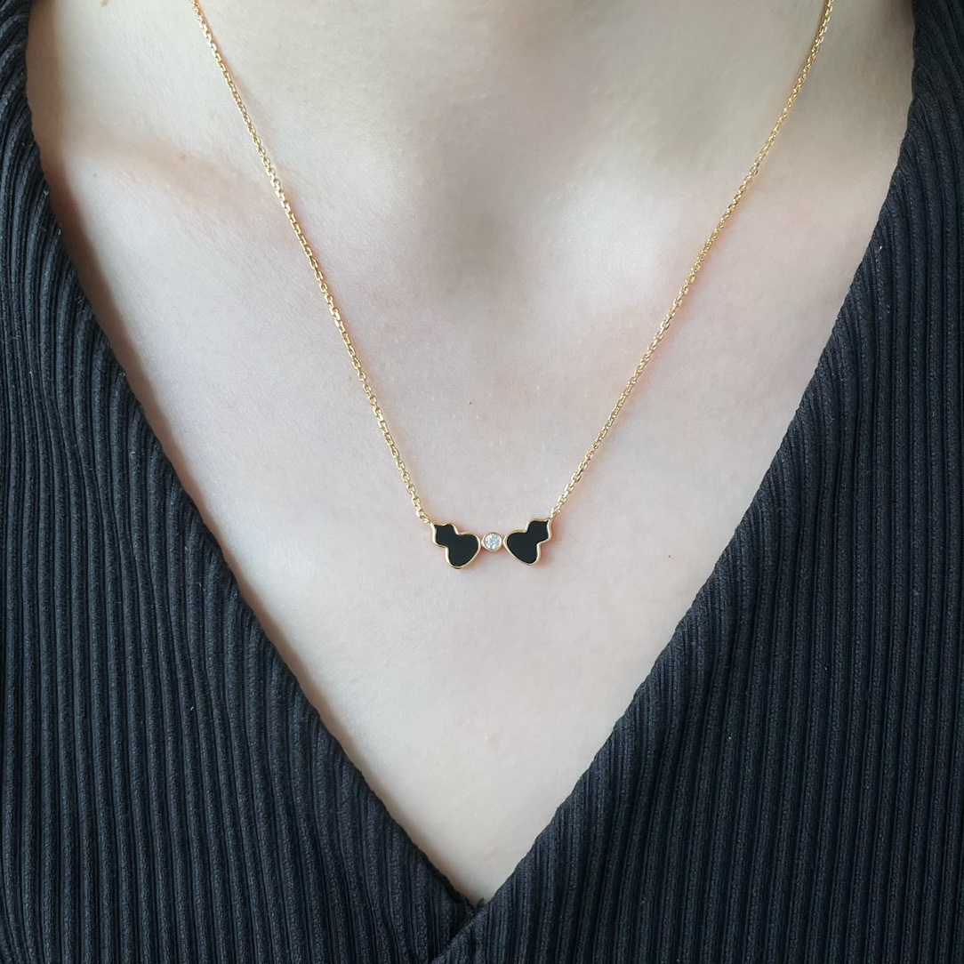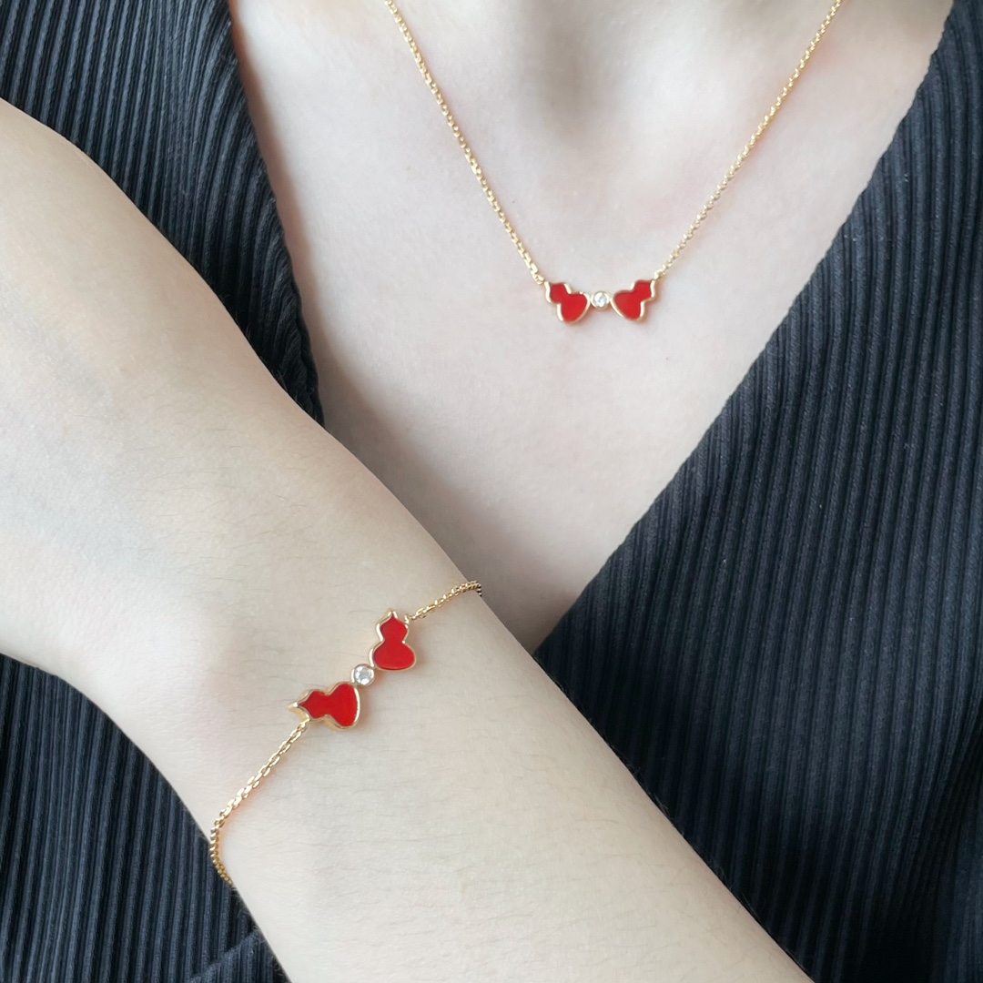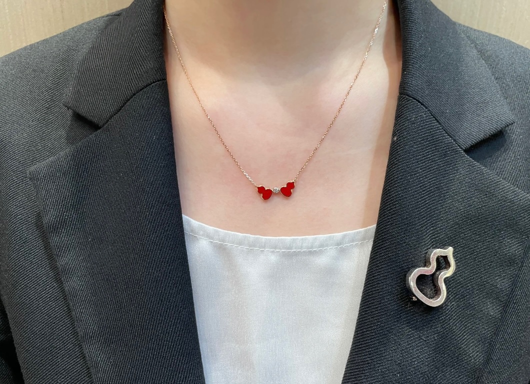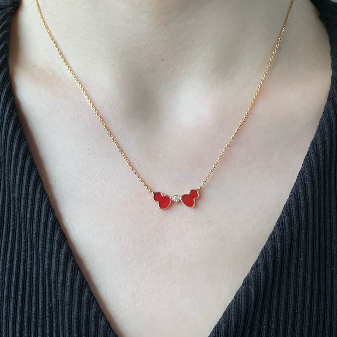 麒麟Qeelin x 黎贝卡 V金材质 红玛瑙双葫芦项链,简约的线条刻画Wulu优美的形态(XTY)