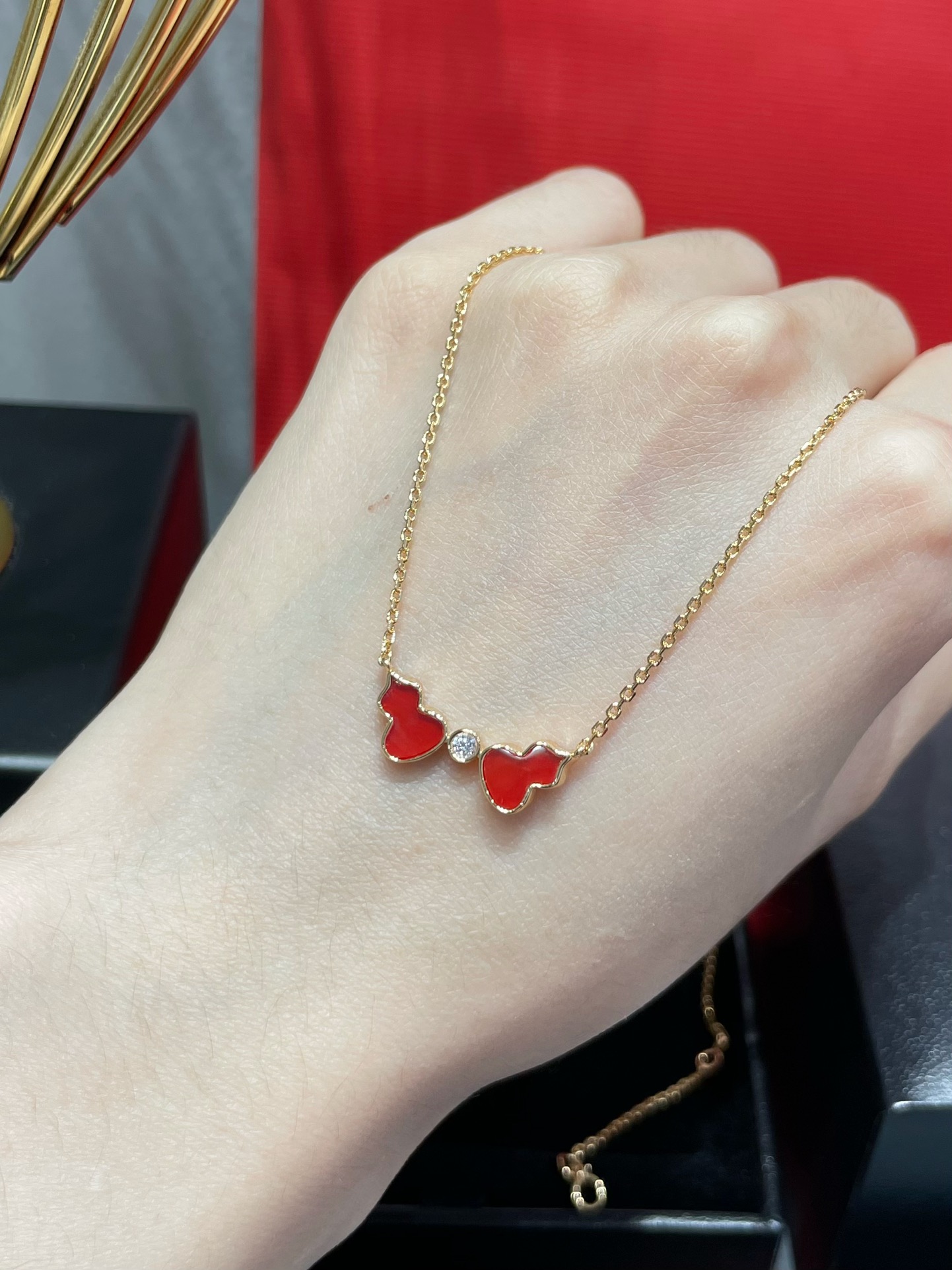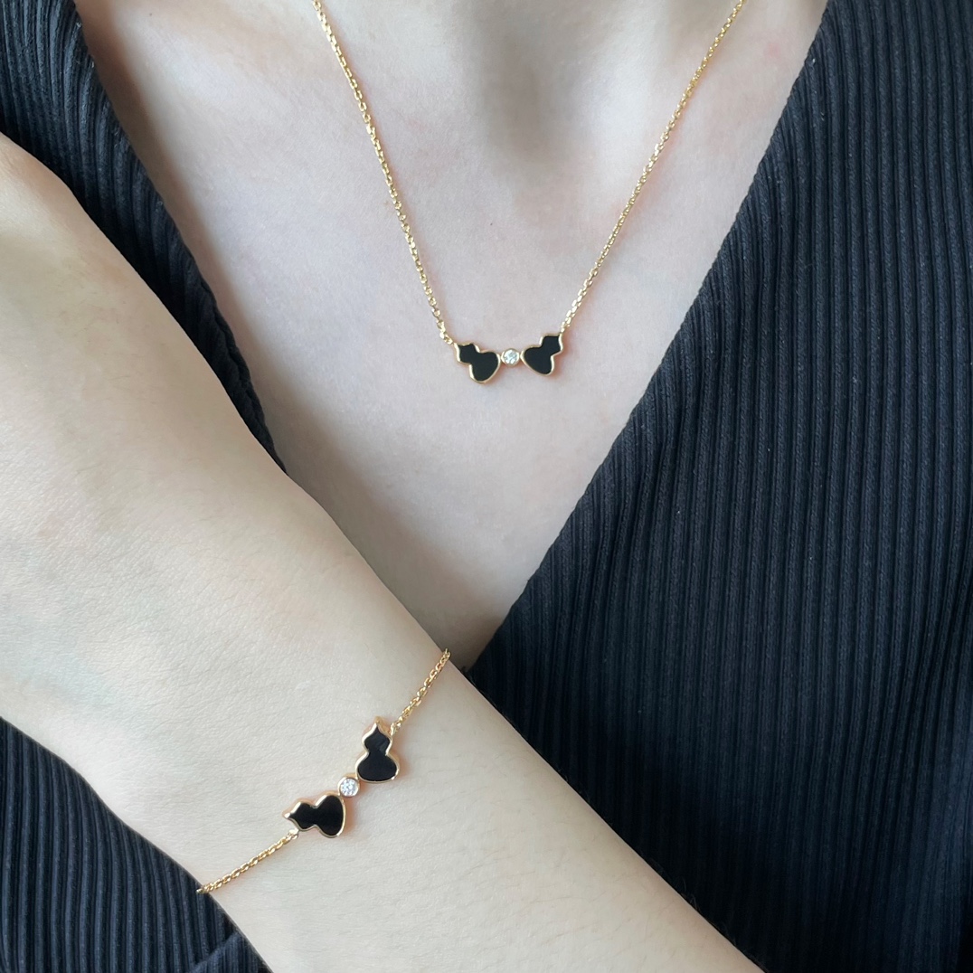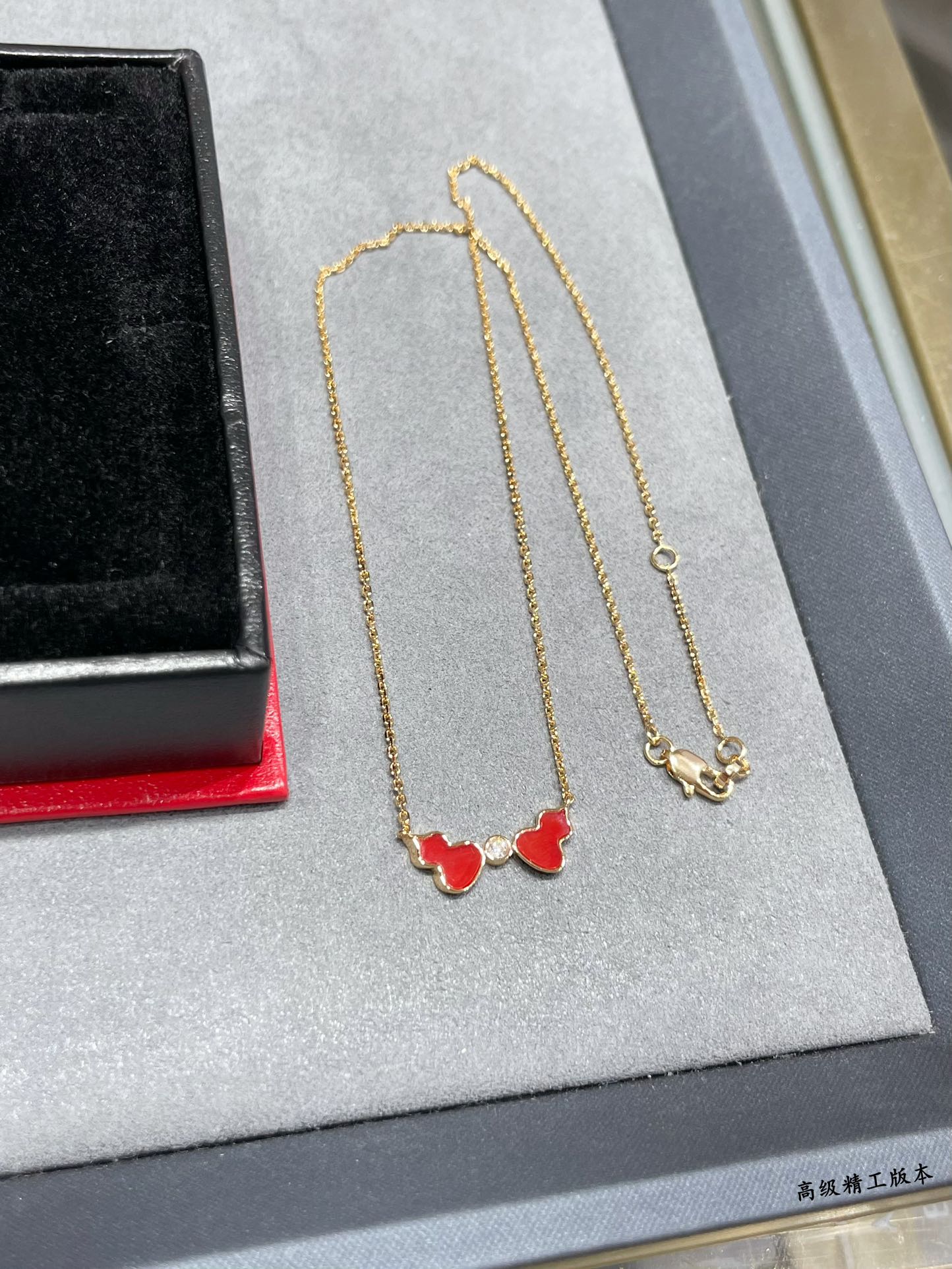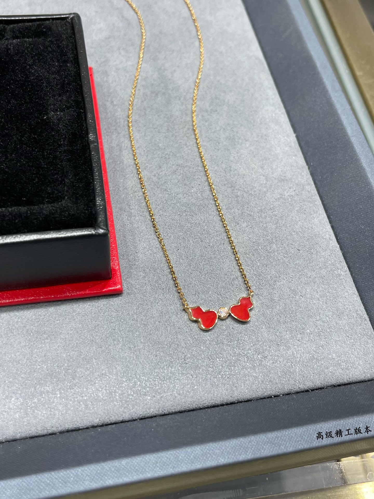 麒麟Qeelin x 黎贝卡 V金材质 红玛瑙双葫芦项链,简约的线条刻画Wulu优美的形态(XTY)