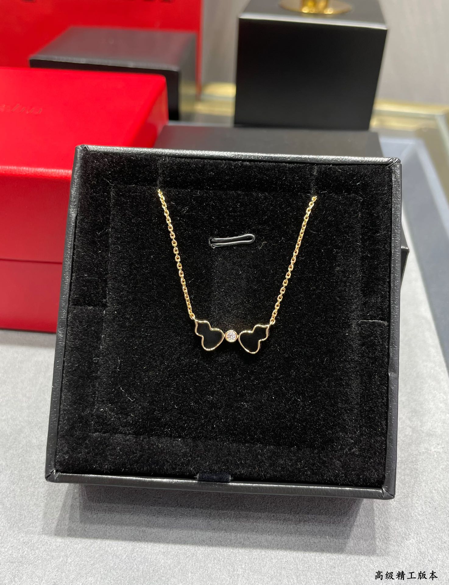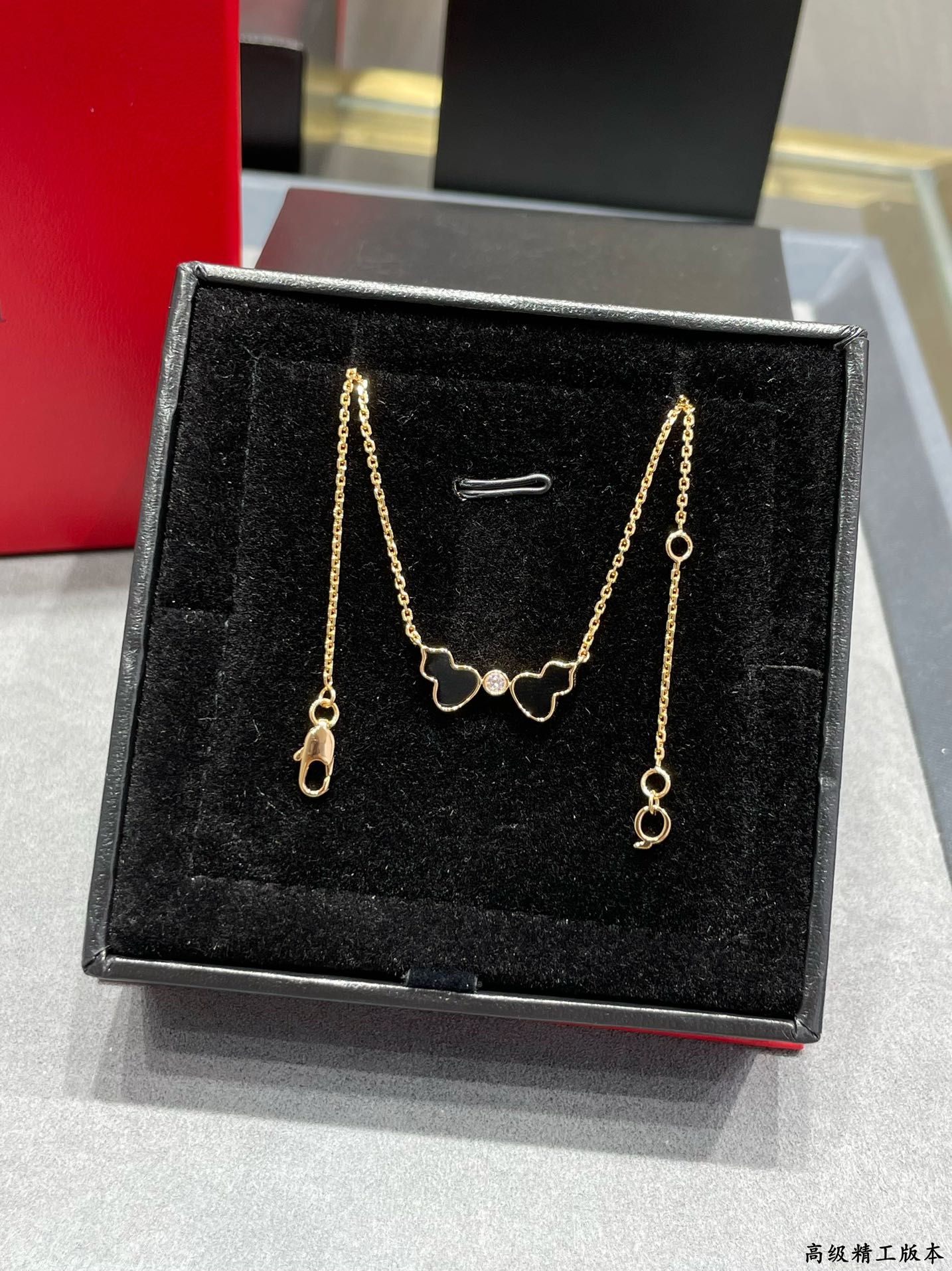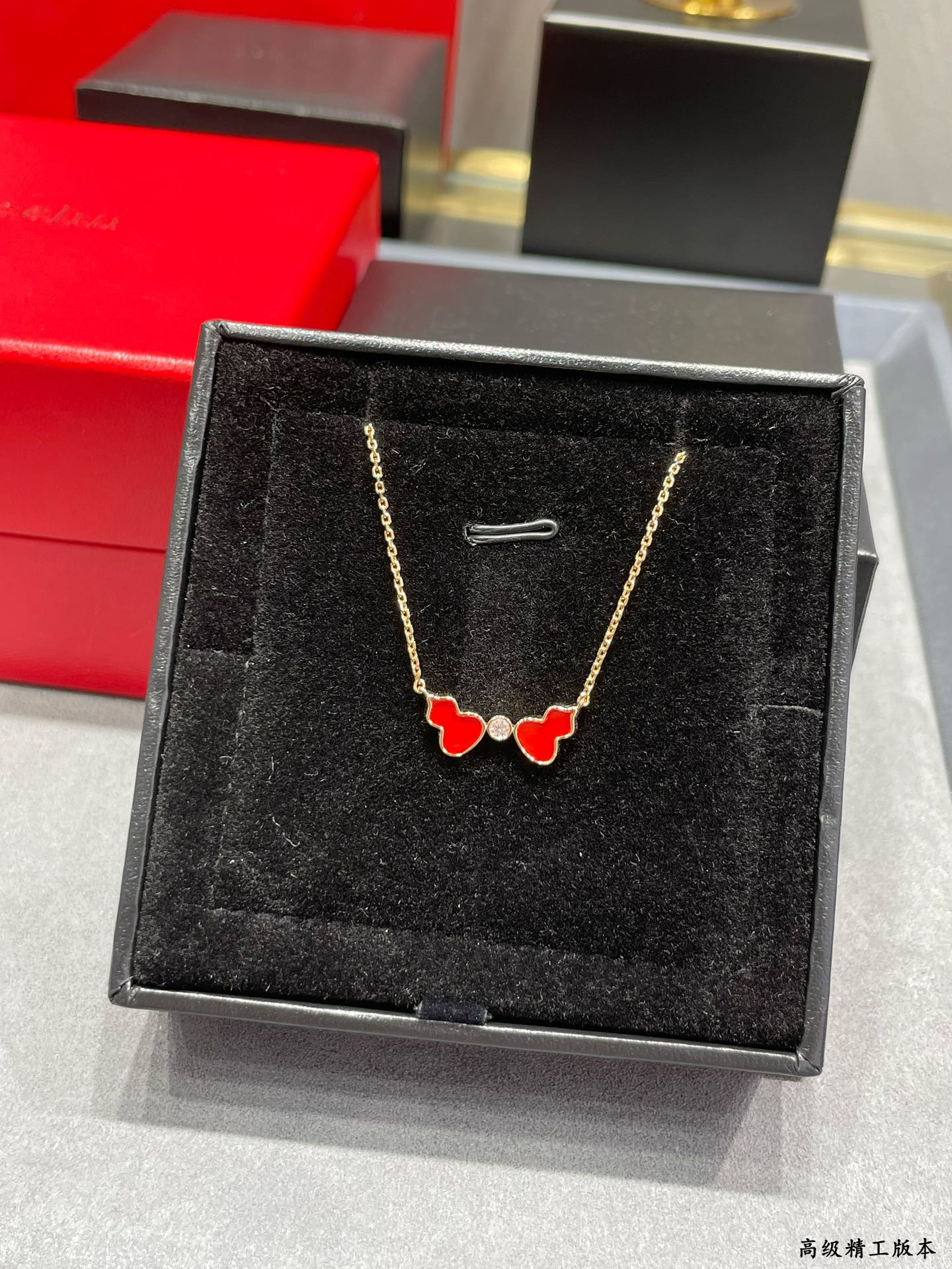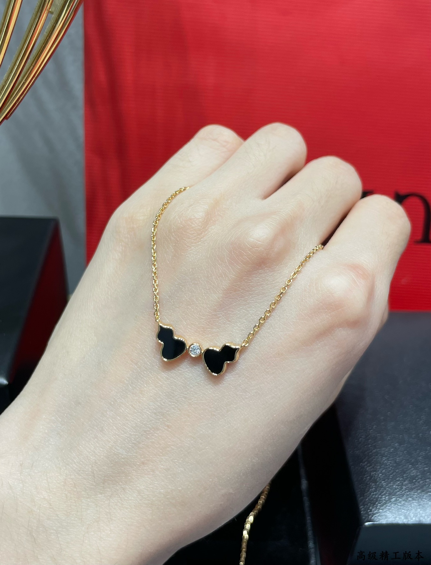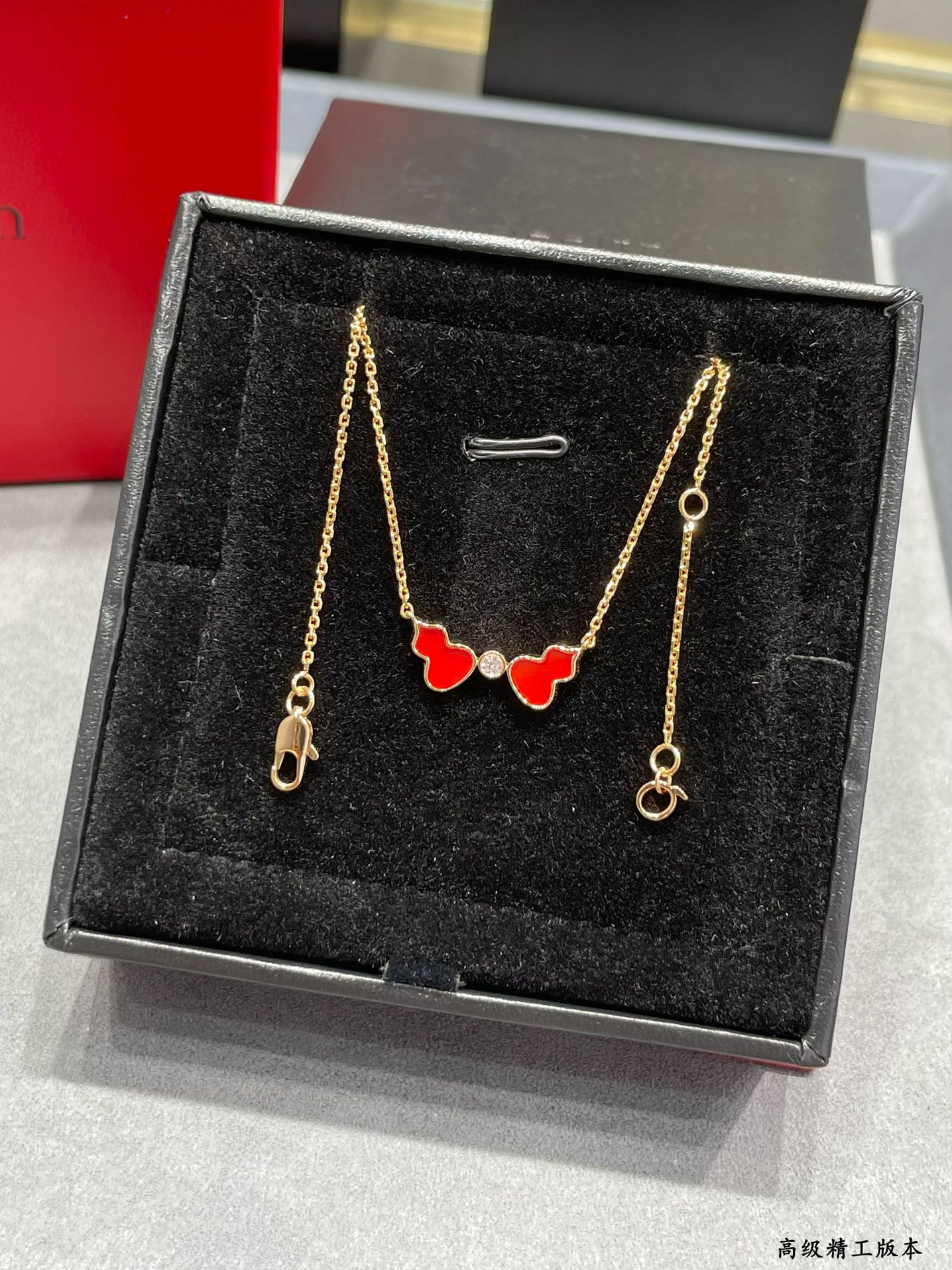 麒麟Qeelin x 黎贝卡 V金材质 红玛瑙双葫芦项链,简约的线条刻画Wulu优美的形态(XTY)