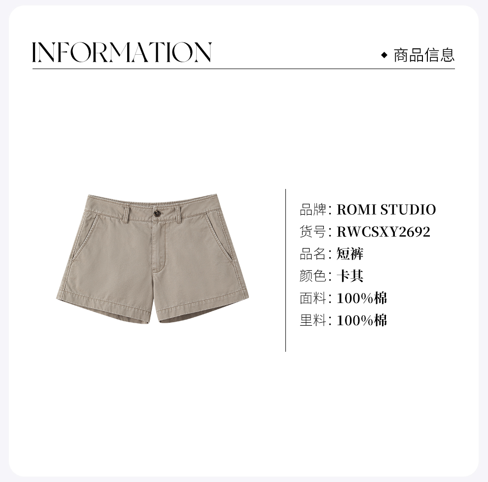 ROMI STUDIO“美式复古”舒适纯棉做旧洗水斜纹休闲短裤 RWCSXY2692【发货时间:25-30天】