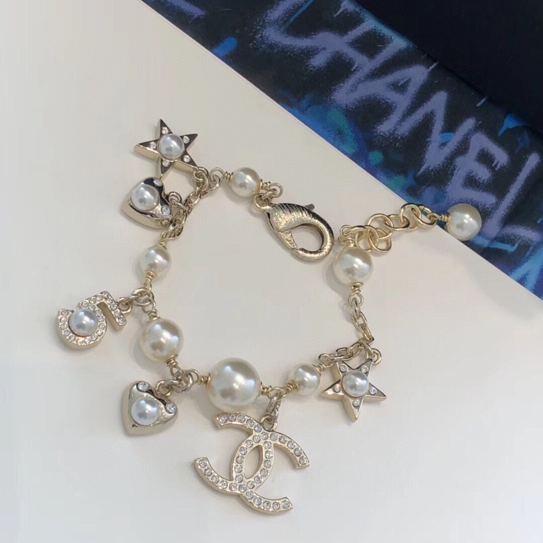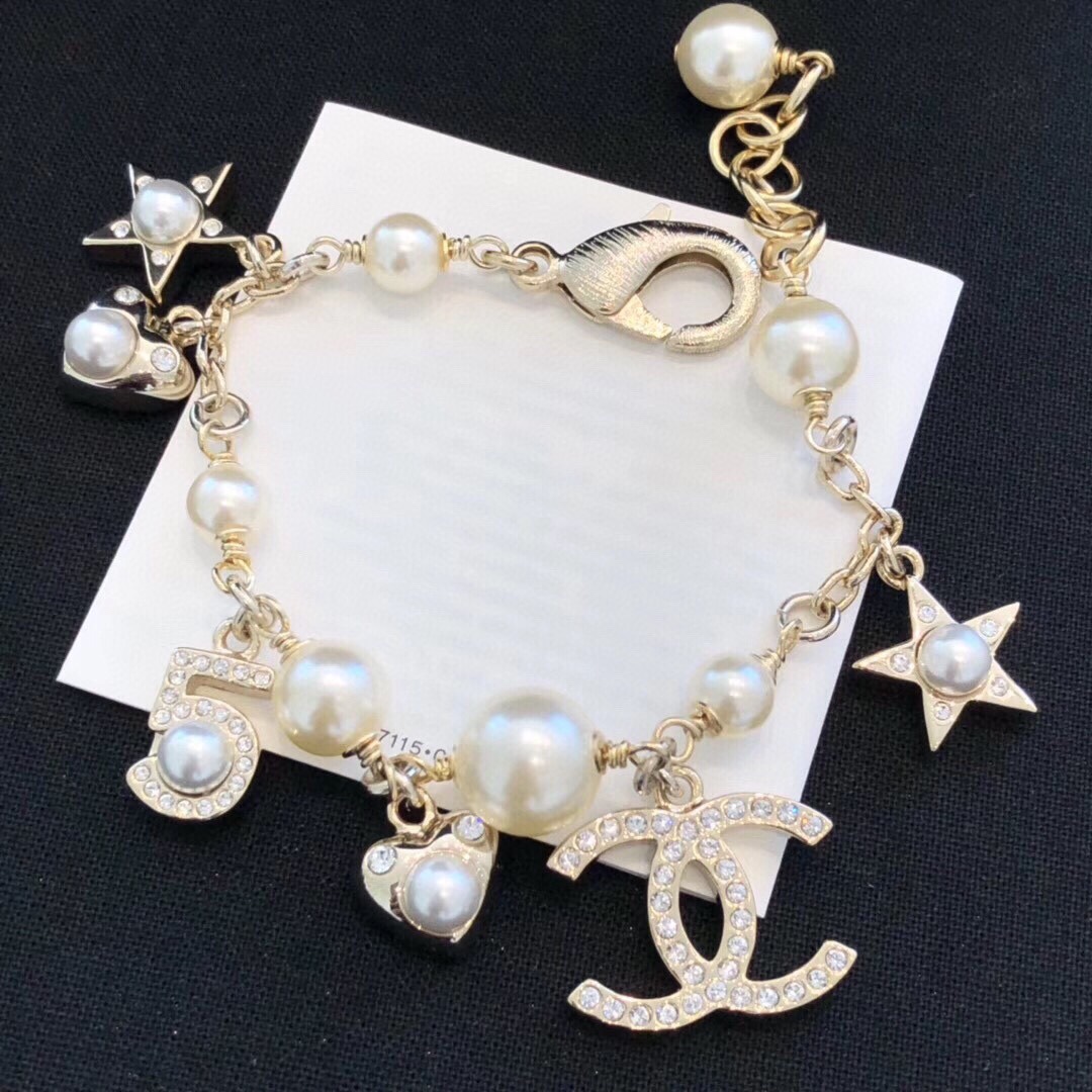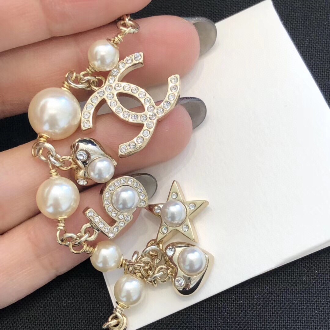 超美超仙的多元素手链,集合了logo,星星,5字,爱心的元素,还有施H洛珍珠跟水晶的点缀,真心可以说美翻了又很有活力的一款手链,五金细节做工,堪称极品,喜欢的千万别错过。