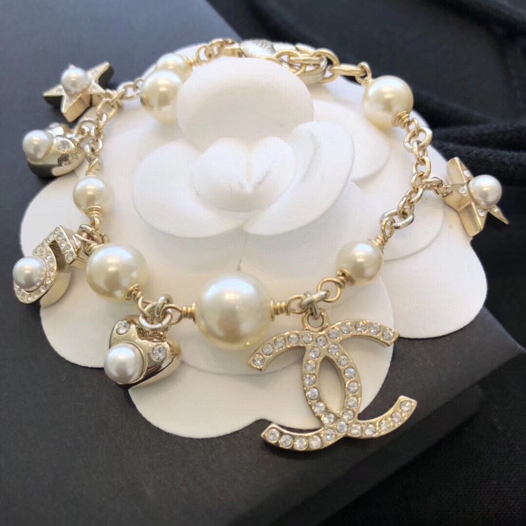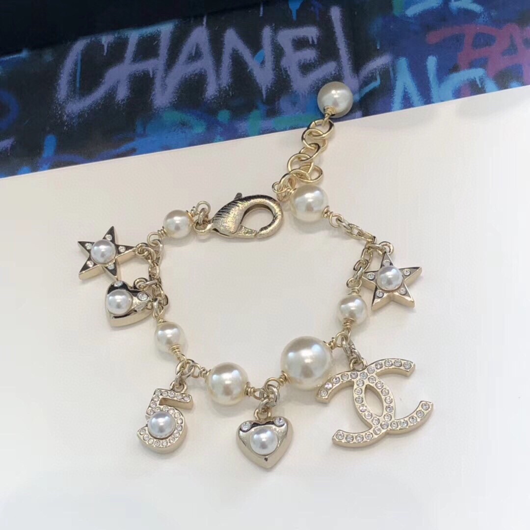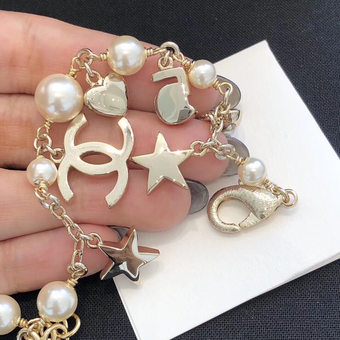 超美超仙的多元素手链,集合了logo,星星,5字,爱心的元素,还有施H洛珍珠跟水晶的点缀,真心可以说美翻了又很有活力的一款手链,五金细节做工,堪称极品,喜欢的千万别错过。