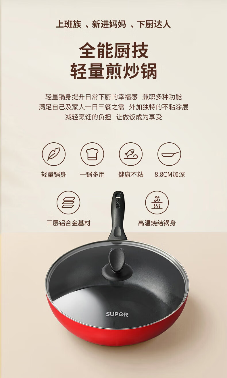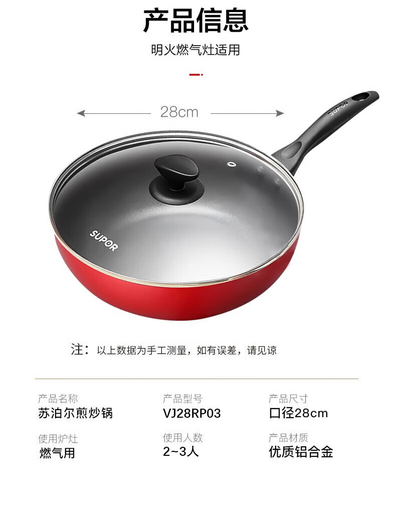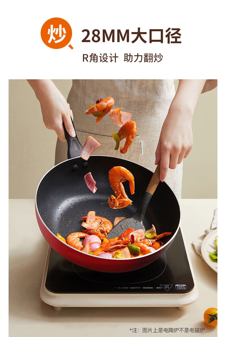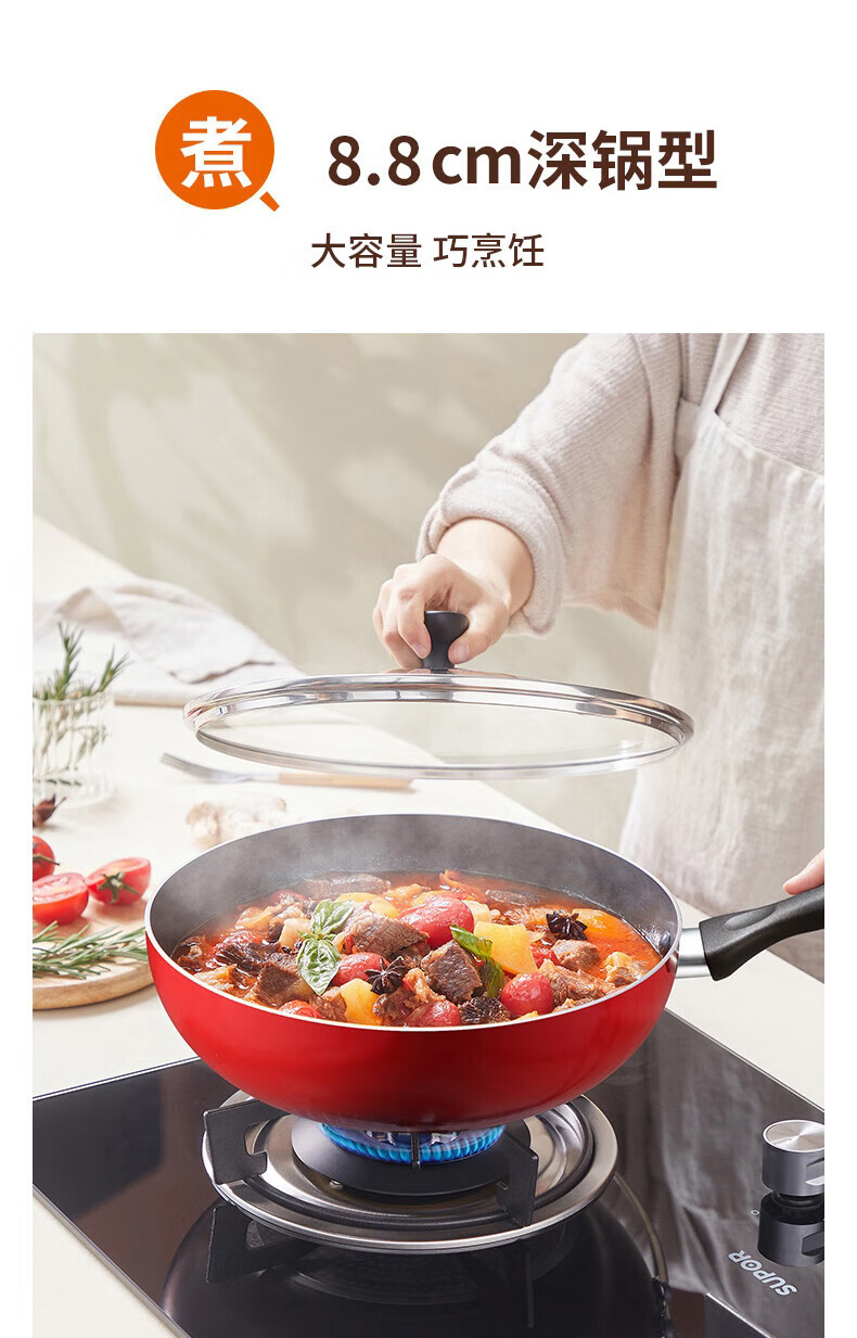 苏泊尔(SUPOR)VJ28RP03 家用炒菜锅炫彩易洁不粘煎炒锅电磁炉燃气通用 28cm