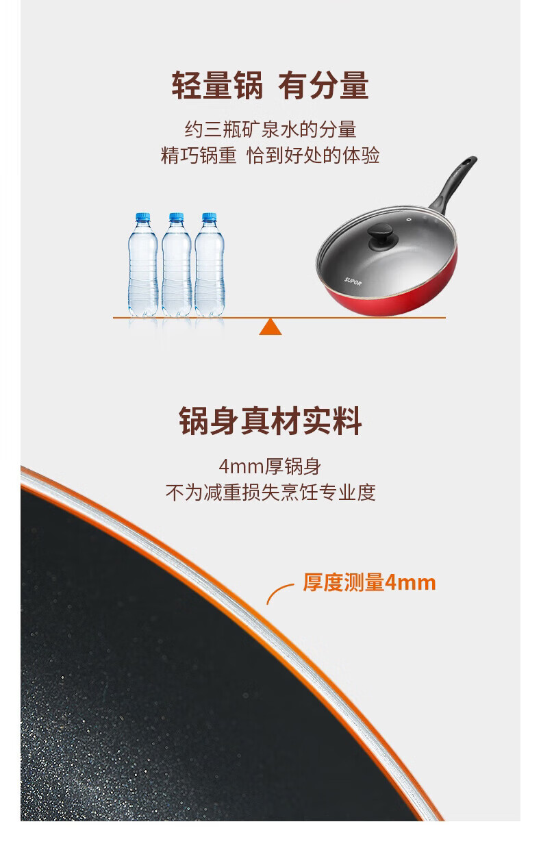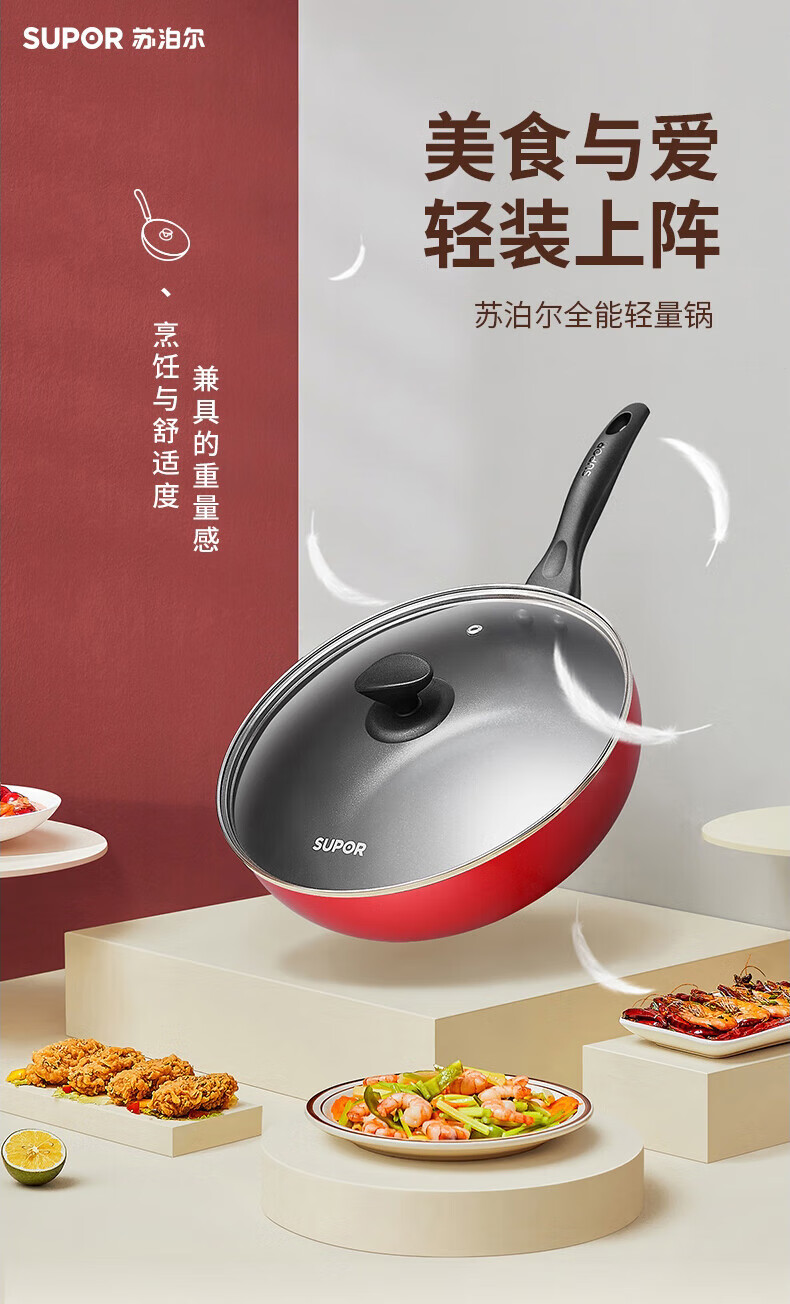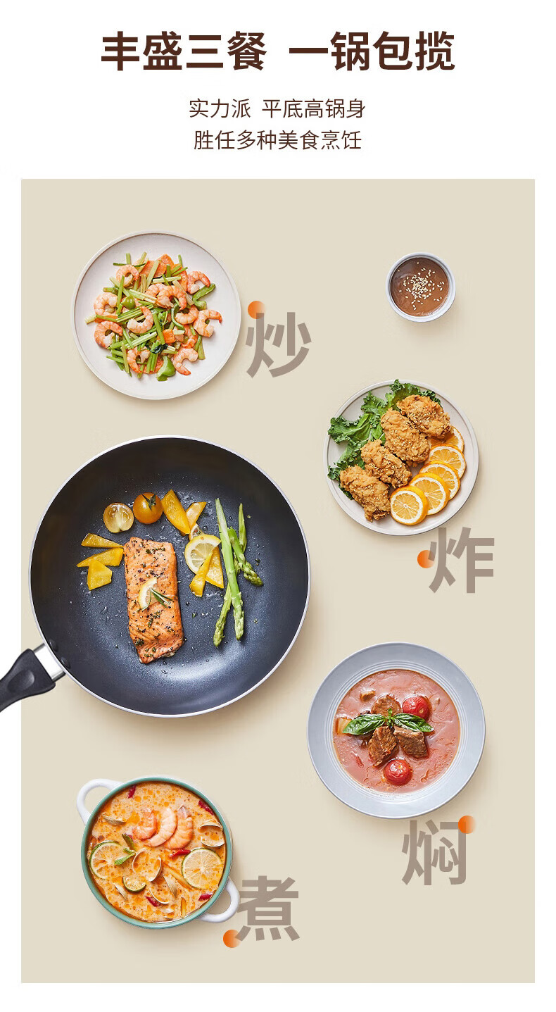 苏泊尔(SUPOR)VJ28RP03 家用炒菜锅炫彩易洁不粘煎炒锅电磁炉燃气通用 28cm