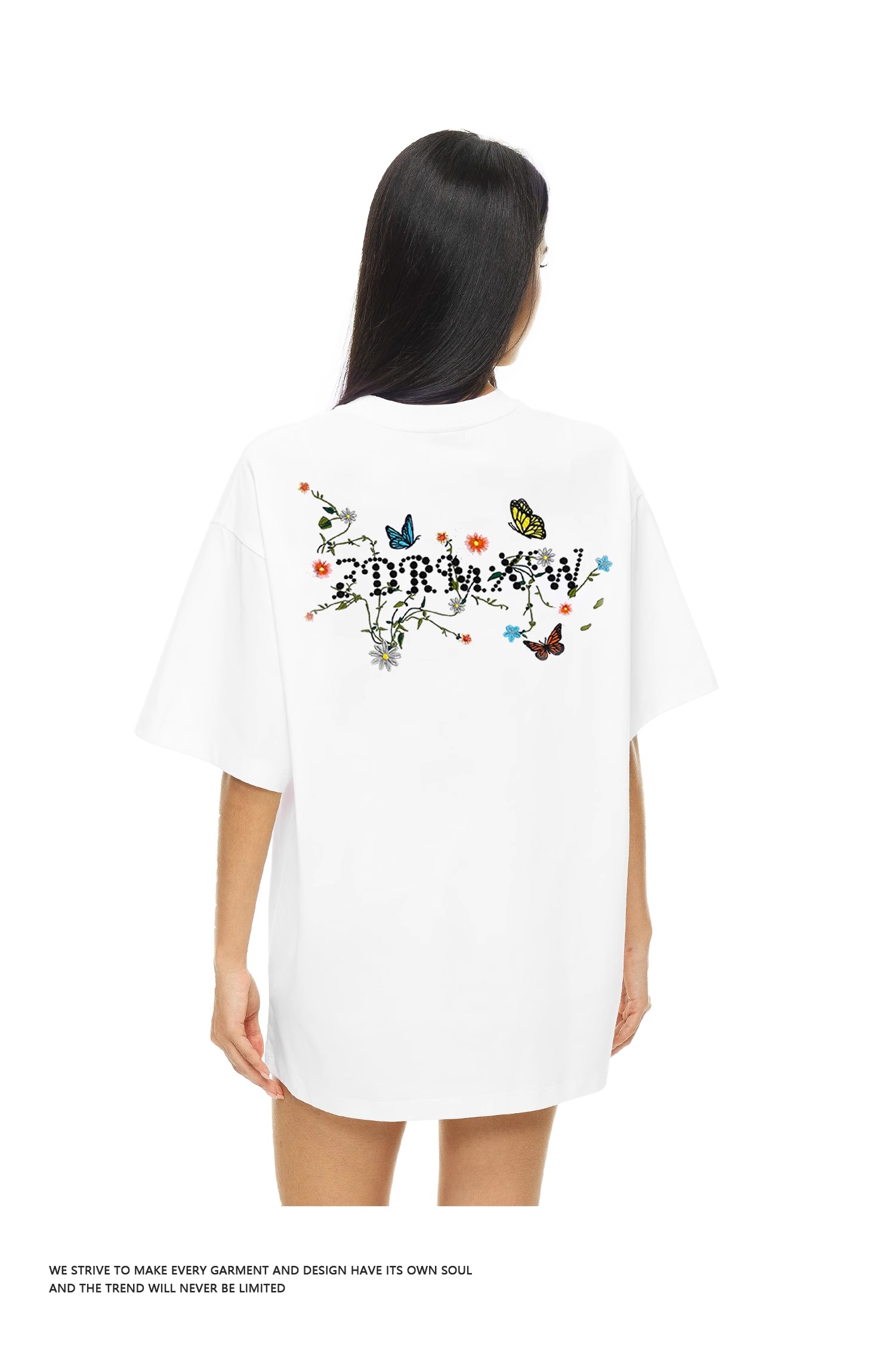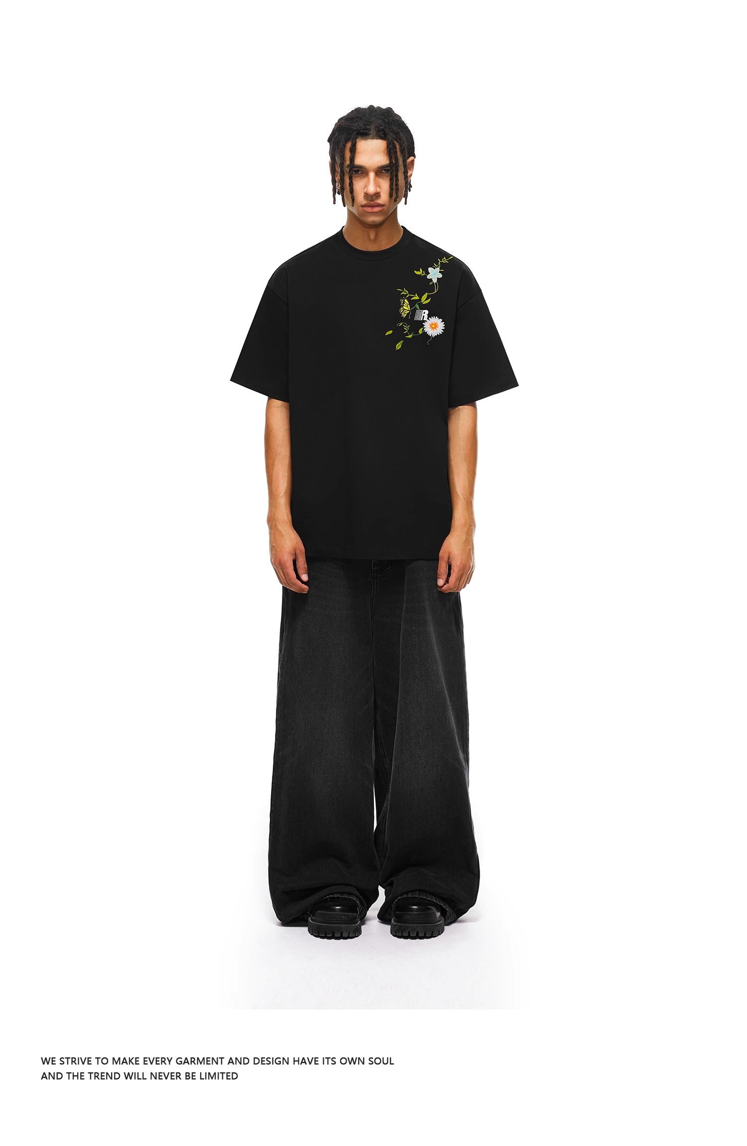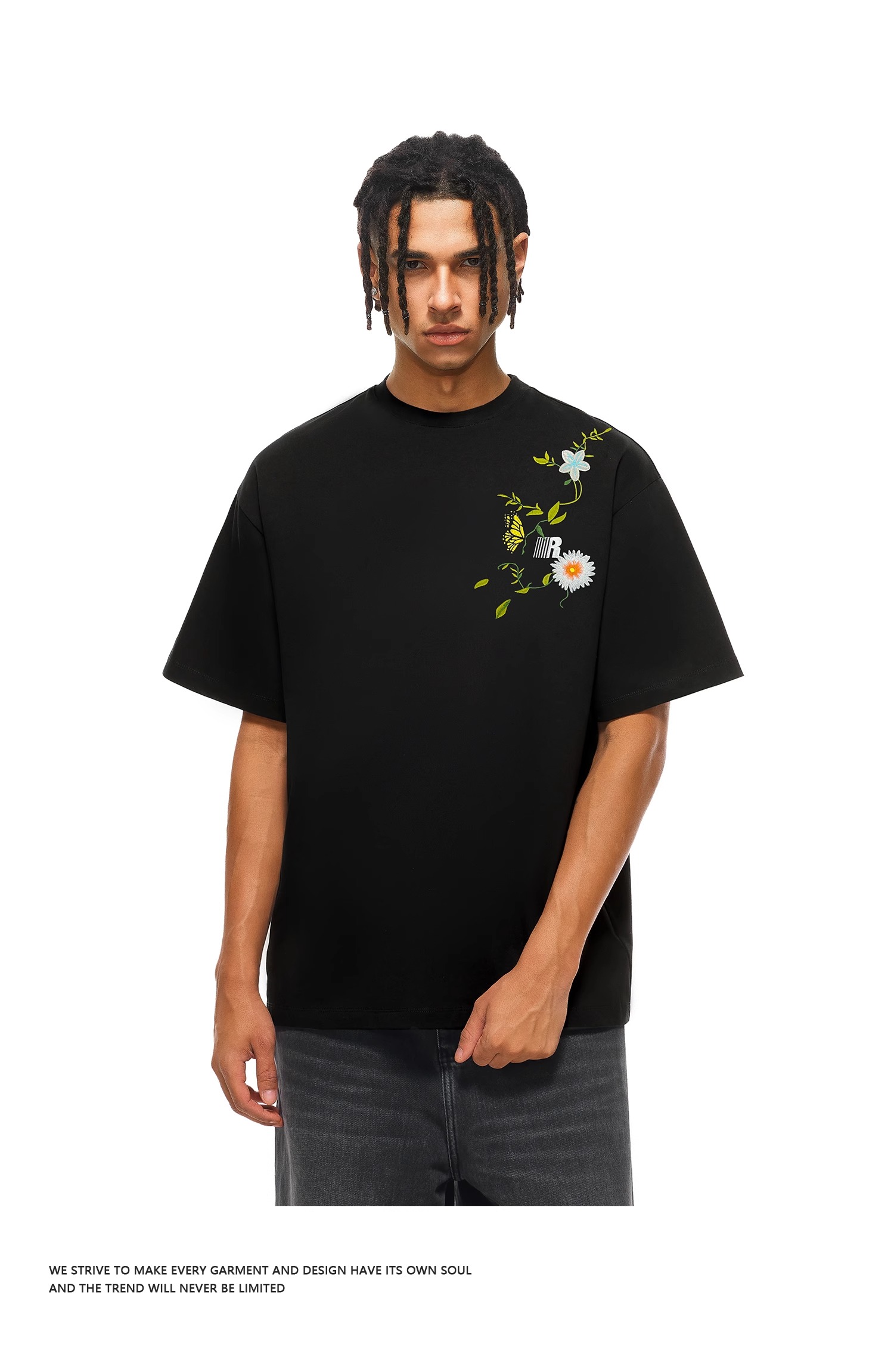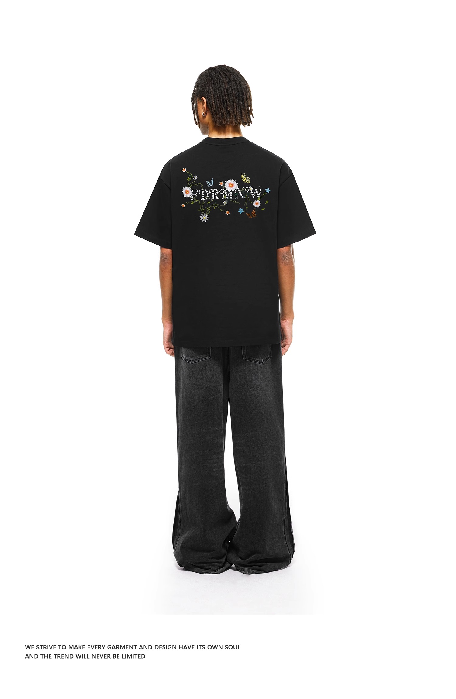 FDR官方店 光变花朵刺绣短袖t恤男女夏季美式潮牌情侣装宽松上衣
