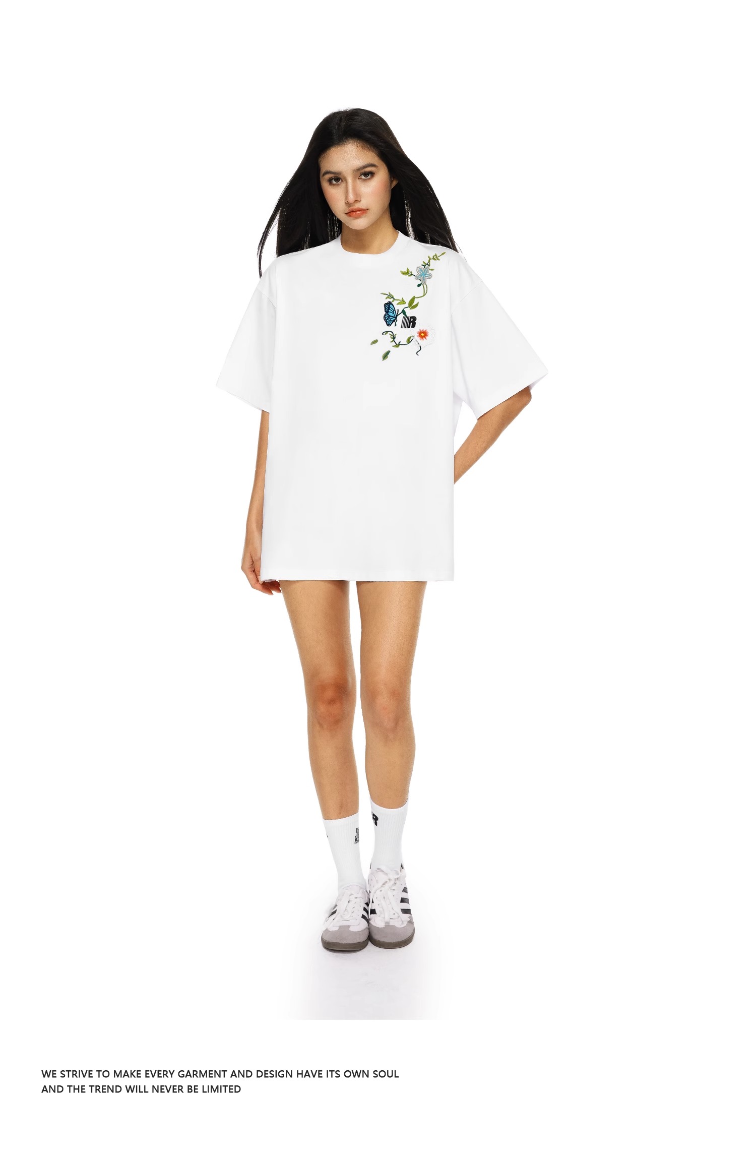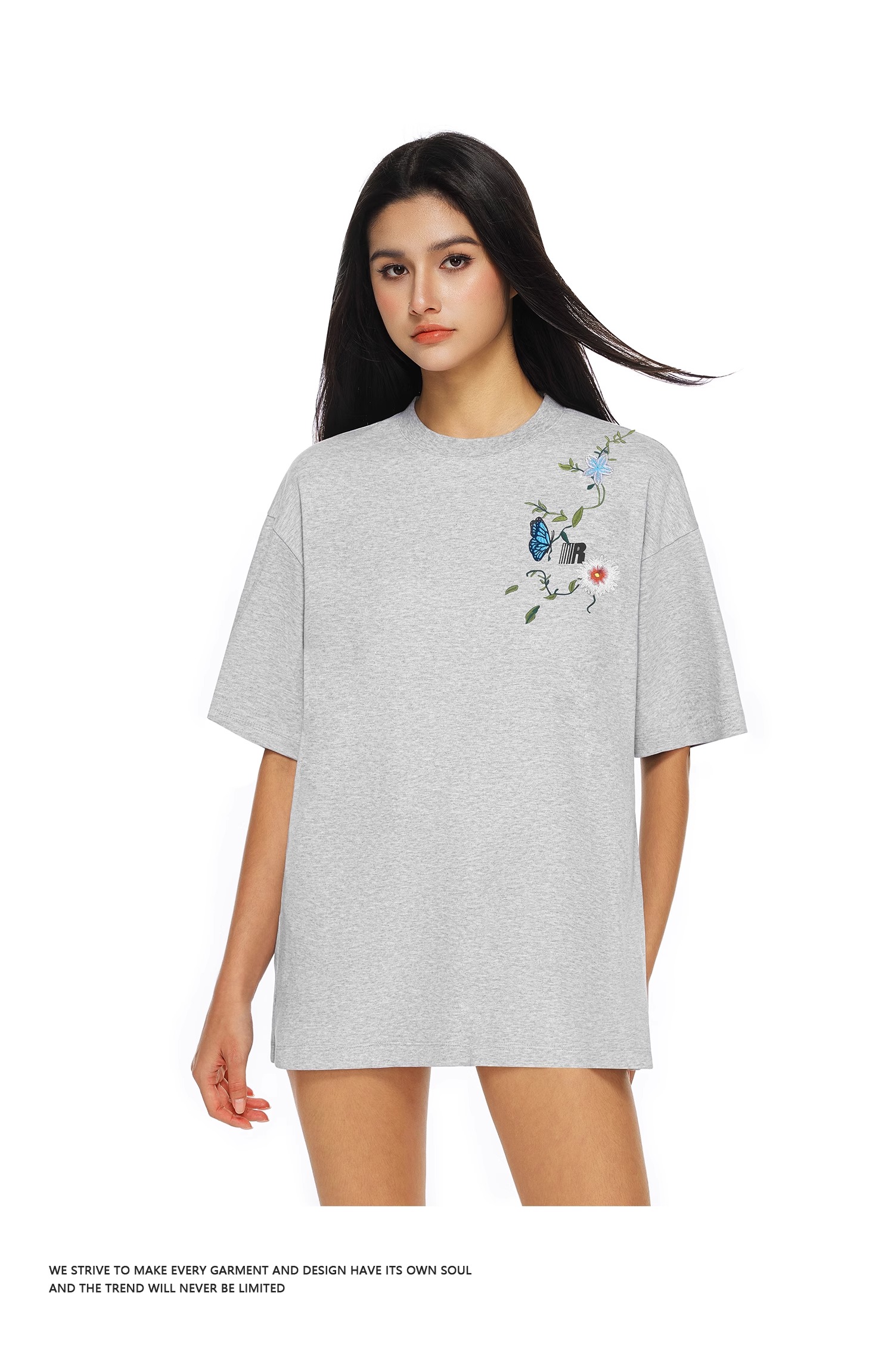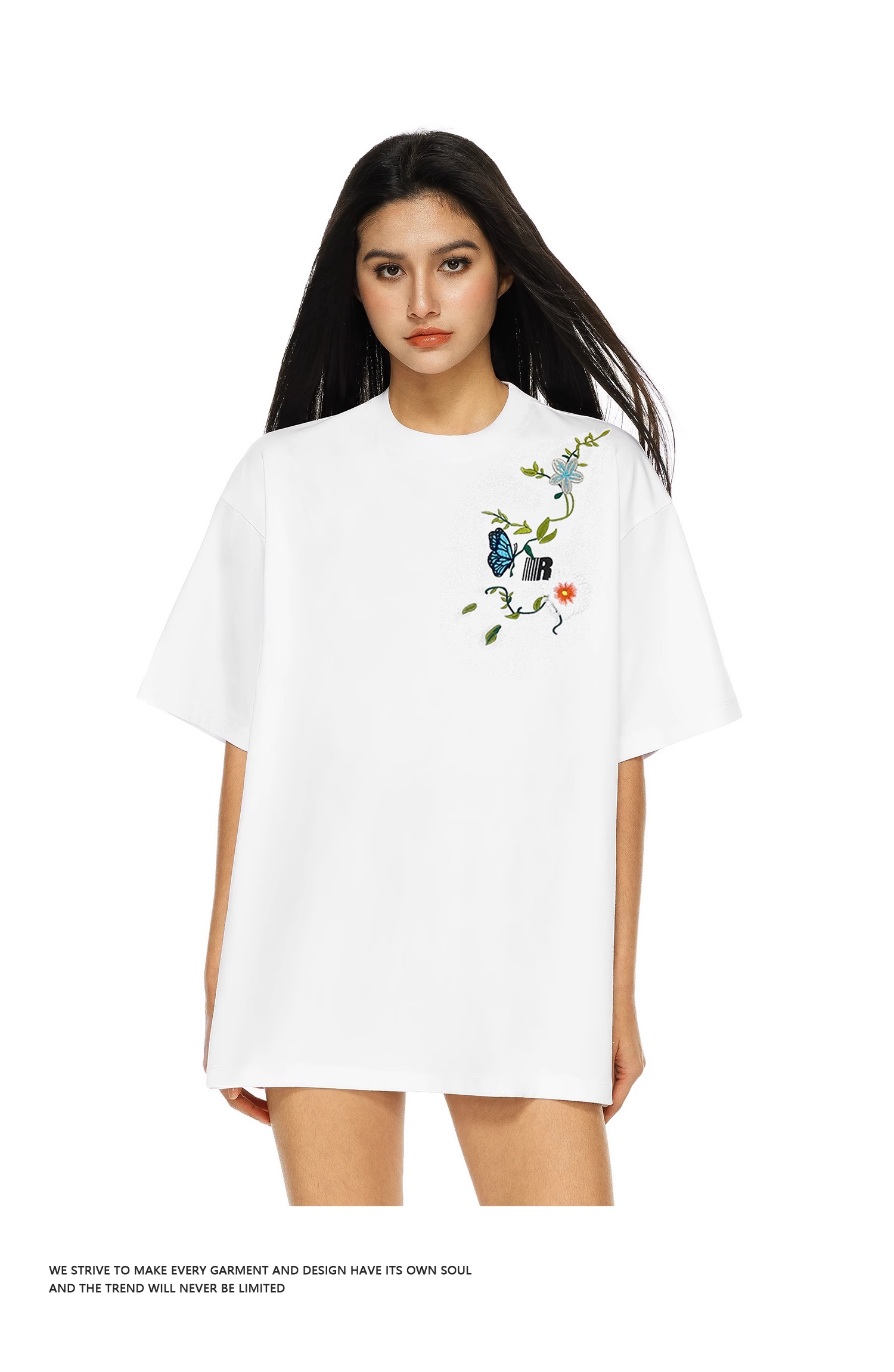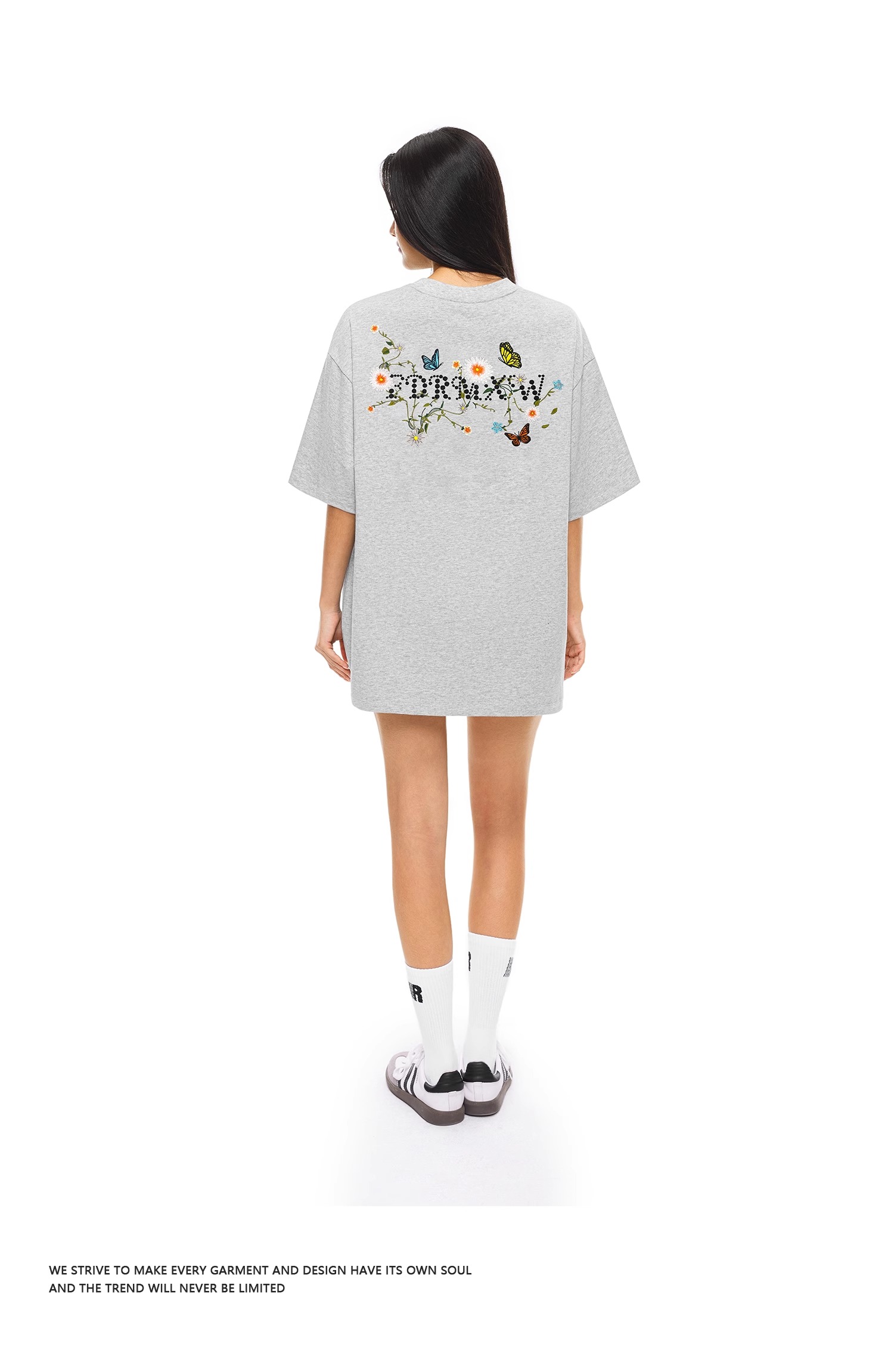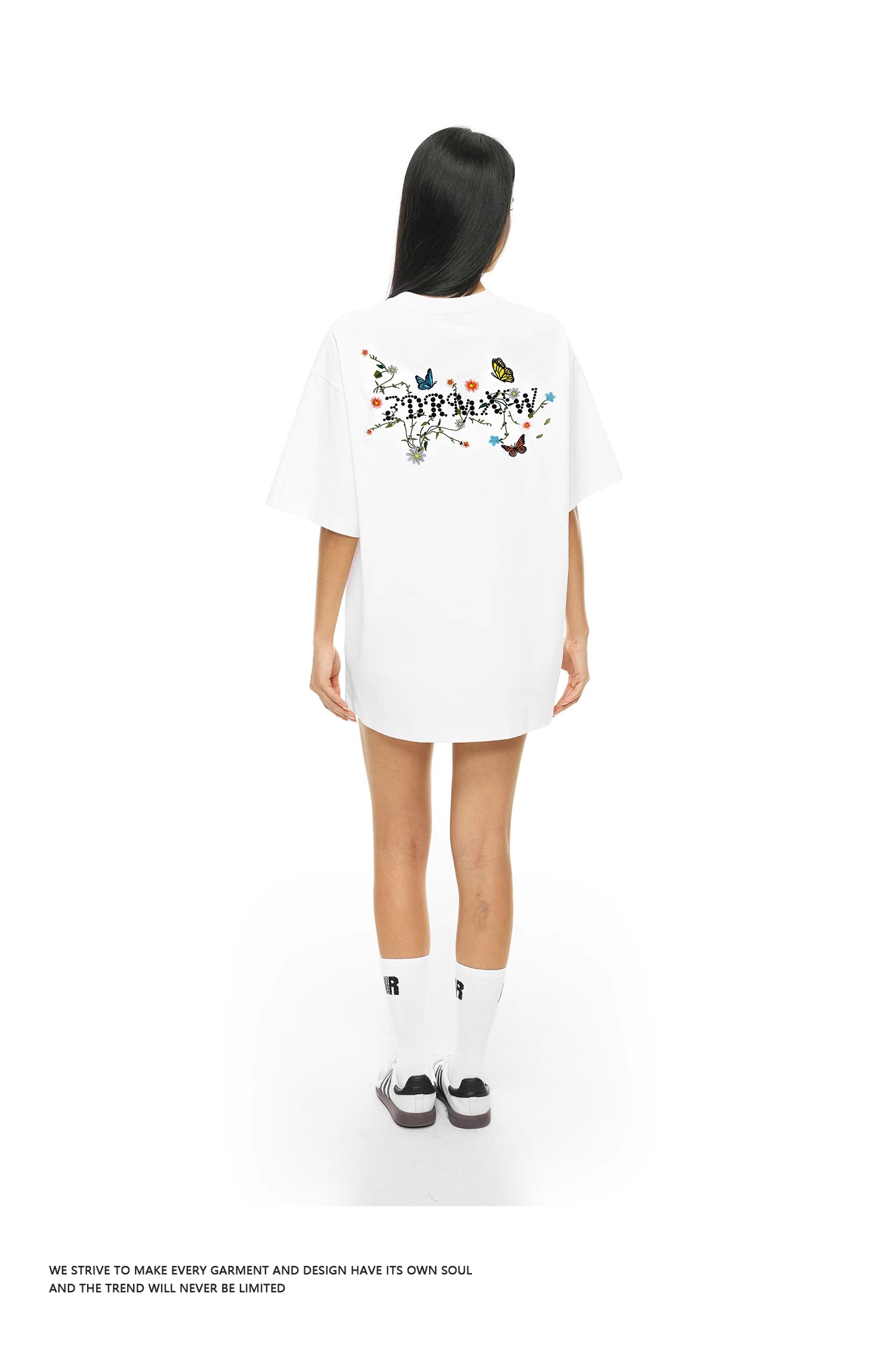 FDR官方店 光变花朵刺绣短袖t恤男女夏季美式潮牌情侣装宽松上衣