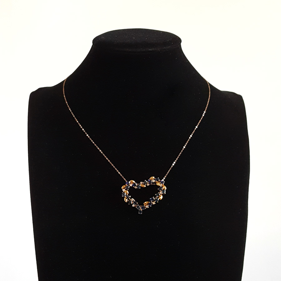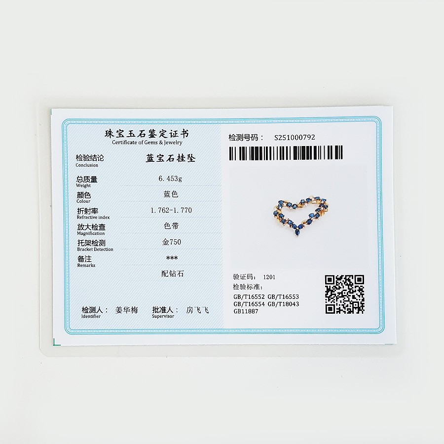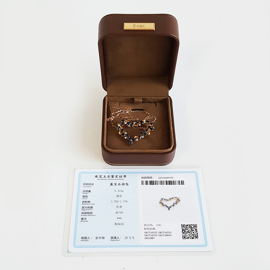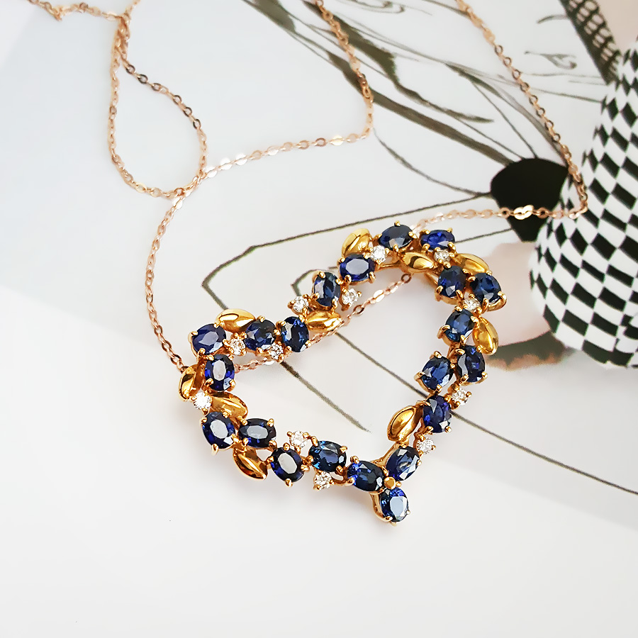 【天然正品】AU750黄金镶钻群镶天然皇家蓝5.11克拉心型蓝宝石吊坠项链 链长:45CM(长度可调节)女士221025NJS18