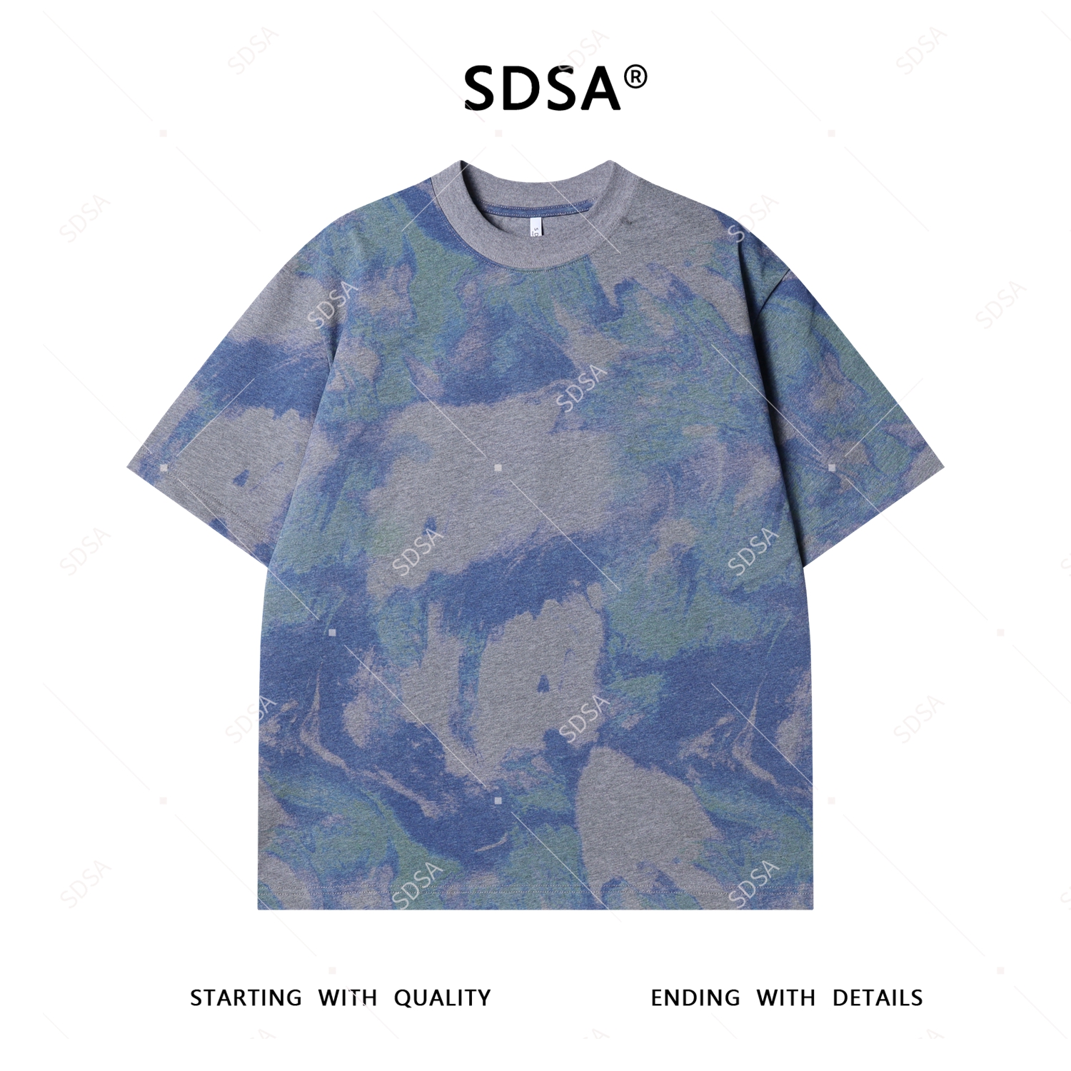 T4148SDSA夏季高级感新款男士韩版扎染撞色设计短袖T恤圆领百搭上衣