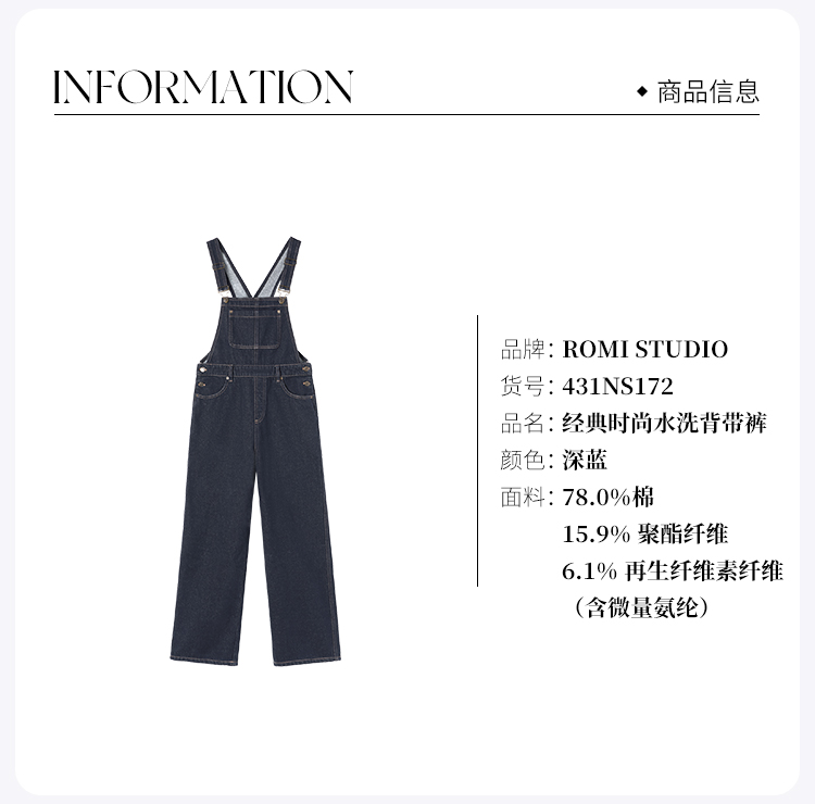 ROMI STUDIO“美式复古”棉质斜纹高士线YKK拉链背带牛仔裤431NS172