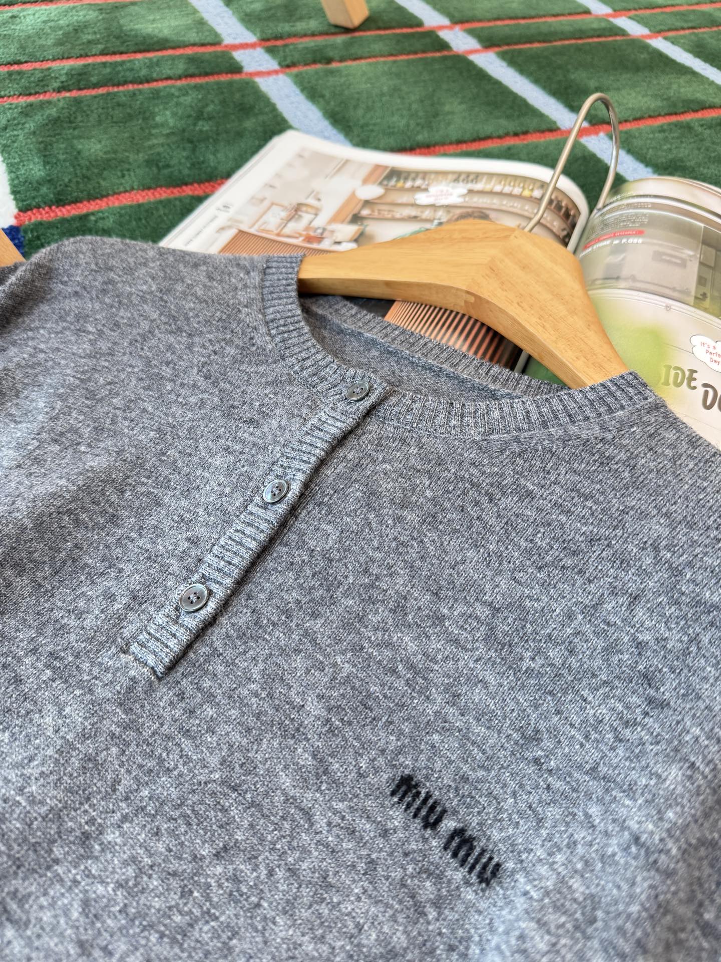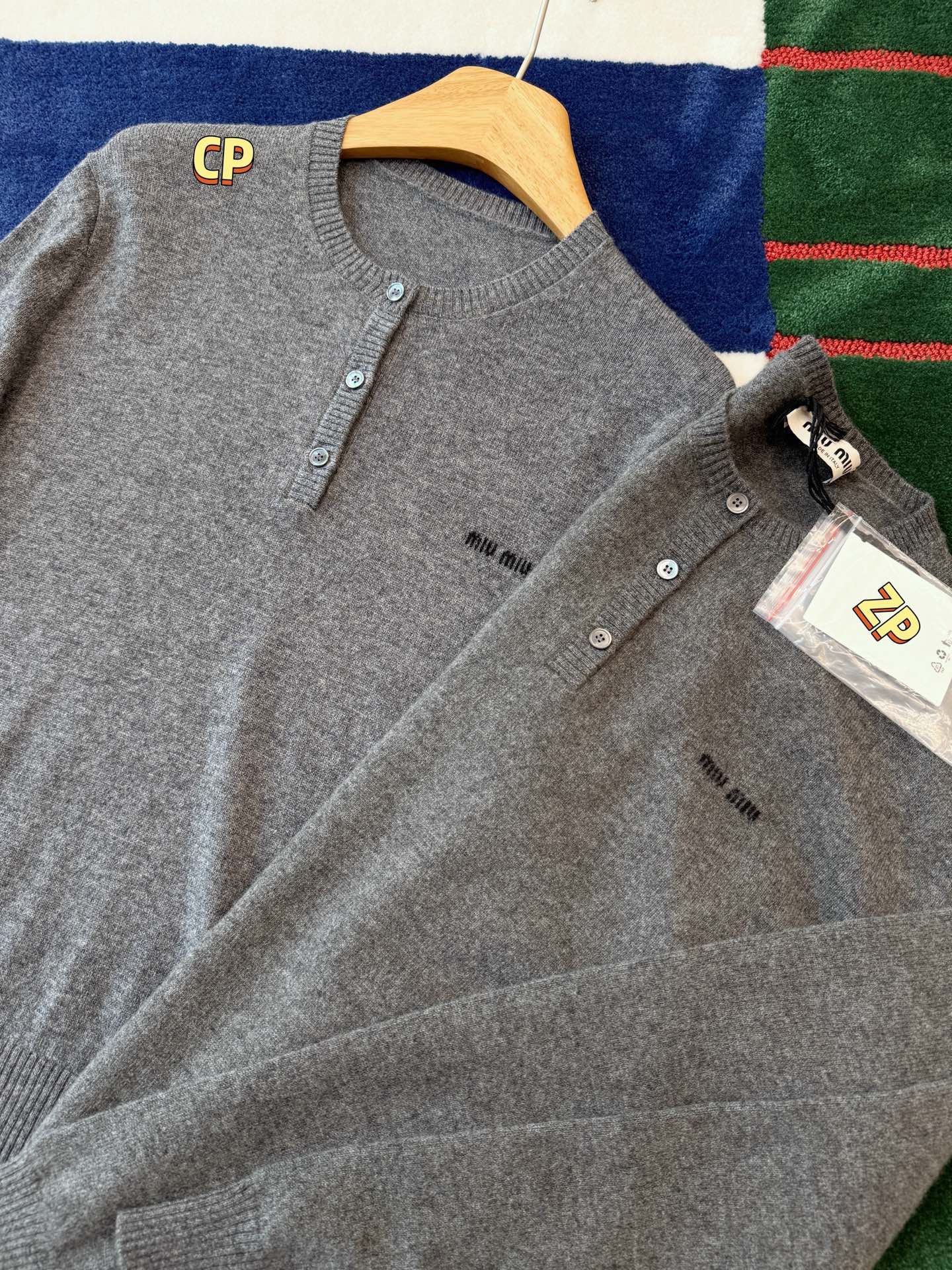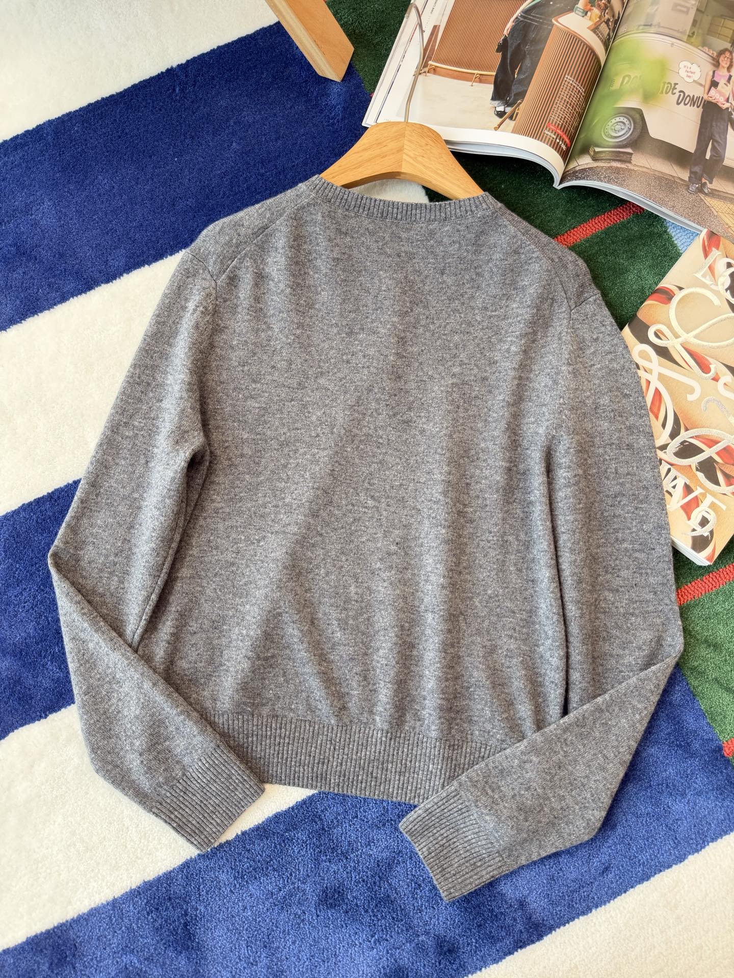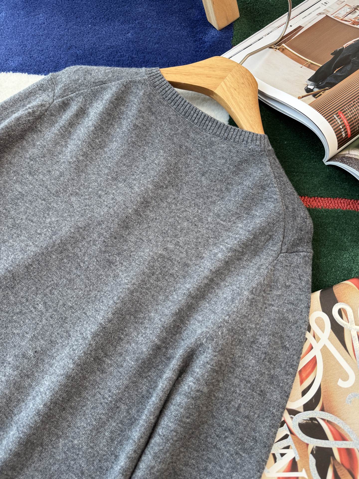 Henley亨利领灰色针织毛衣, 19世纪的经典元素延续至今,半开领设计 非常好穿日常,令整个设计魅力更显极简休闲,低调奢华日常风格💫 既可作为瞩目臻品单穿,也可以搭配T恤或衬衣叠穿,品质真的不吹不擂,定制定染花灰纱线,色彩相当高级,羊绒纱线触感超柔软✨完美零色差0️⃣穿起来完全不会扎,必入的宝藏单品🥳码数SML