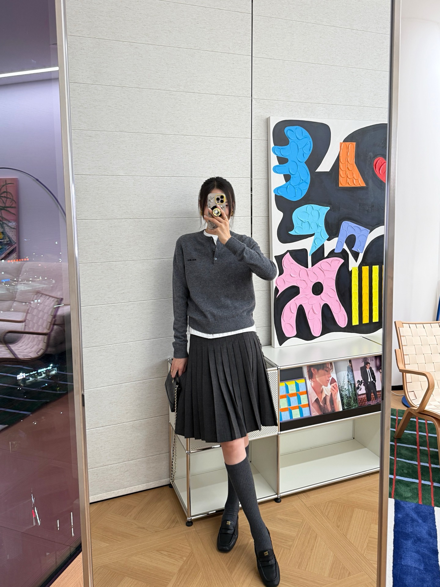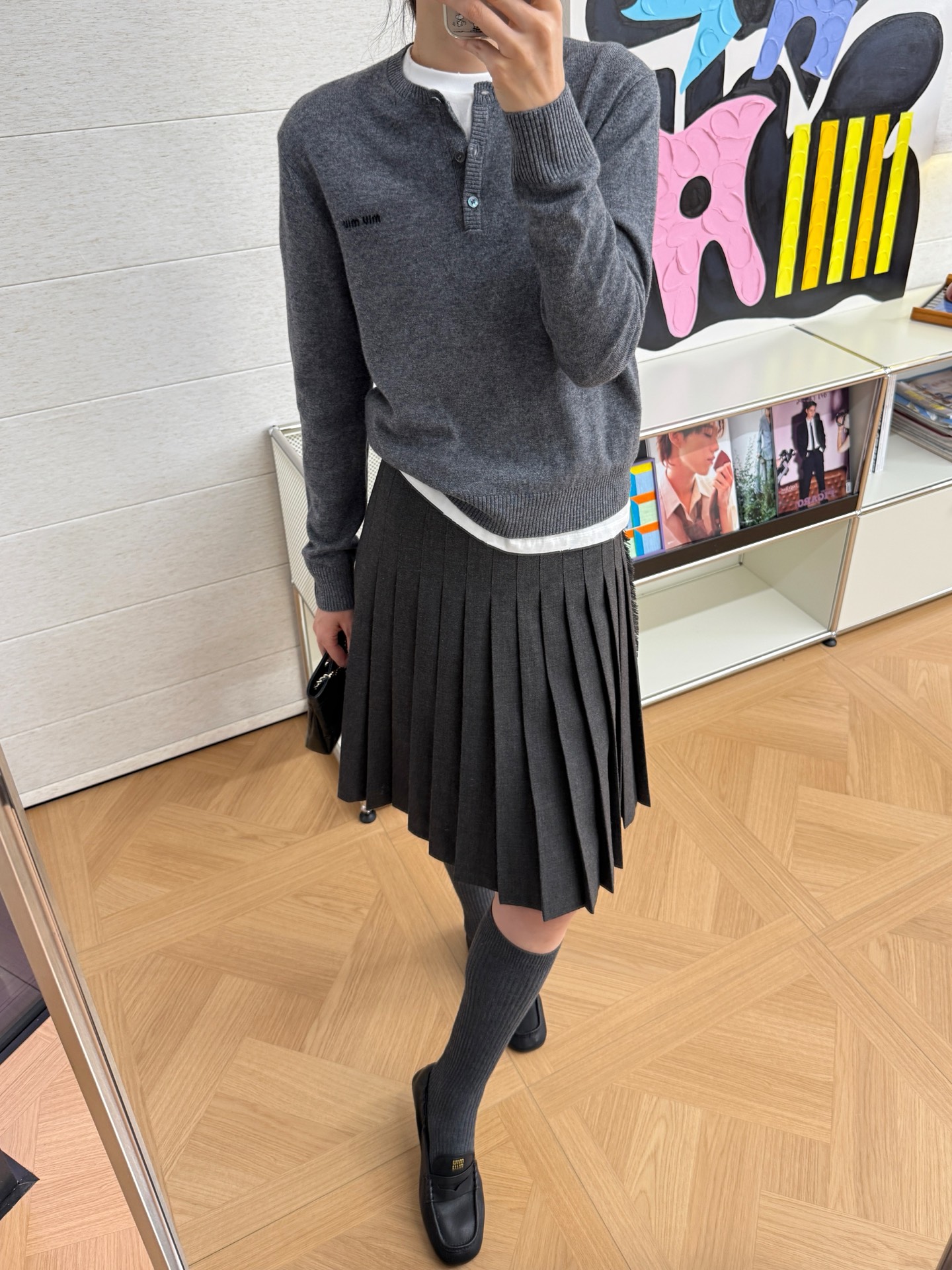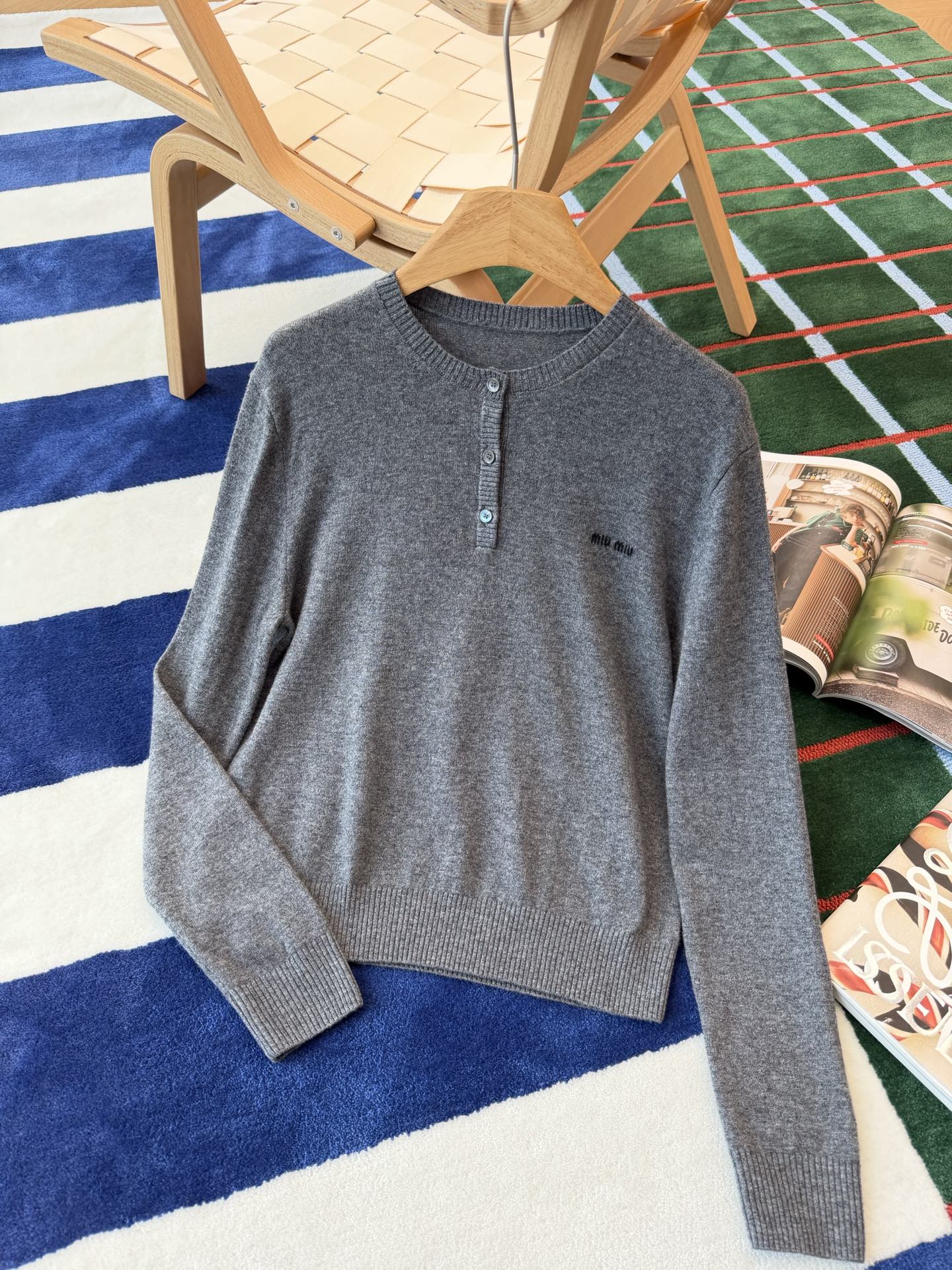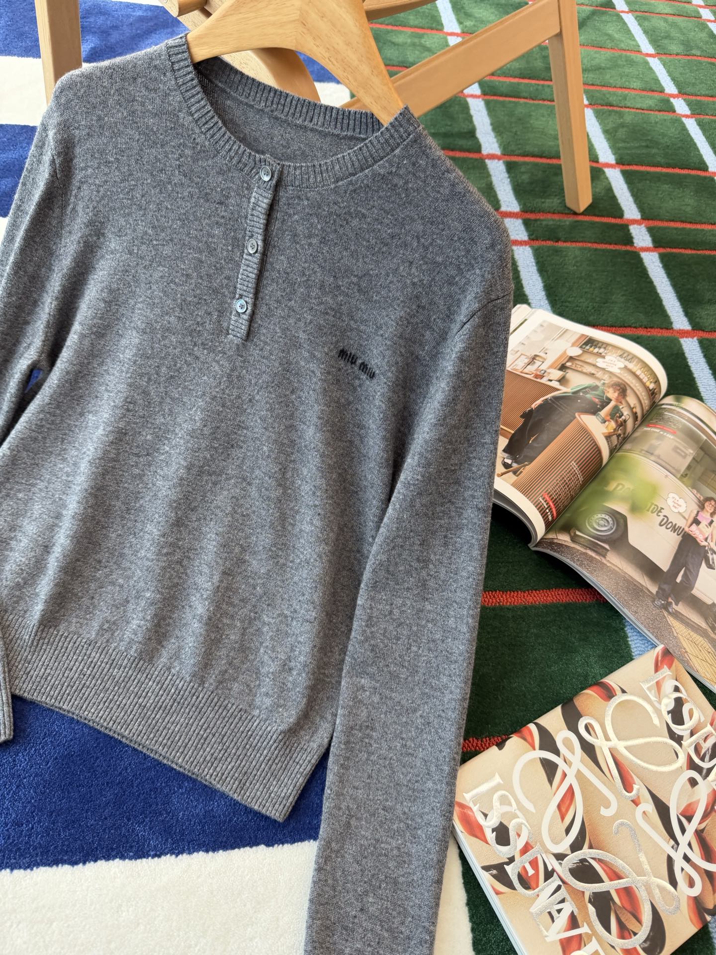 Henley亨利领灰色针织毛衣, 19世纪的经典元素延续至今,半开领设计 非常好穿日常,令整个设计魅力更显极简休闲,低调奢华日常风格💫 既可作为瞩目臻品单穿,也可以搭配T恤或衬衣叠穿,品质真的不吹不擂,定制定染花灰纱线,色彩相当高级,羊绒纱线触感超柔软✨完美零色差0️⃣穿起来完全不会扎,必入的宝藏单品🥳码数SML