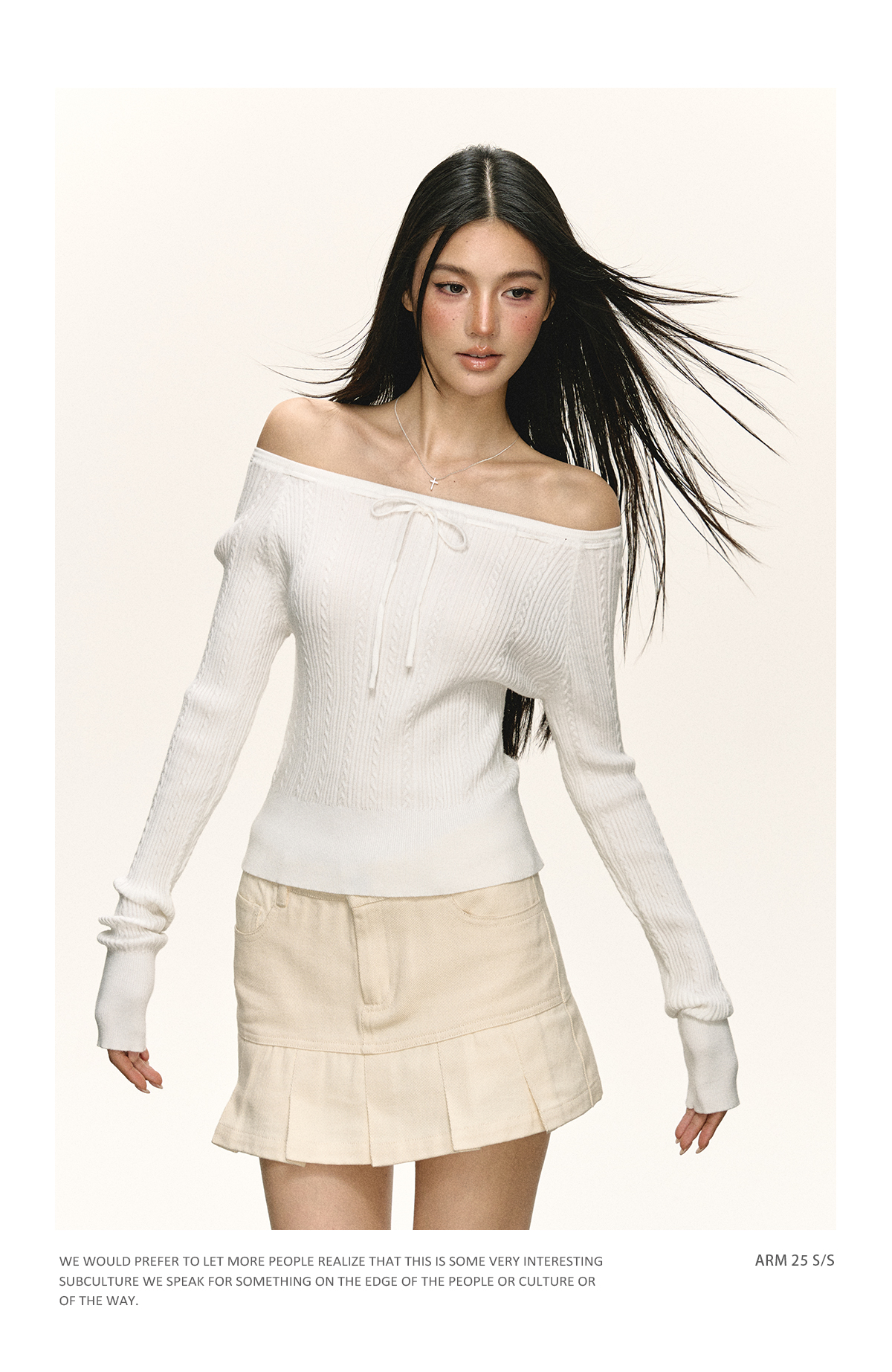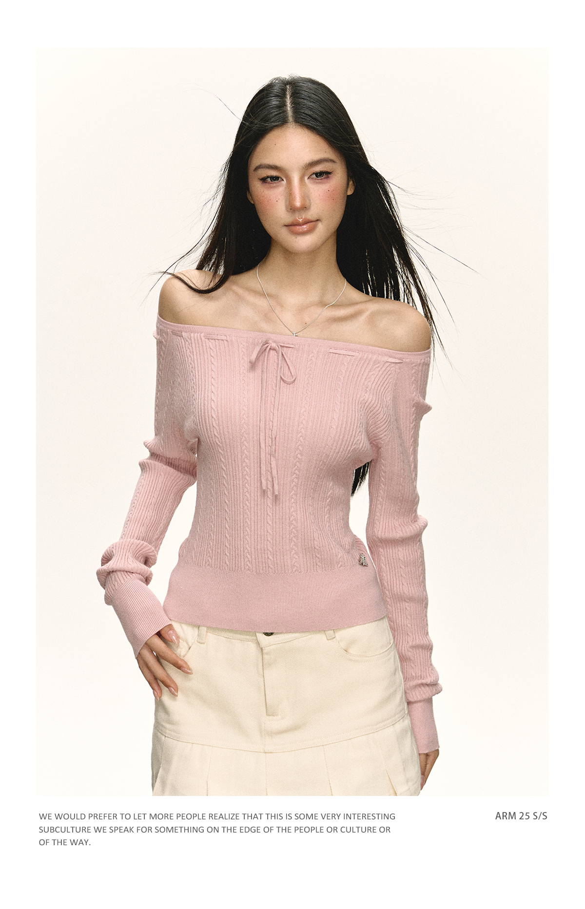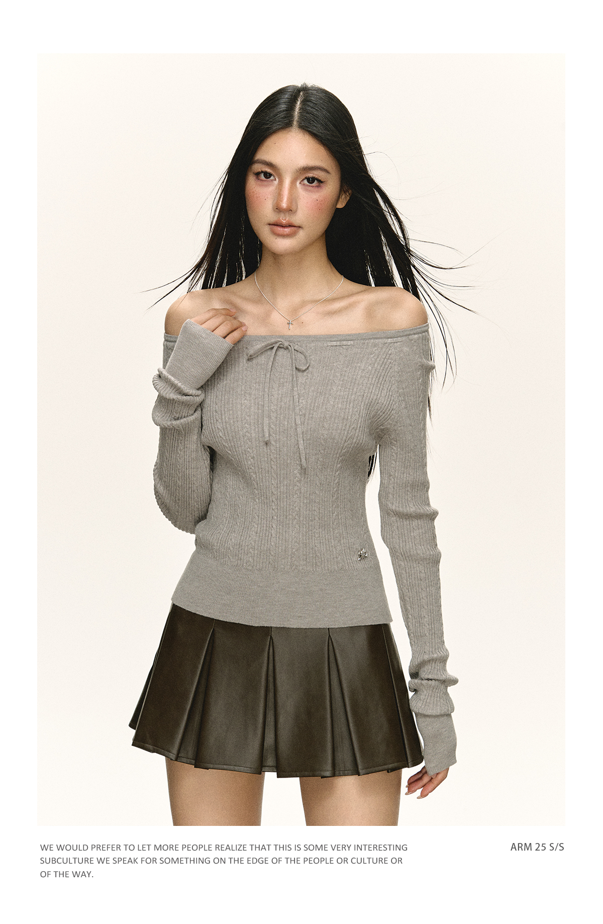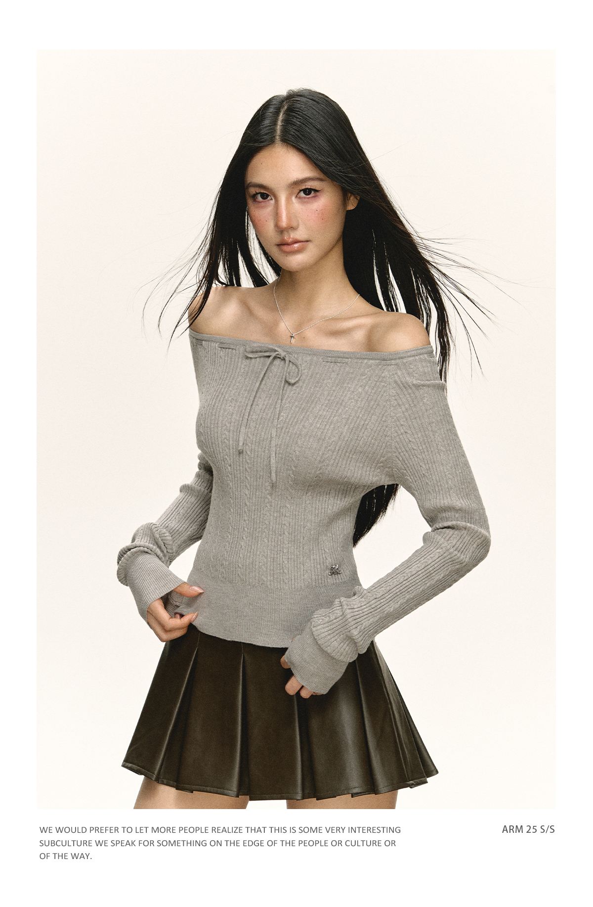 Ariseism 美式复古设计感一字肩毛衣女秋季新款上衣