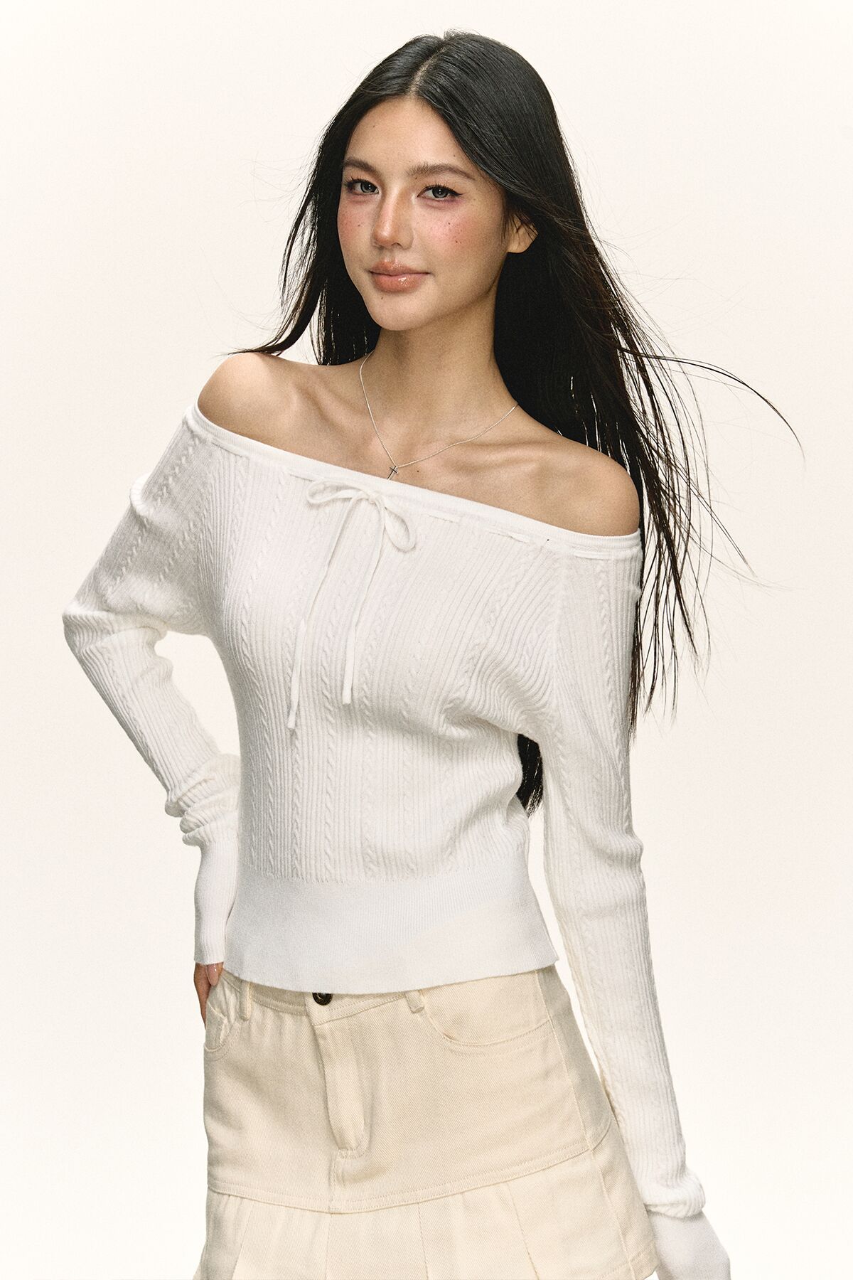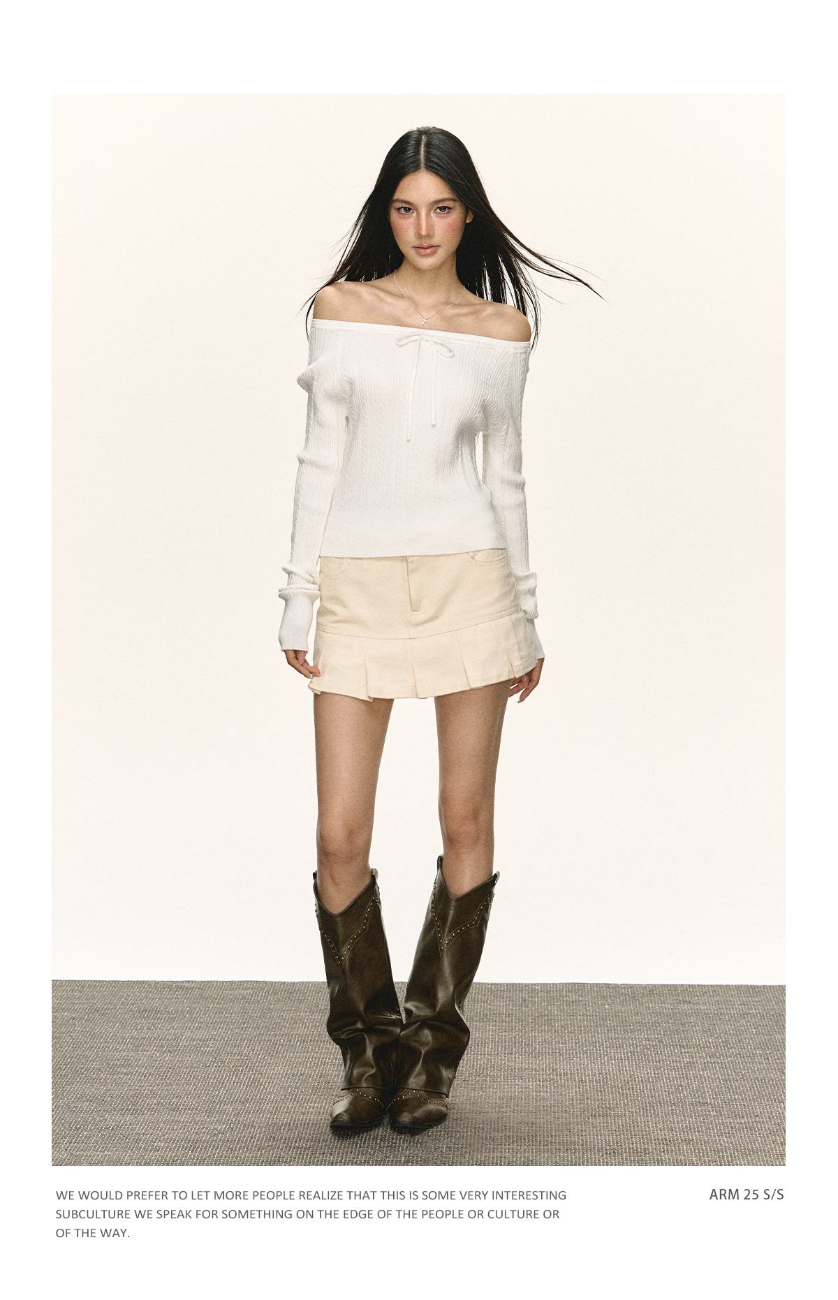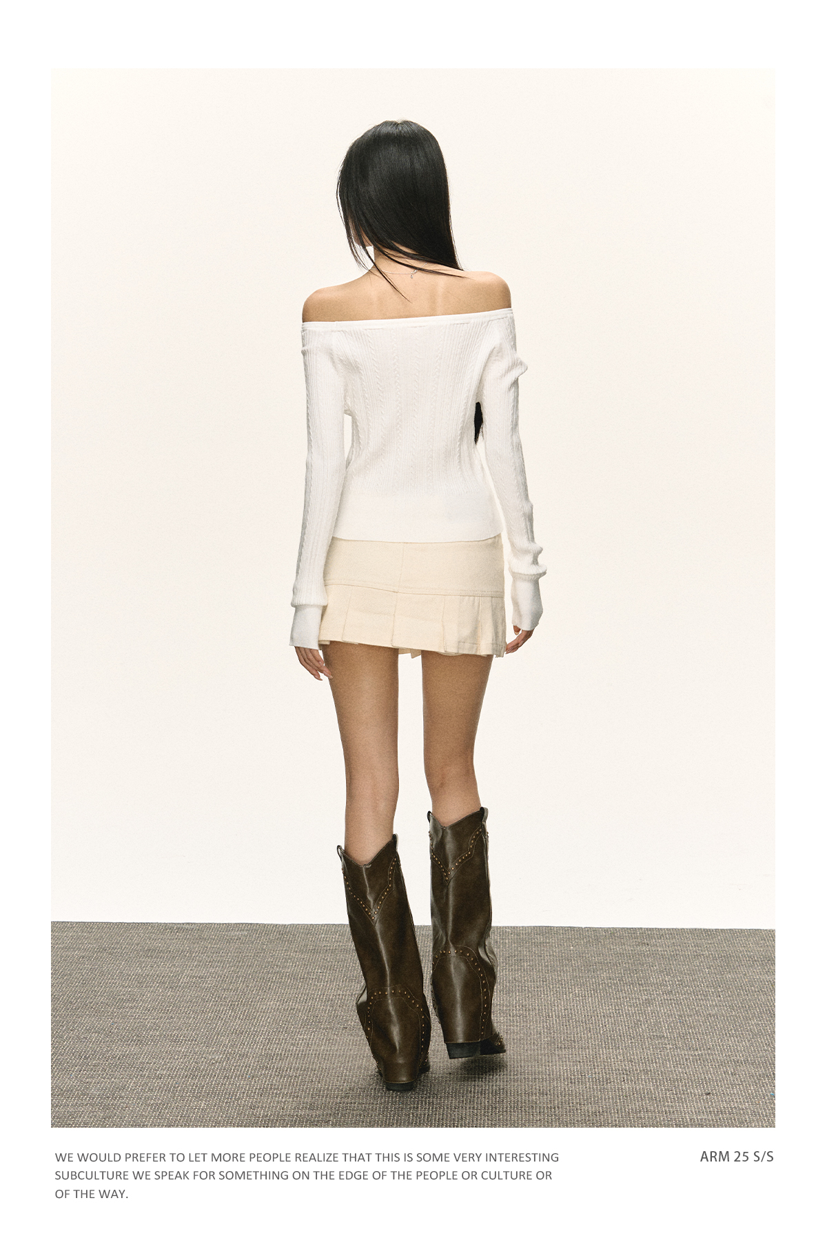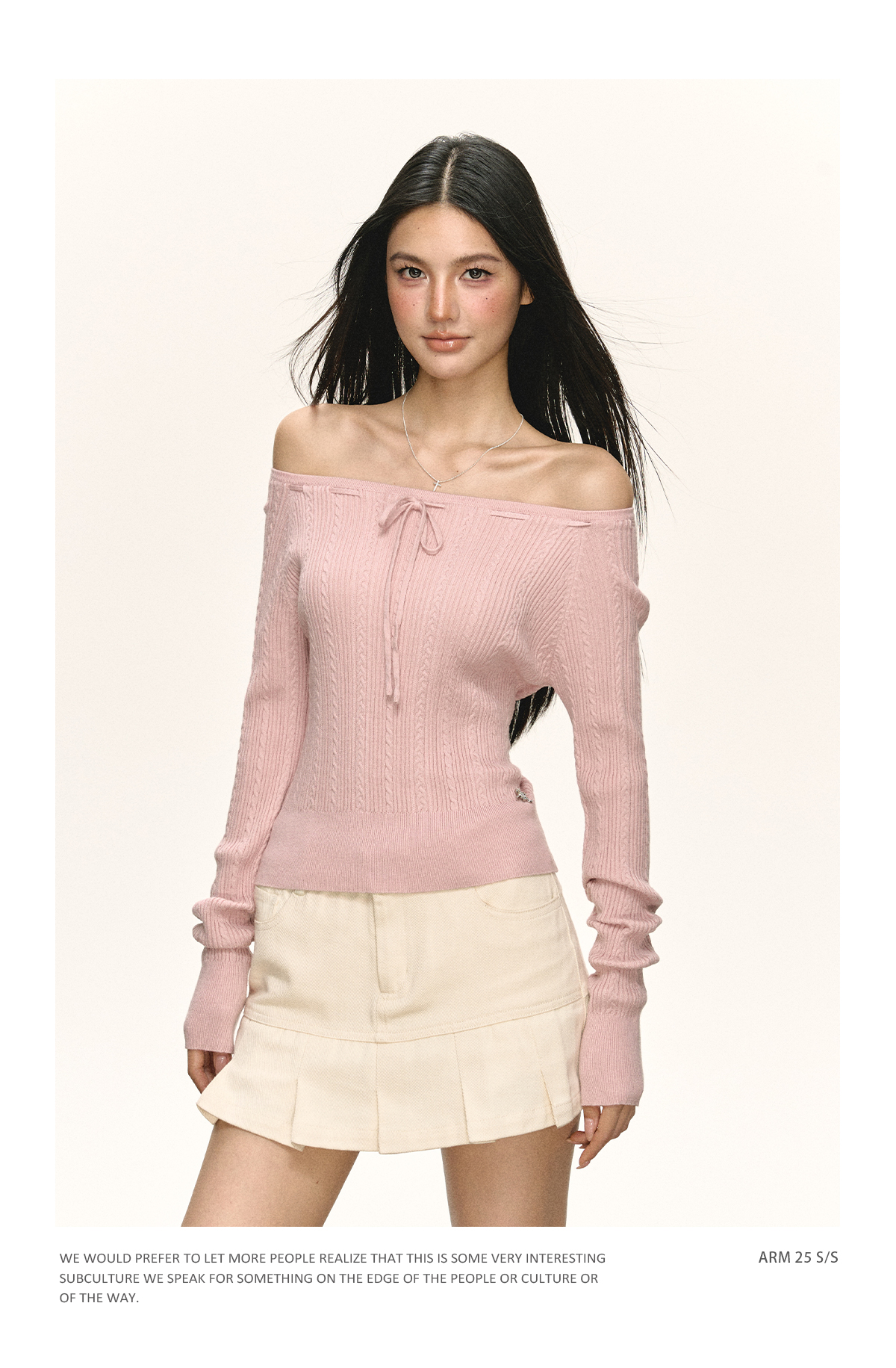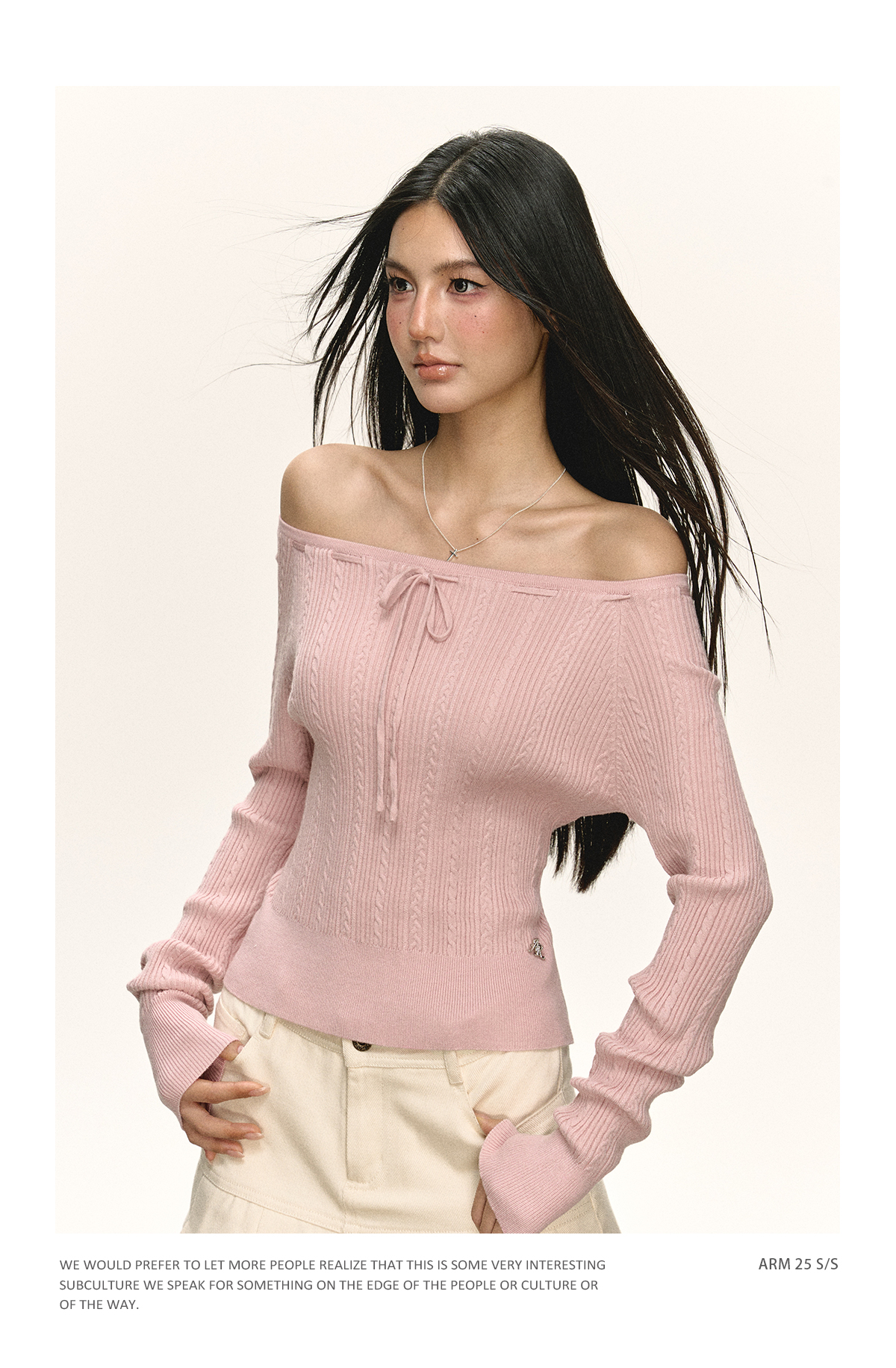 Ariseism 美式复古设计感一字肩毛衣女秋季新款上衣