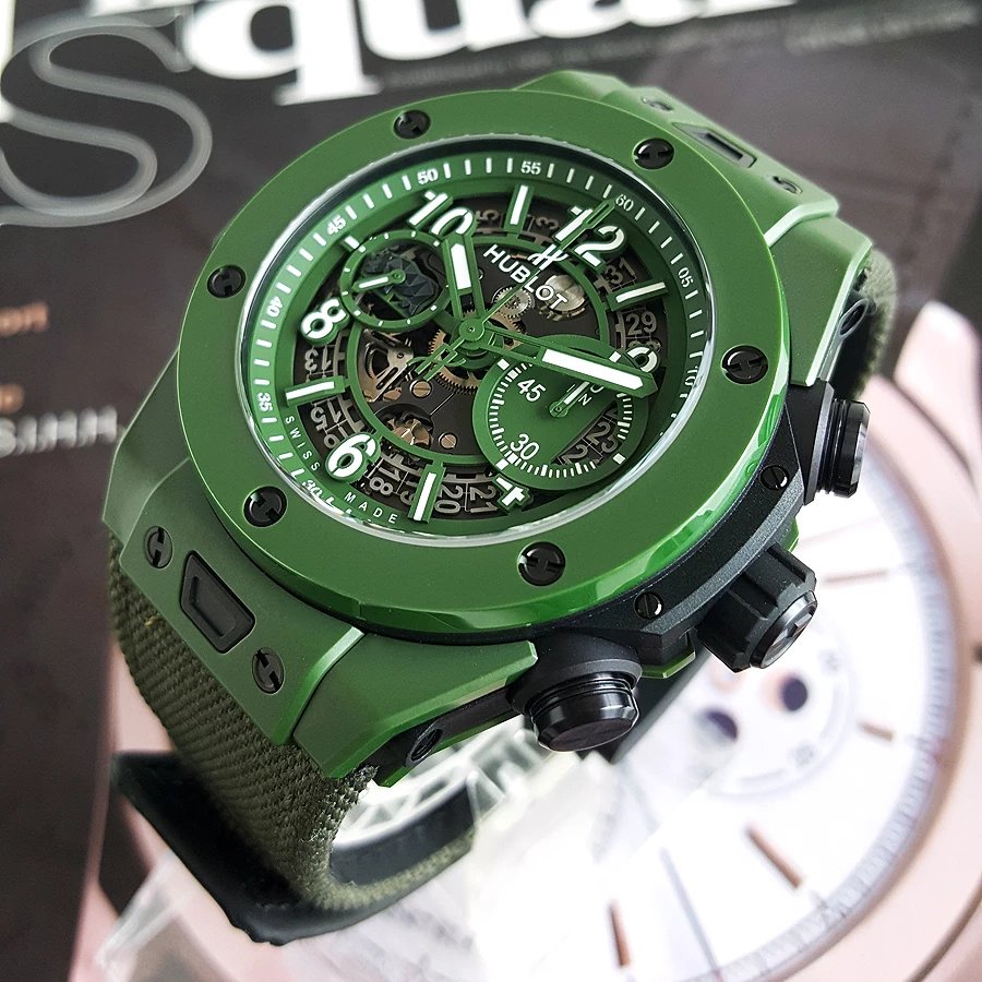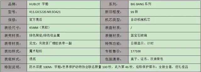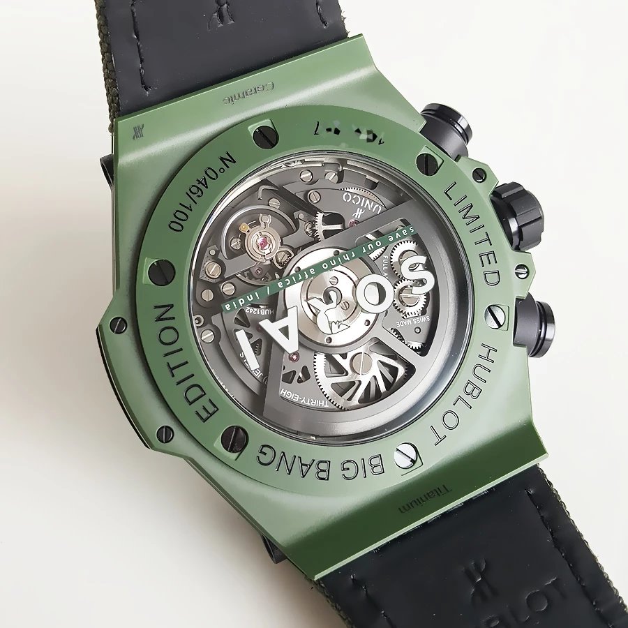 【99新】HUBLOT宇舶BIG BANG系列绿色陶瓷绿色钛金属45MM日期显示计时自动机械机芯男表 270821TJ18
