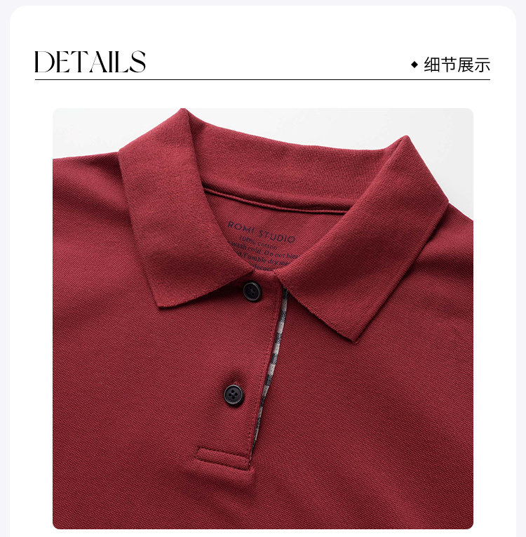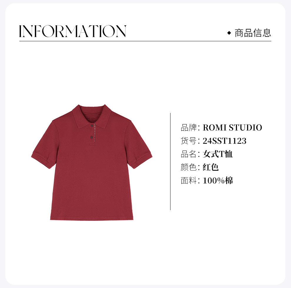 ROMI STUDIO“红色与罗马”100珠地棉拼格纹Polo领短袖T恤24SST1123