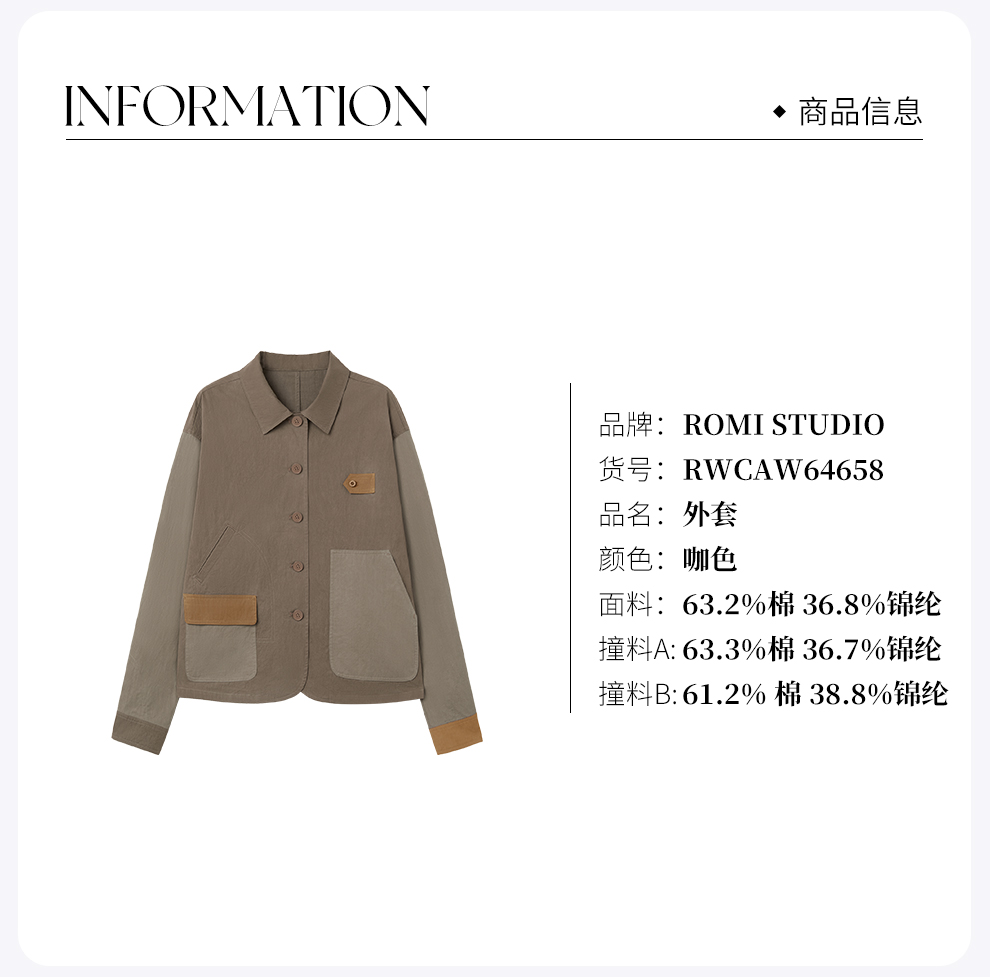 ROMI STUDIO“美式复古“不规则设计感轻薄拼色夹克外套 RWCAW64658