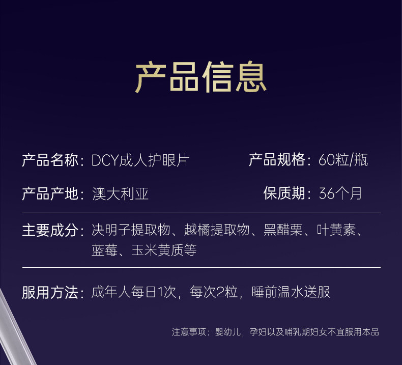 澳洲原装进口DCY叶黄素中老年成人护眼片干涩疲劳官方正品60粒