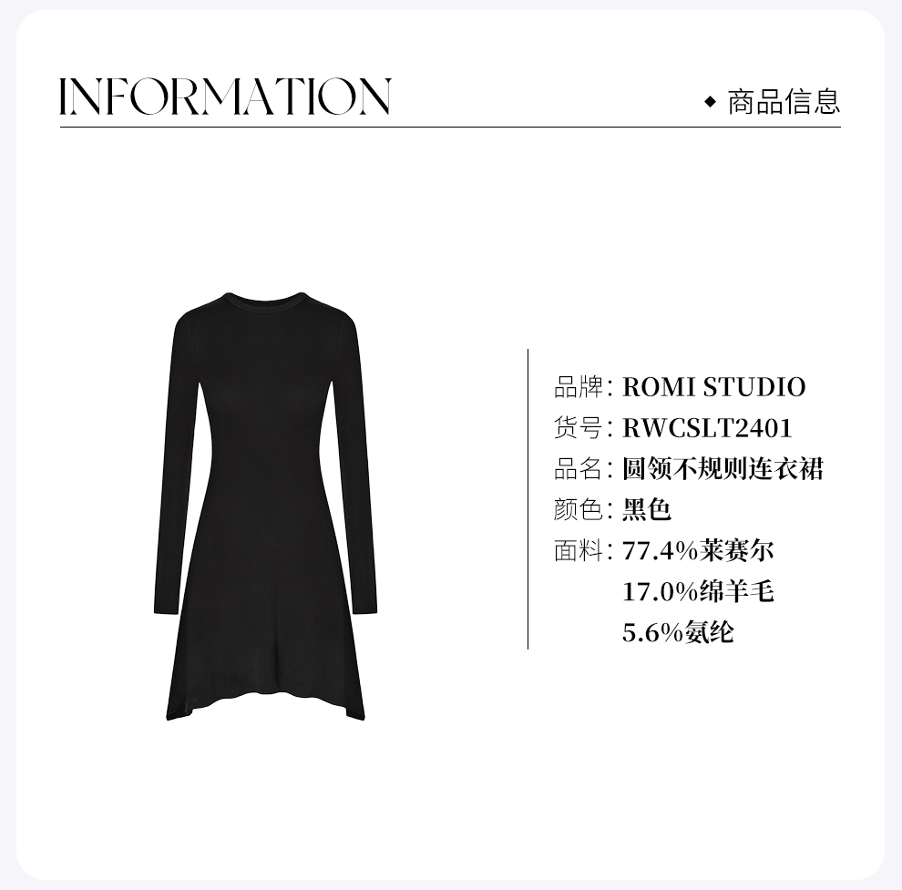 ROMI STUDIO“法式优雅”绵羊毛莱赛尔混纺不规则连衣裙RWCSLT2401
