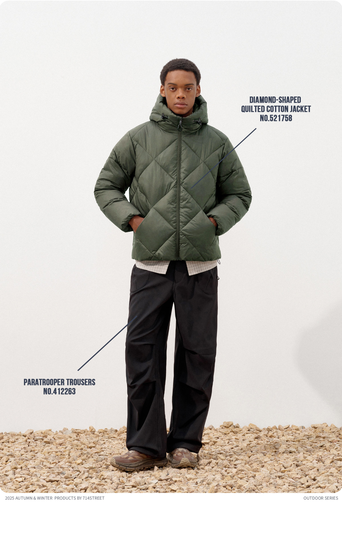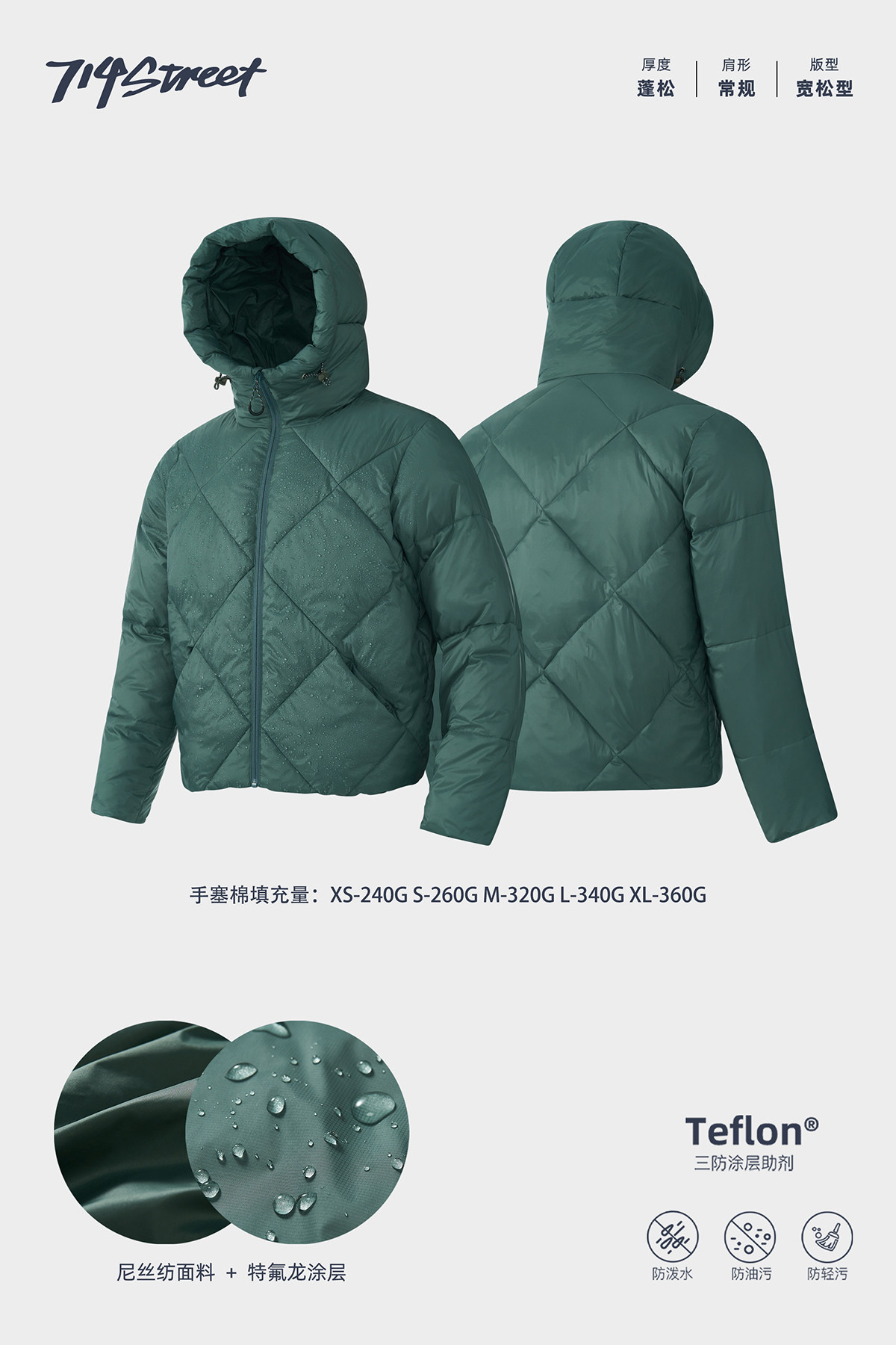 714street潮牌防水连帽棉服男2025冬季美式复古棉衣宽松夹棉外套