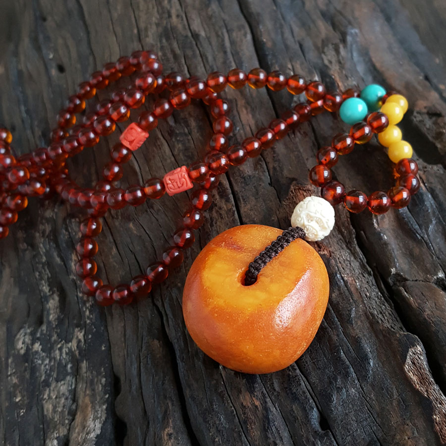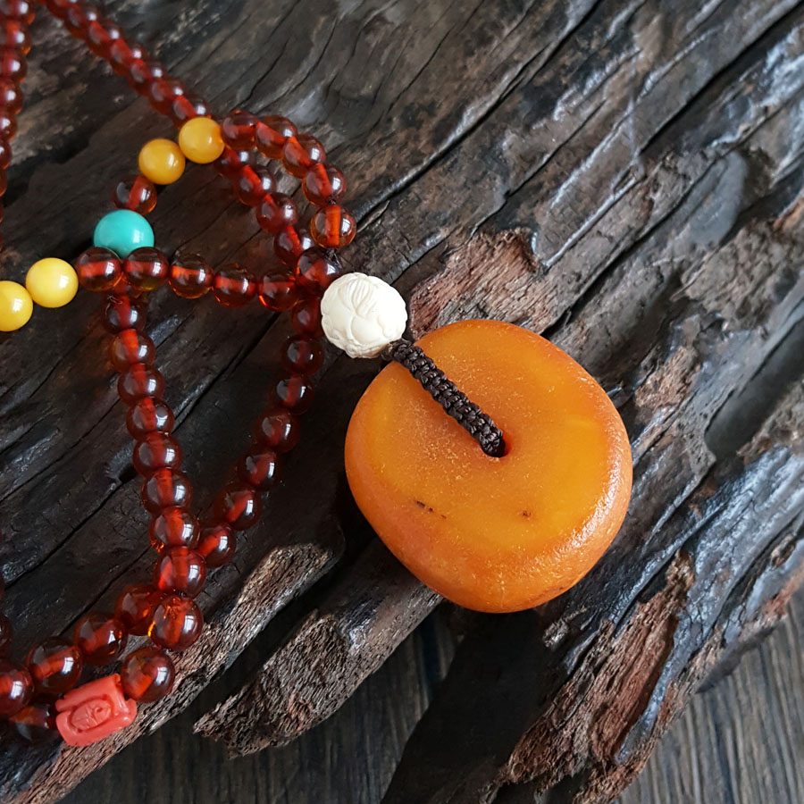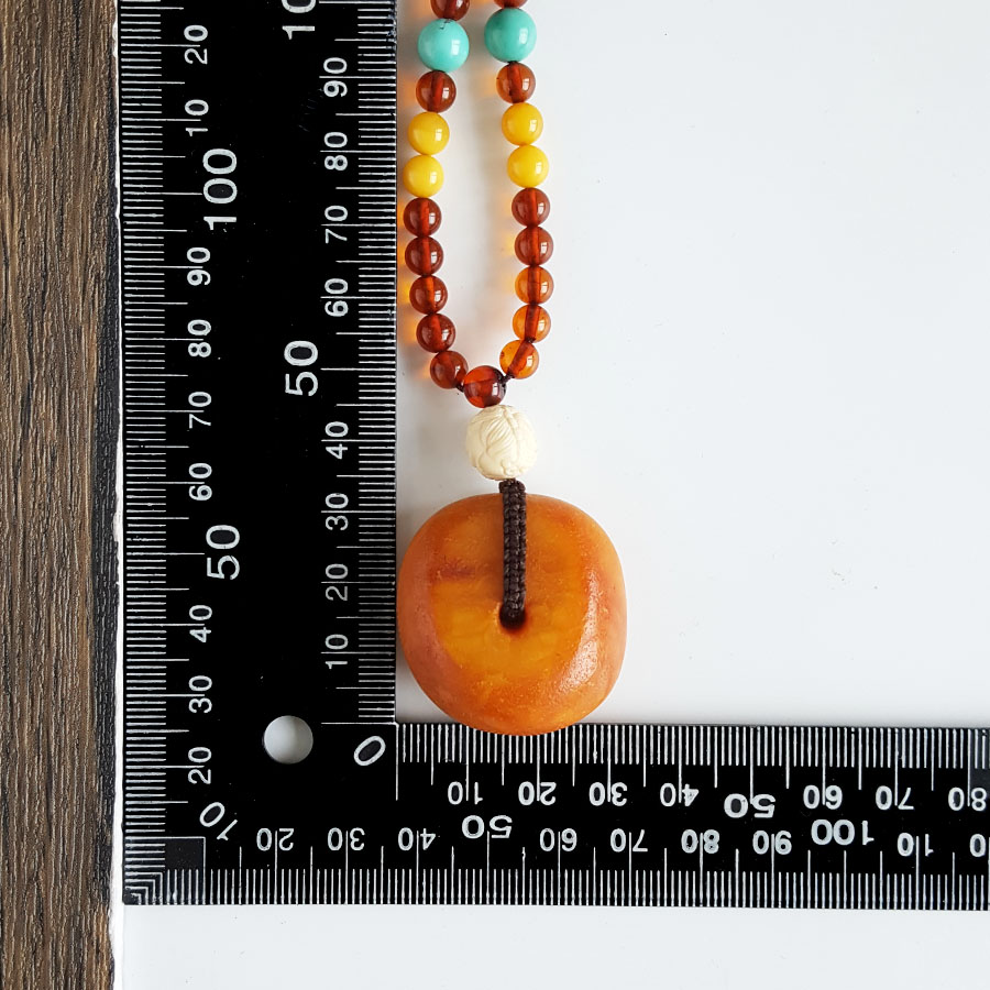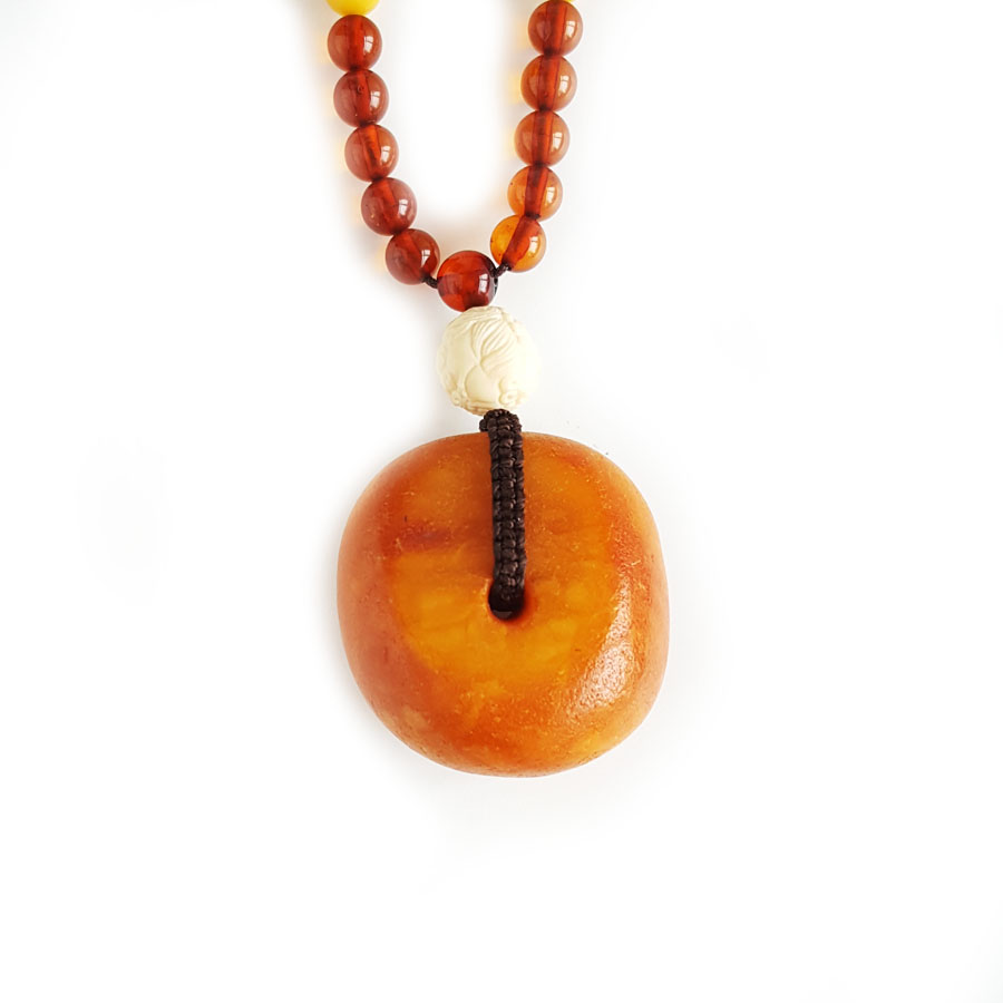 名称 | 天然满蜜鸡油黄老蜡平安扣配琥珀珠串吊坠项链 |